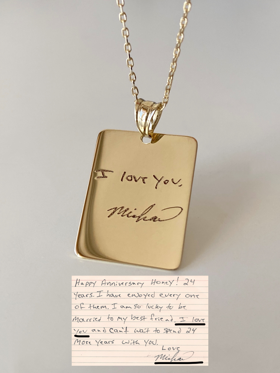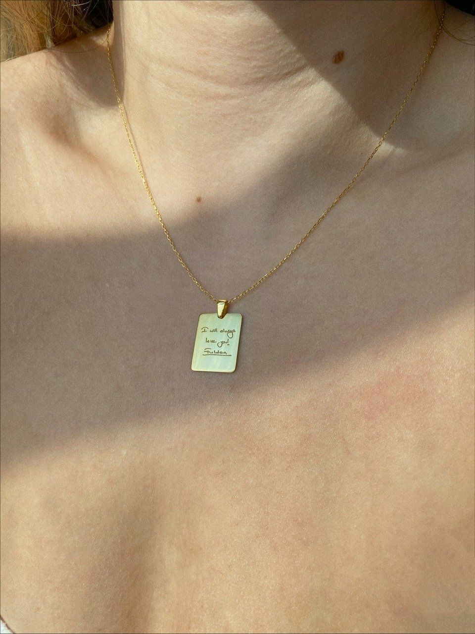 Personalize your necklace with a meaningful handwritten note, signature, or even a drawing — exactly as it appears in the original image.