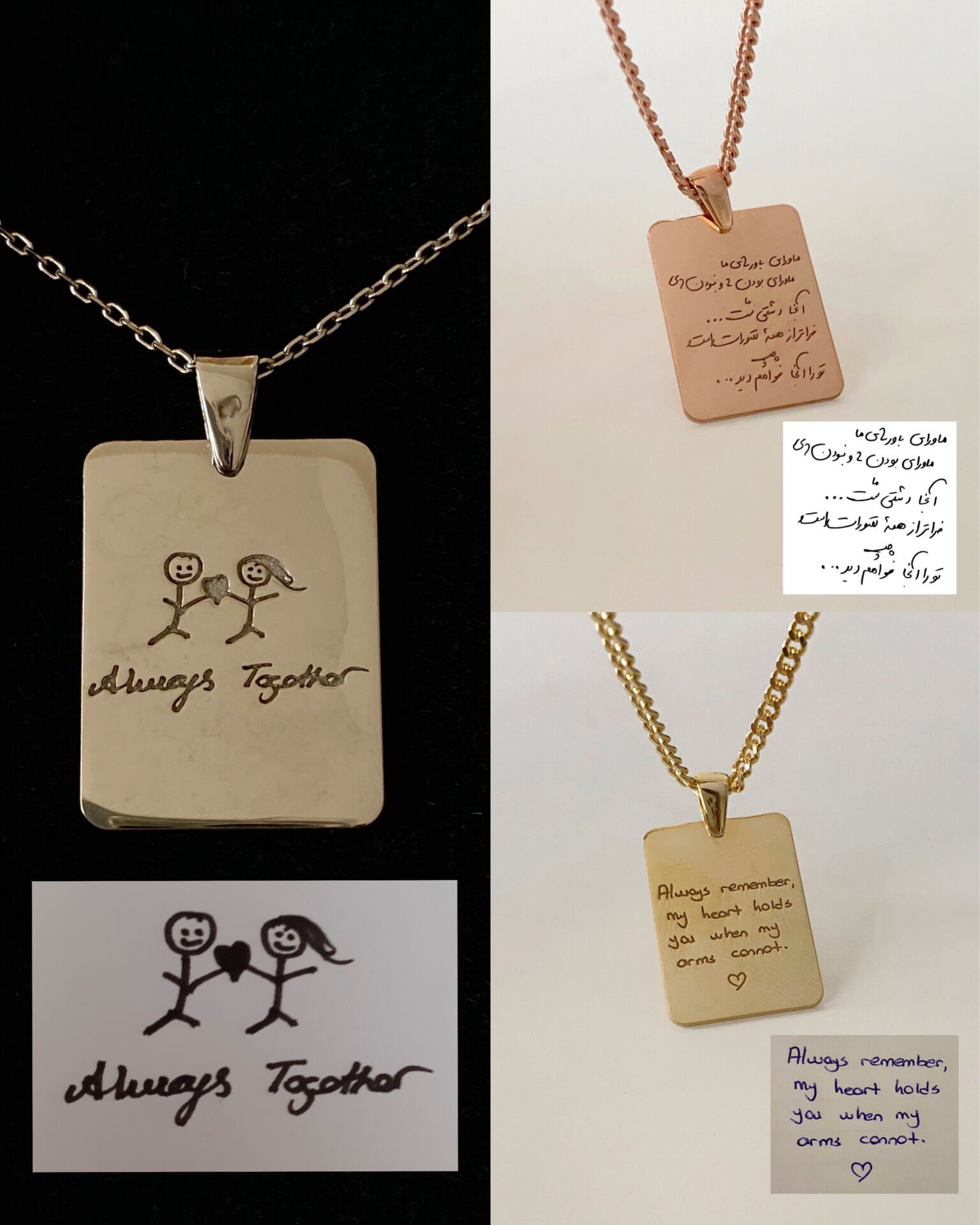 Whether it’s a loved one’s handwriting from a letter, your child’s doodle, or your own message — we engrave it just as it is, turning it into a timeless piece to treasure.