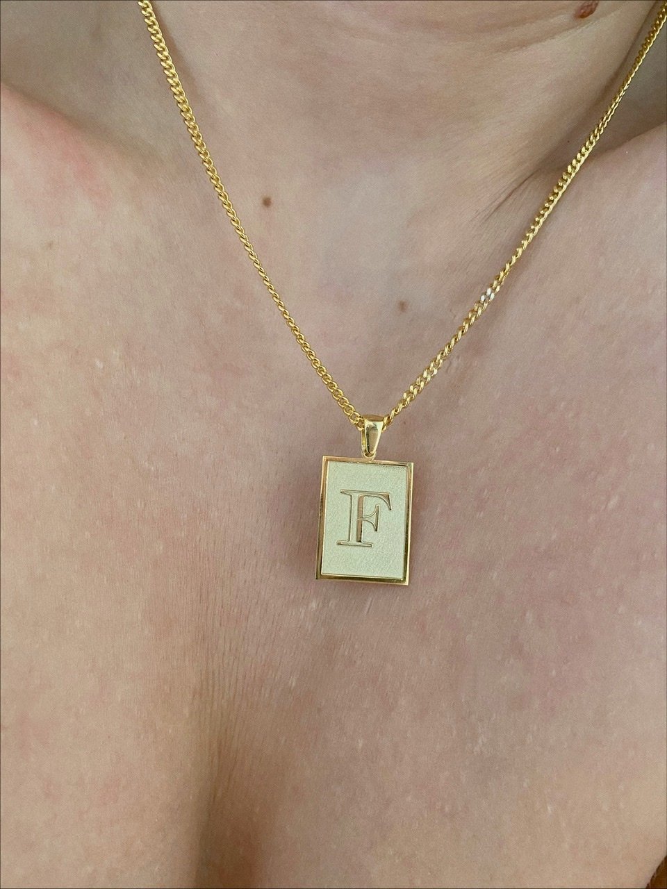 925 Silver | Curb Chain Letter Plaque Necklace