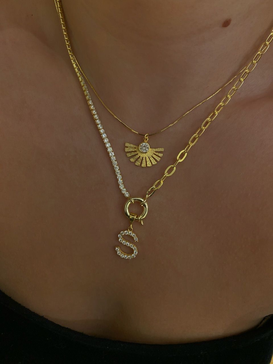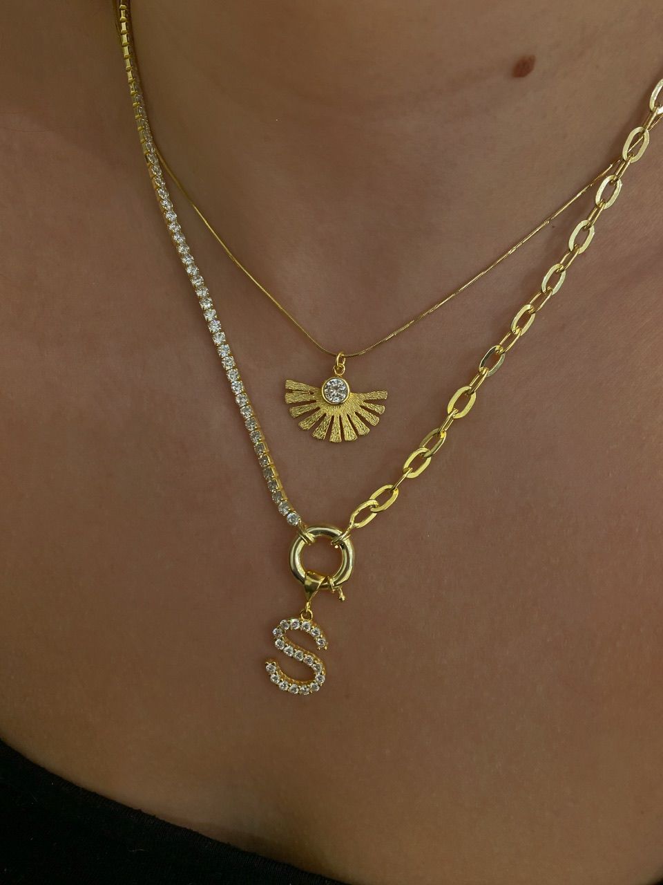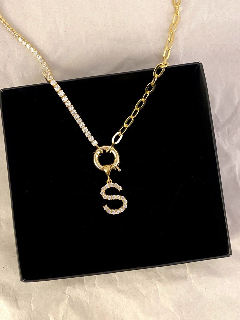 925 Silver | Custom Half-Chain Thick Nautical Tennis Necklace with Letter