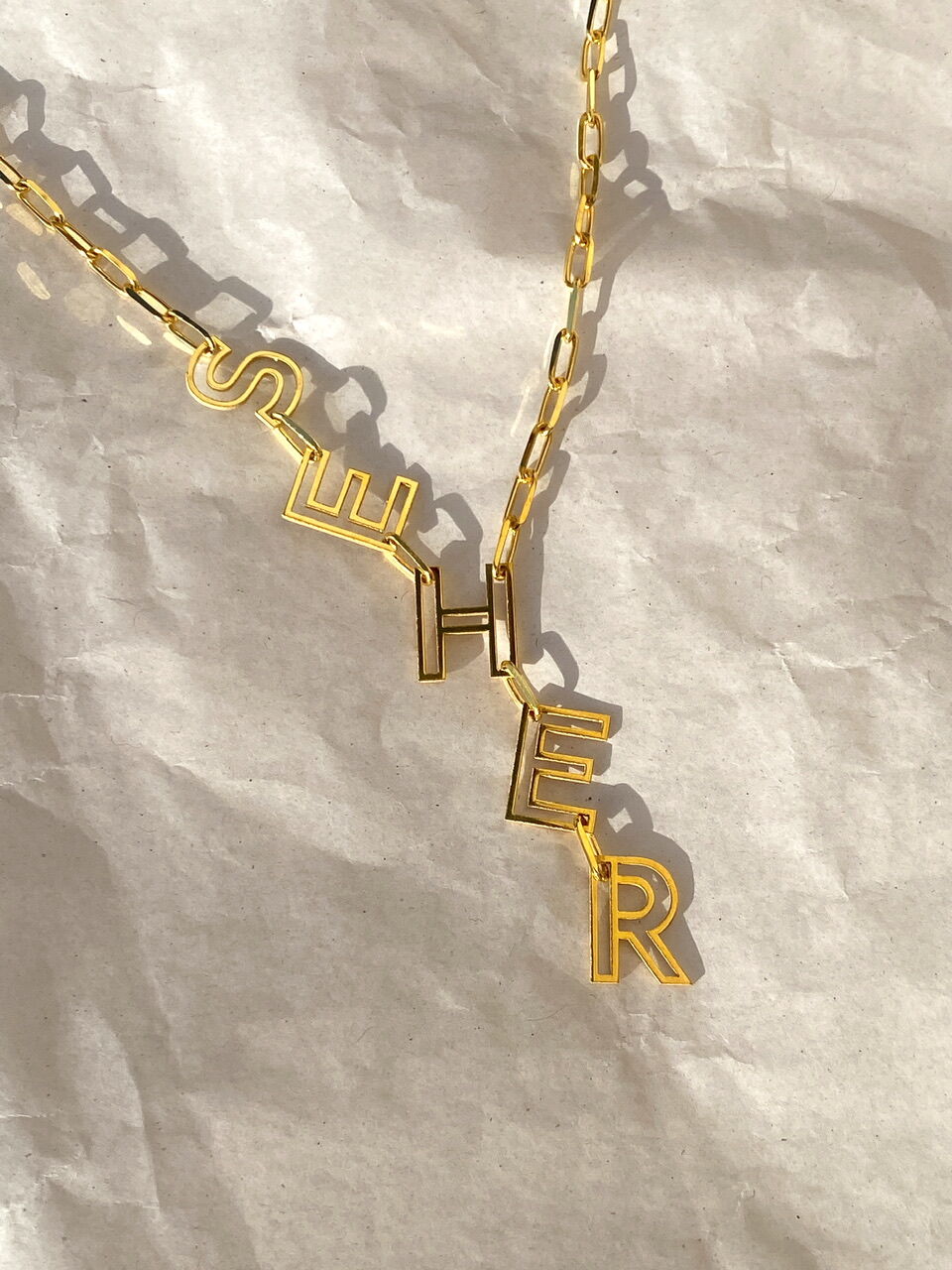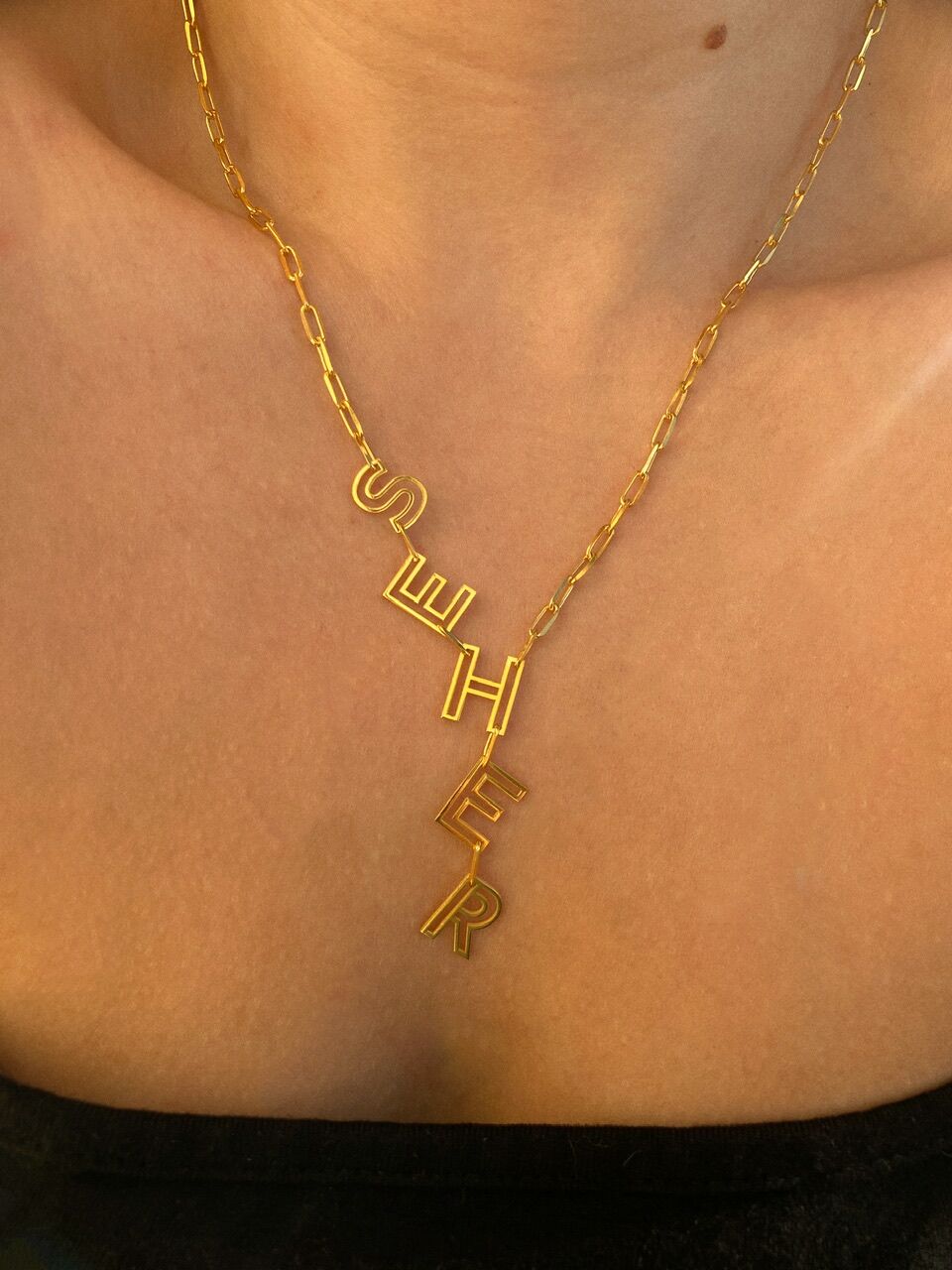 925 Silver | Hollow Letter Custom Y Chain Necklace