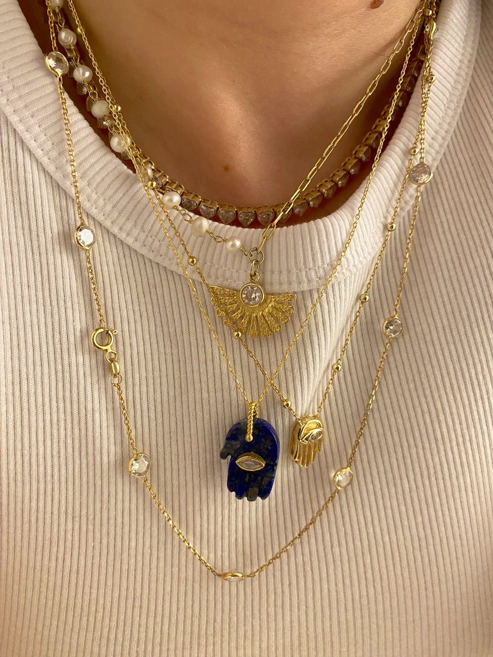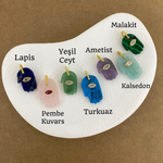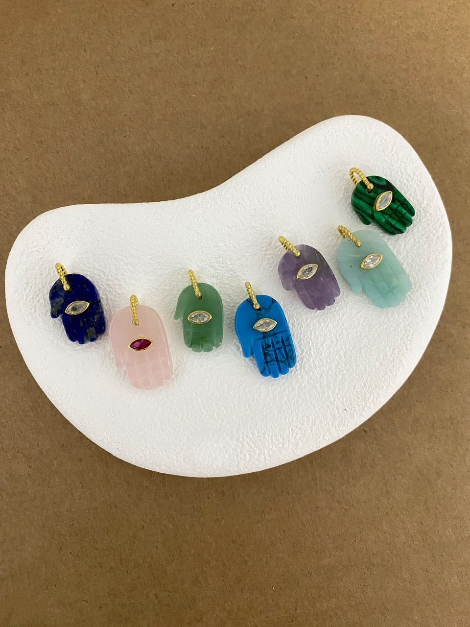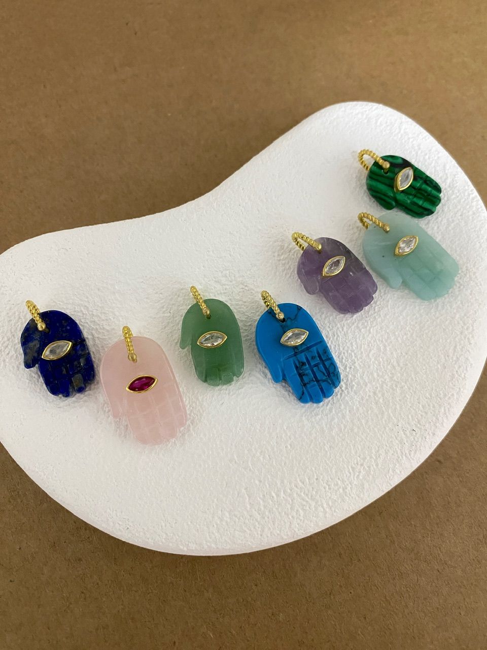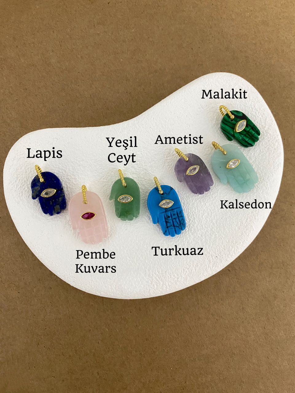 The Hamsa part is made entirely of genuine natural stone. The names of the stones are provided in the images.