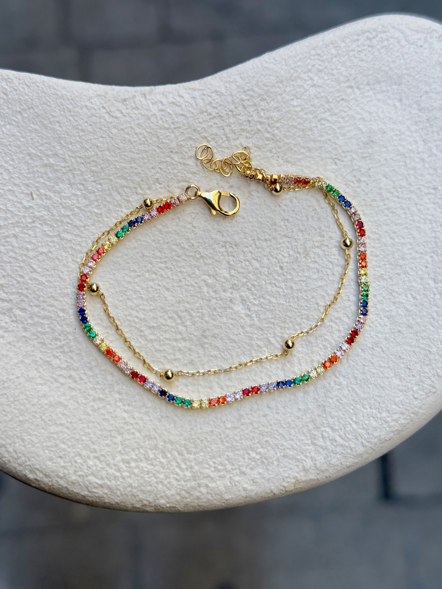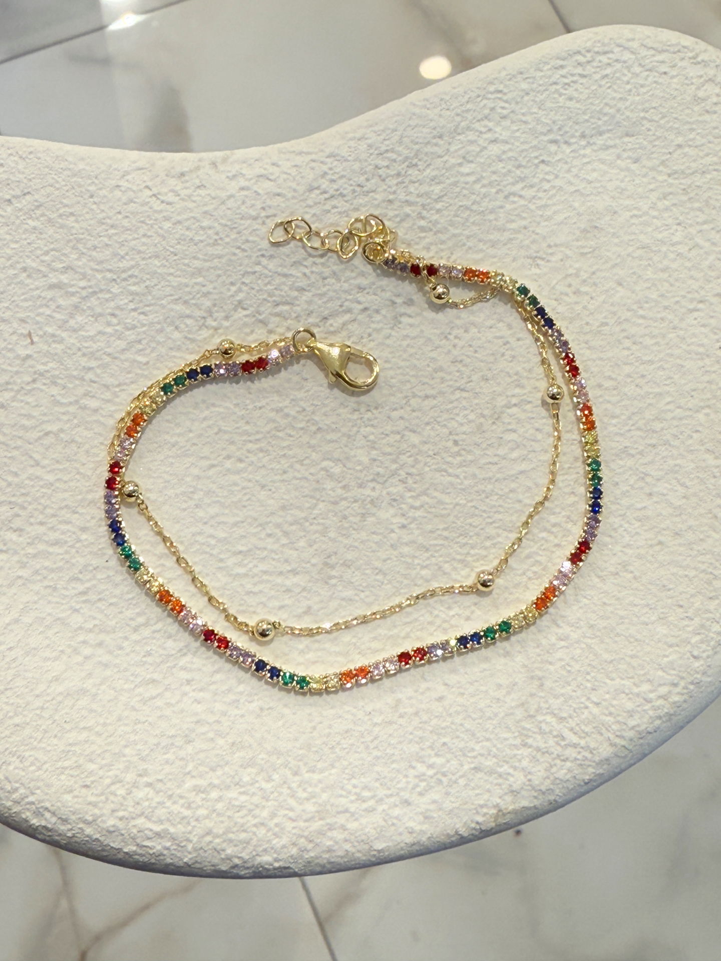 925 Silver | Beaded Chain Colorful Tennis Bracelet