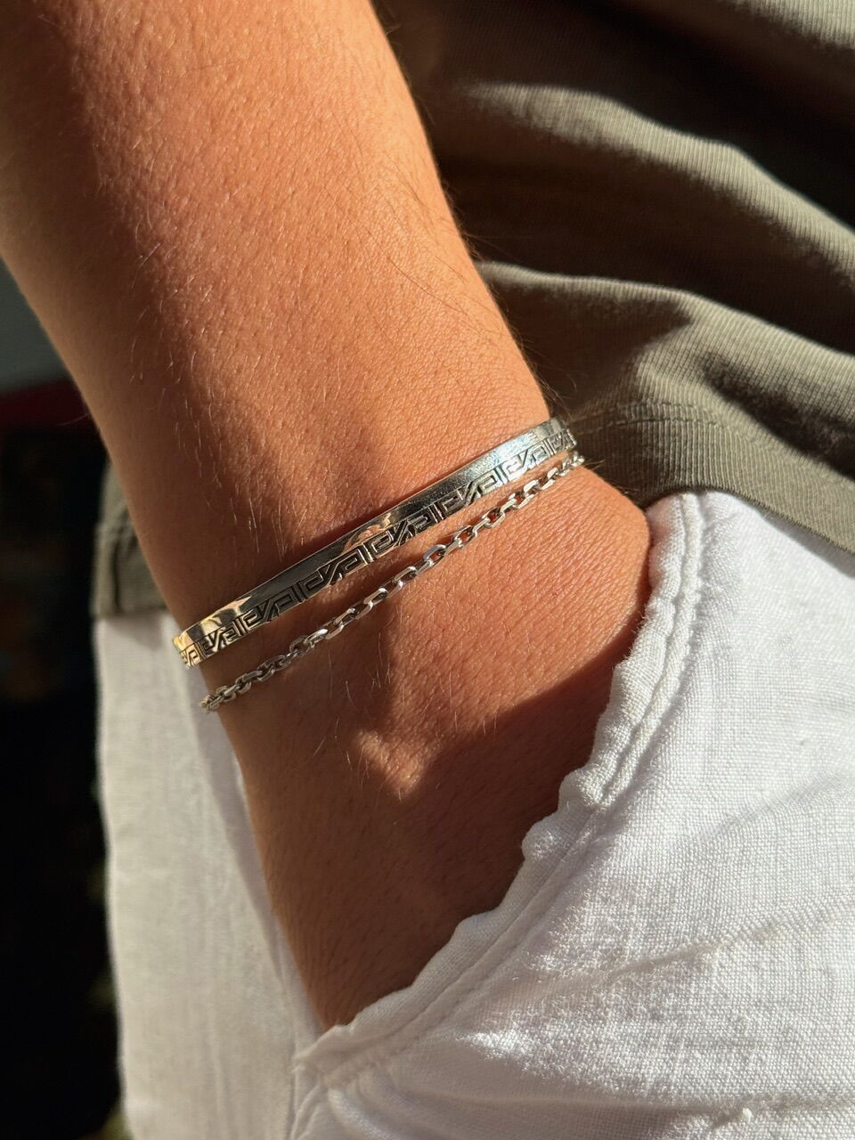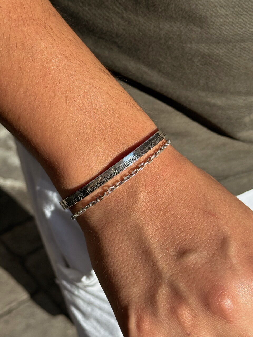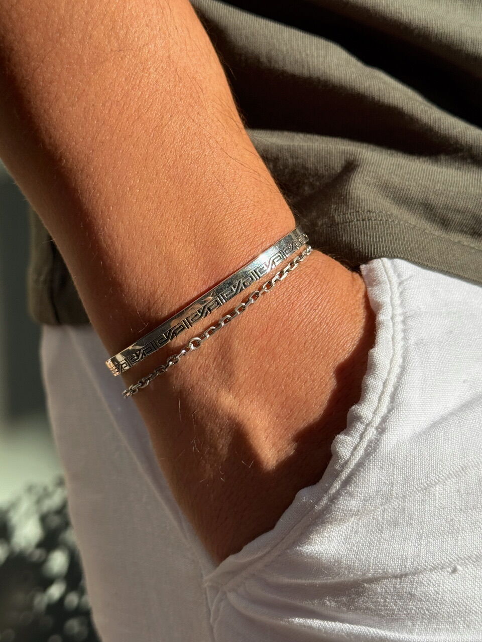 925 Silver | Double-Layer Patterned Men’s Cuff Bracelet