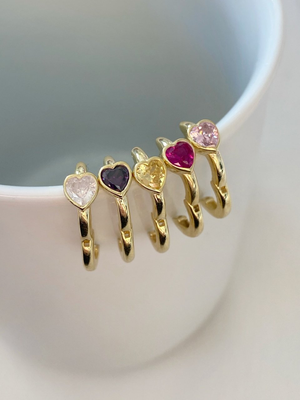 925 Silver | Colorful Heart Cartilage-Compatible Earring