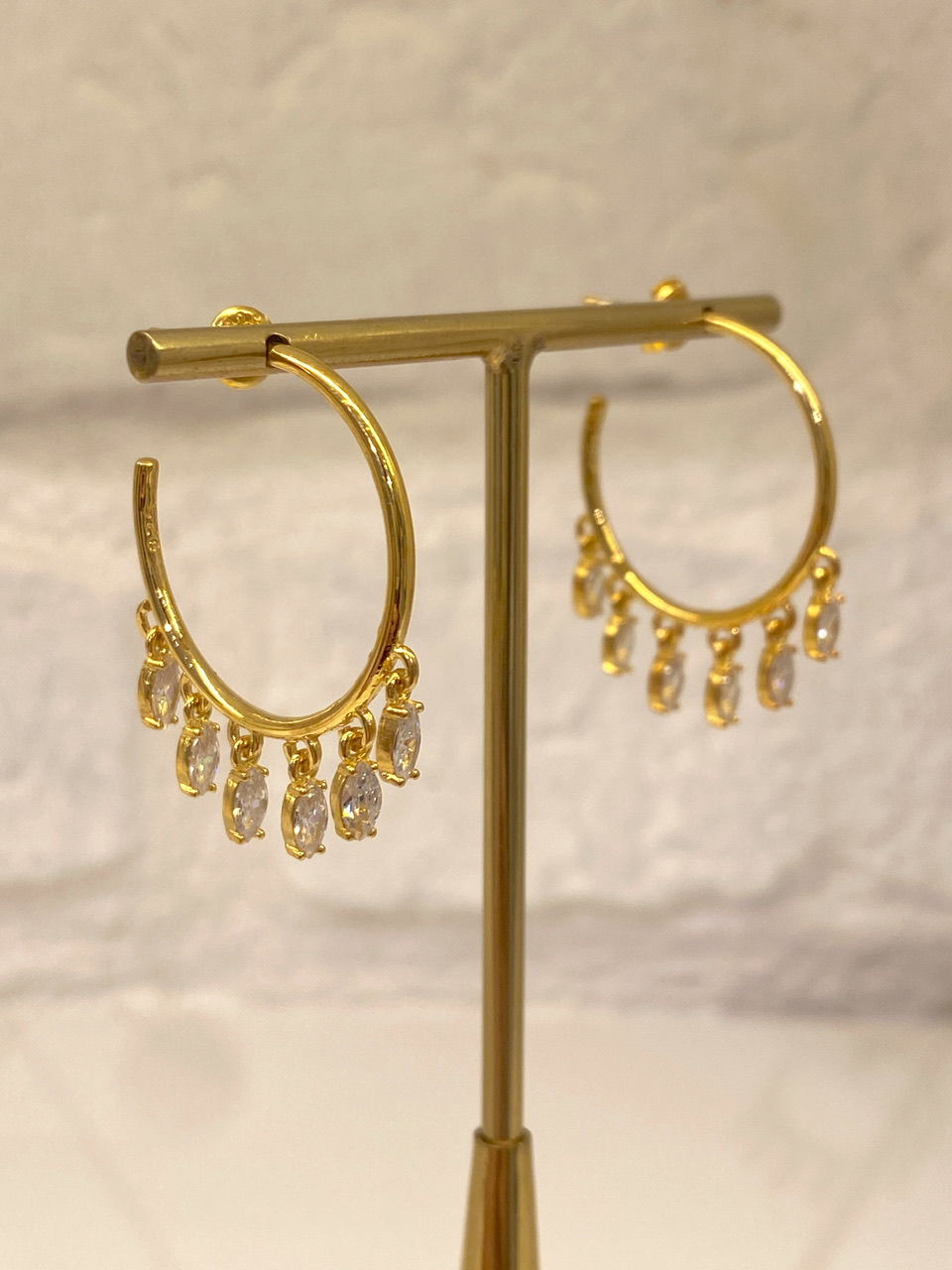 925 Silver | Dangling Almond-Shaped Stone Hoop Earrings