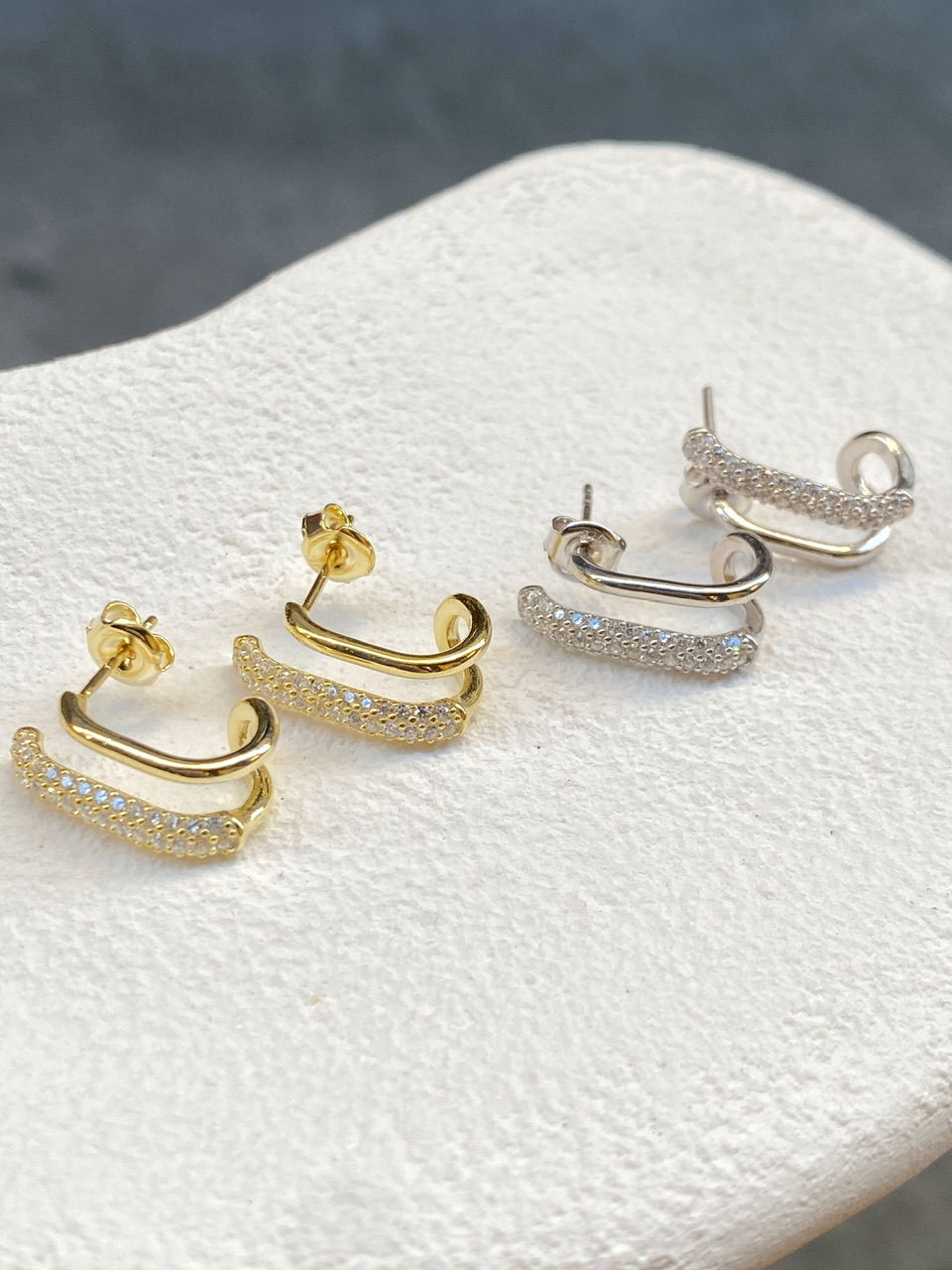 925 Silver | Double Earrings with Stone Detailing
