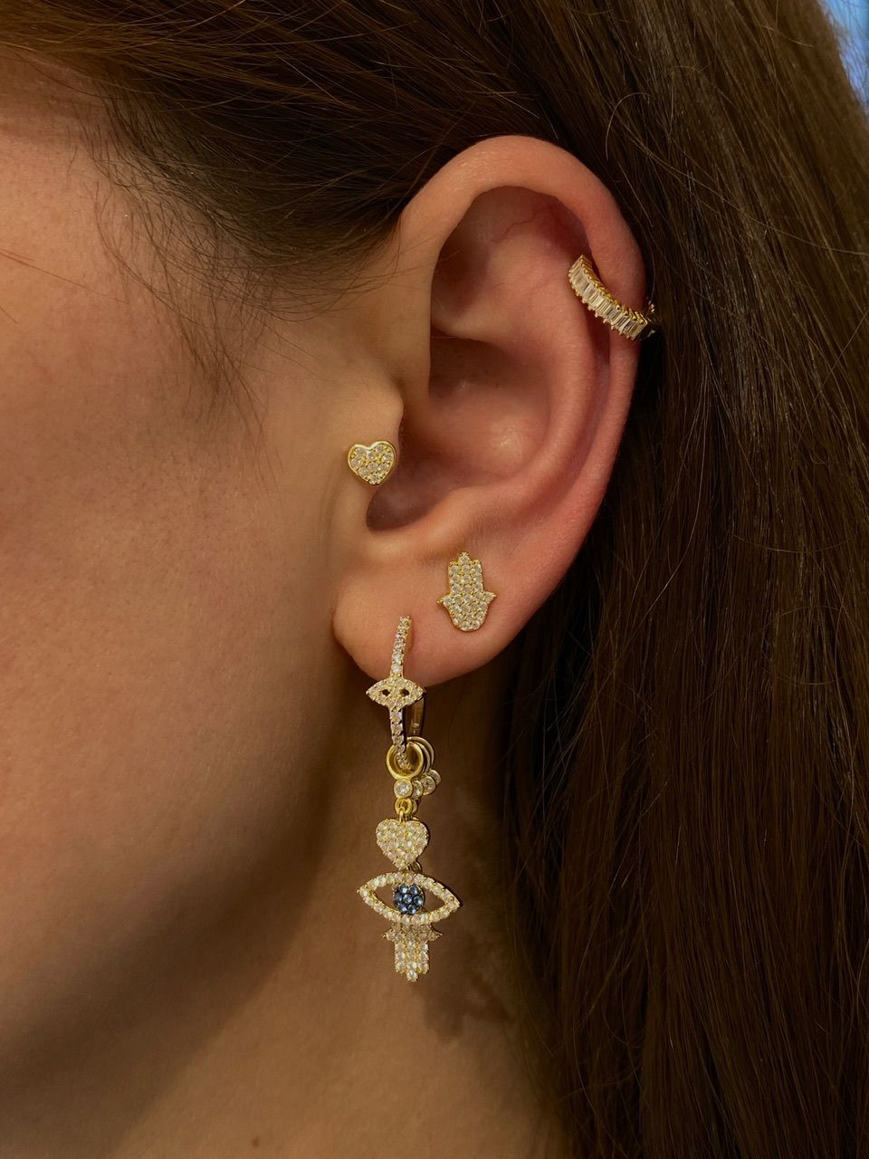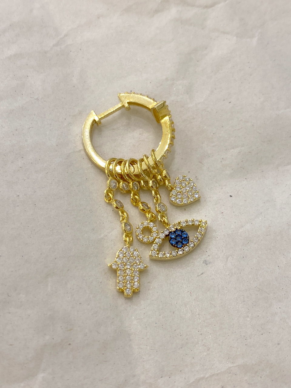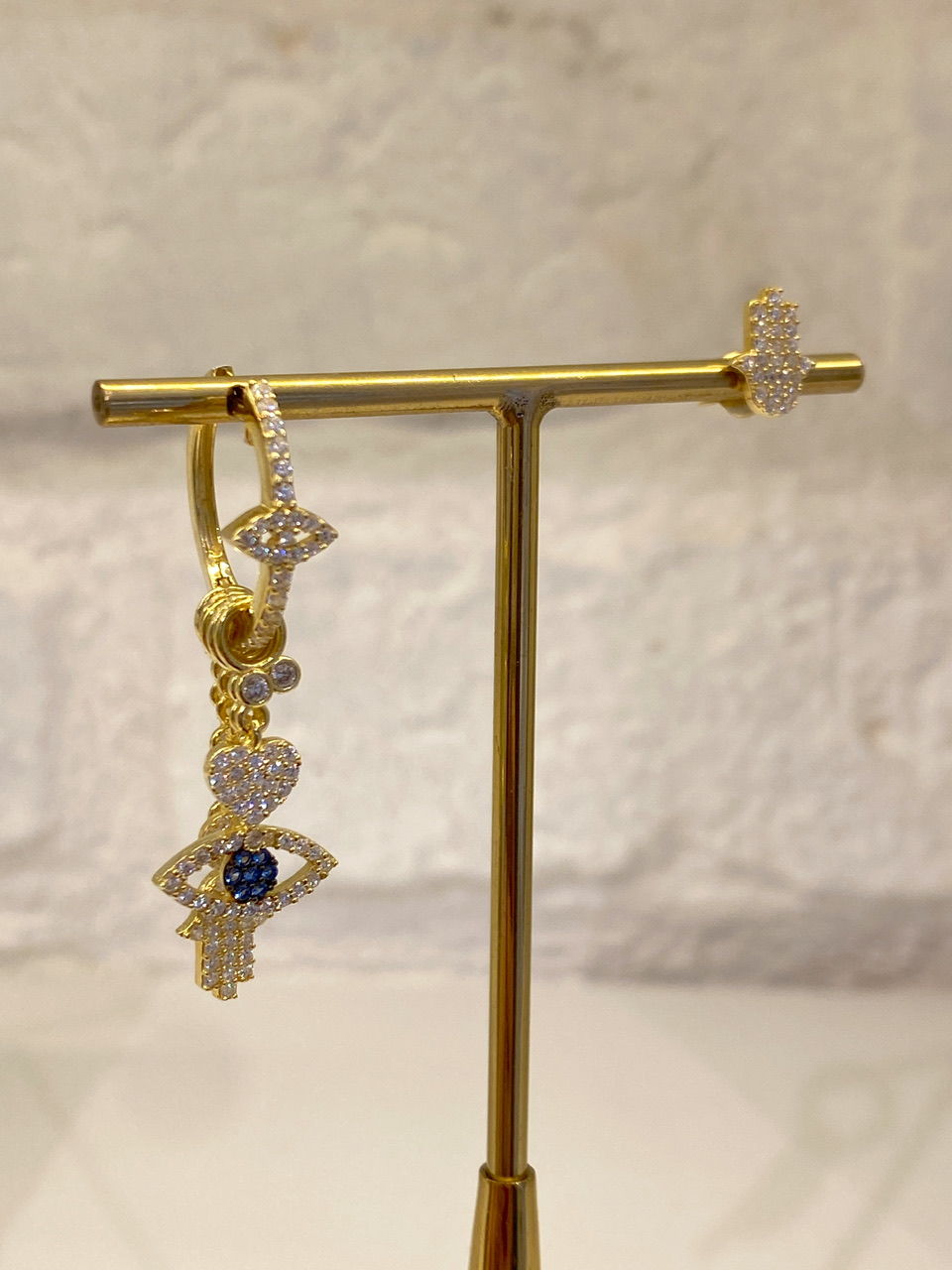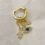 Sold as a pair. One earring is dangling, while the other is a stud. Charms are removable.