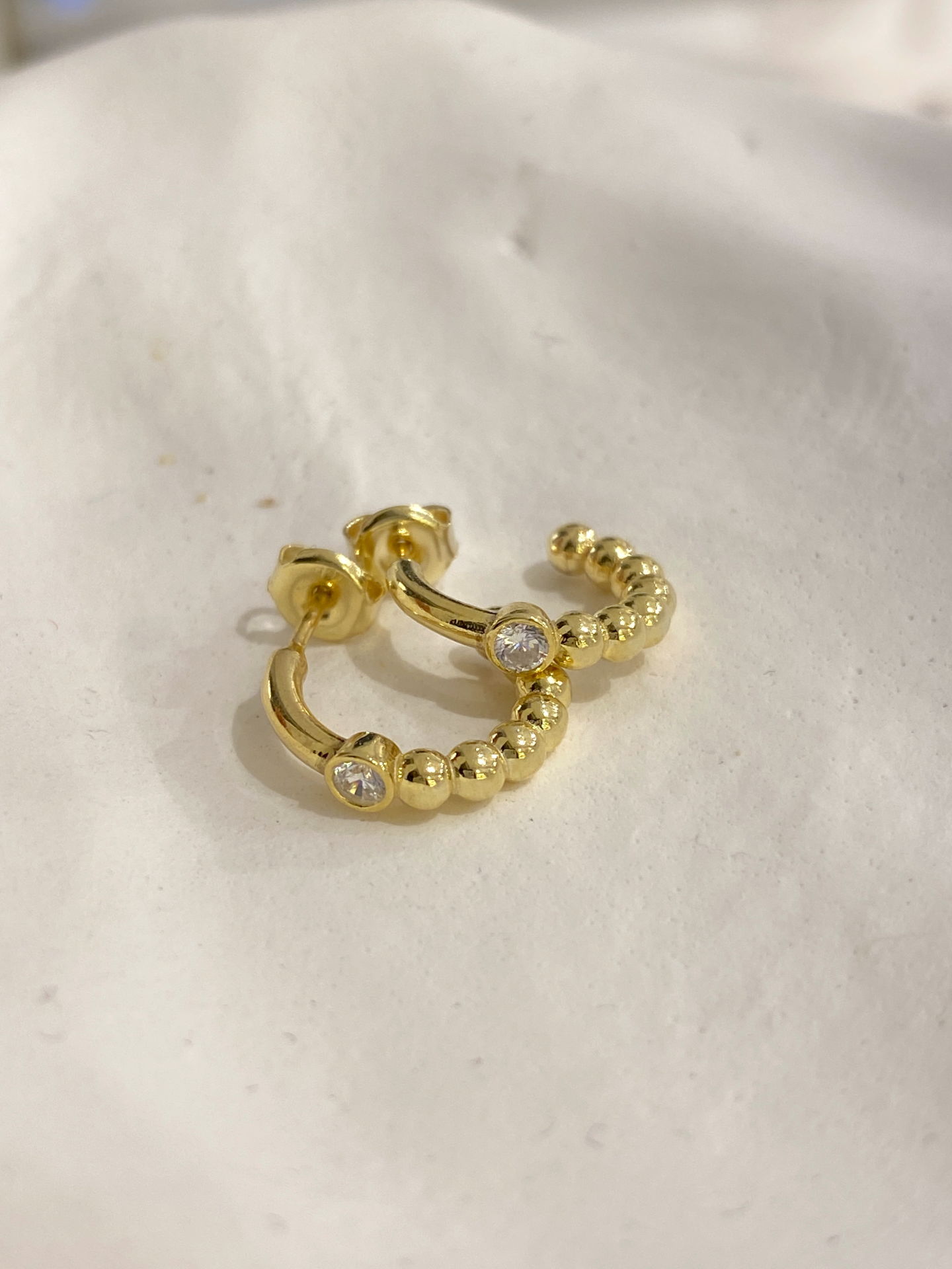 925 Silver | Half Beaded Hoop Earrings with Stone Detail
