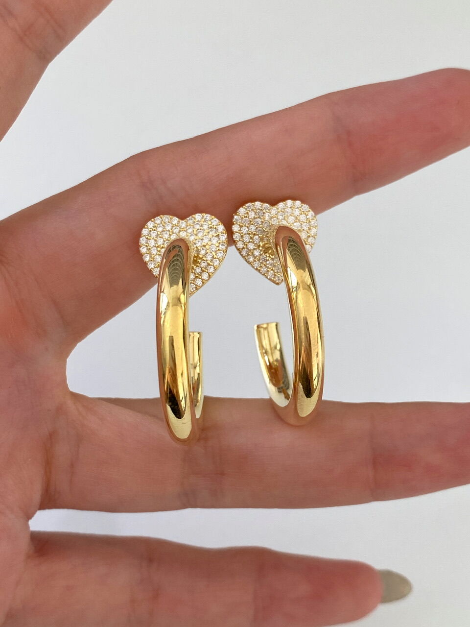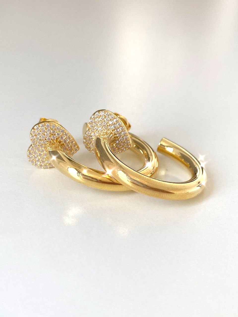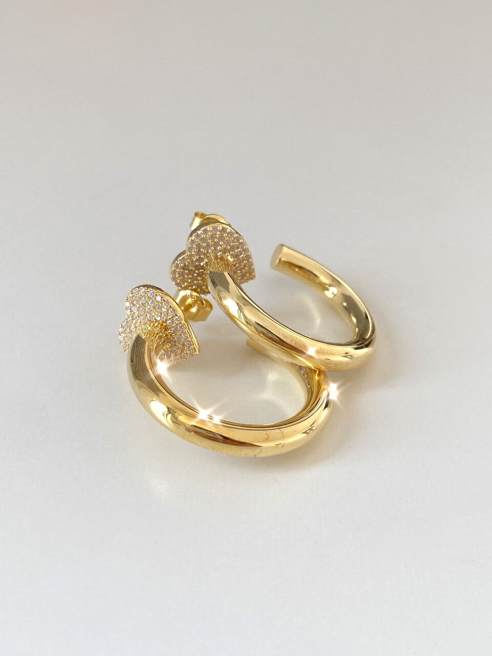 925 Silver | Hoop Earrings with Heart and Stone Detailing