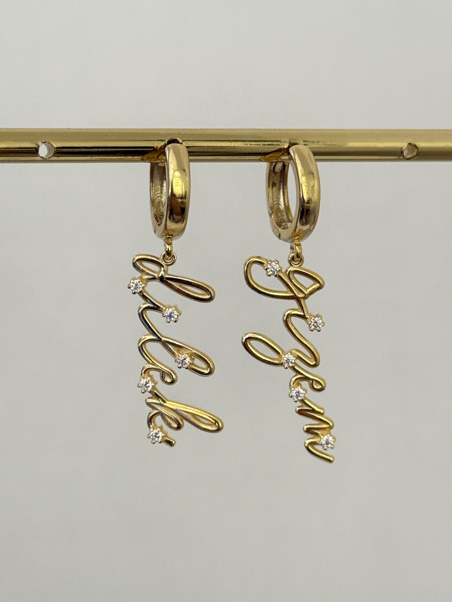 925 Silver | Personalized 3D Handwriting Earrings with Stone Detail
