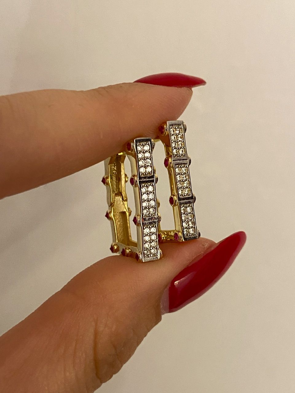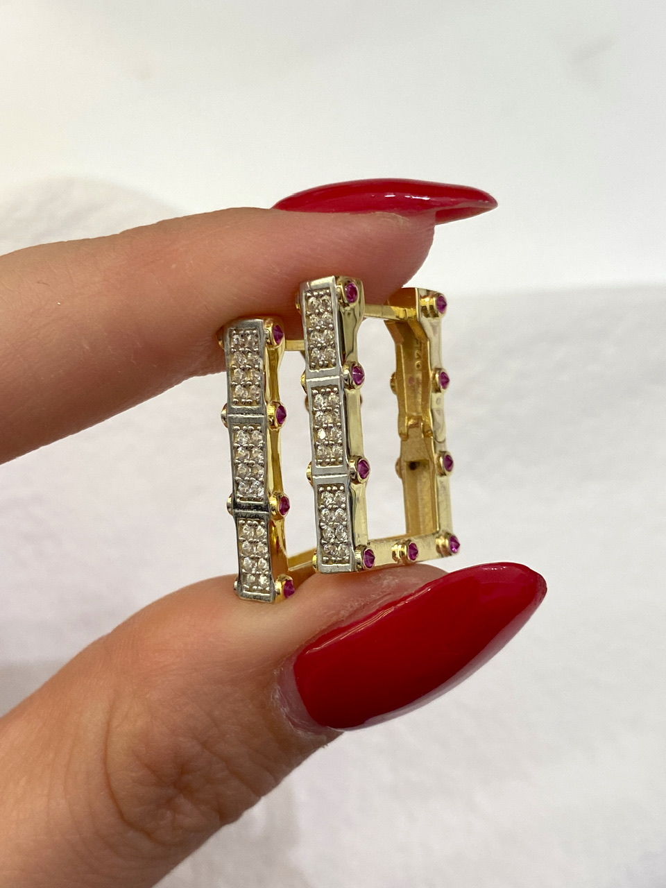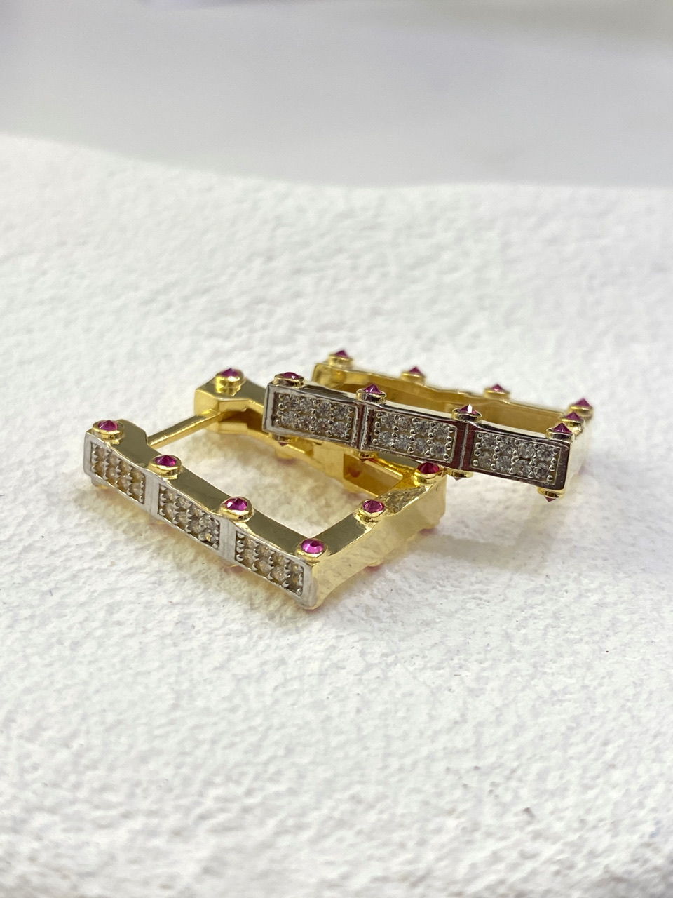 925 Silver | Trendy Rectangular Serenay Earrings with Stones