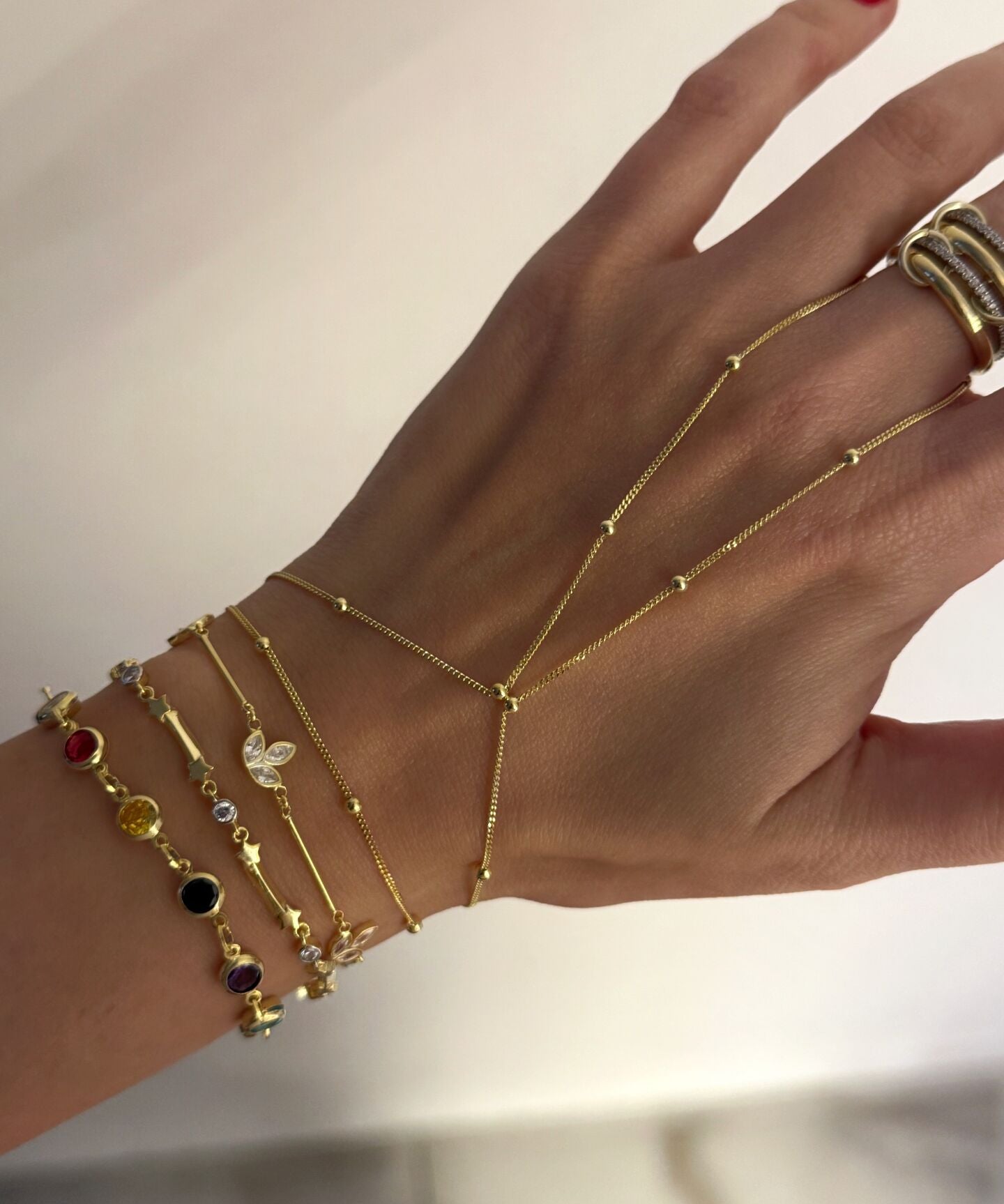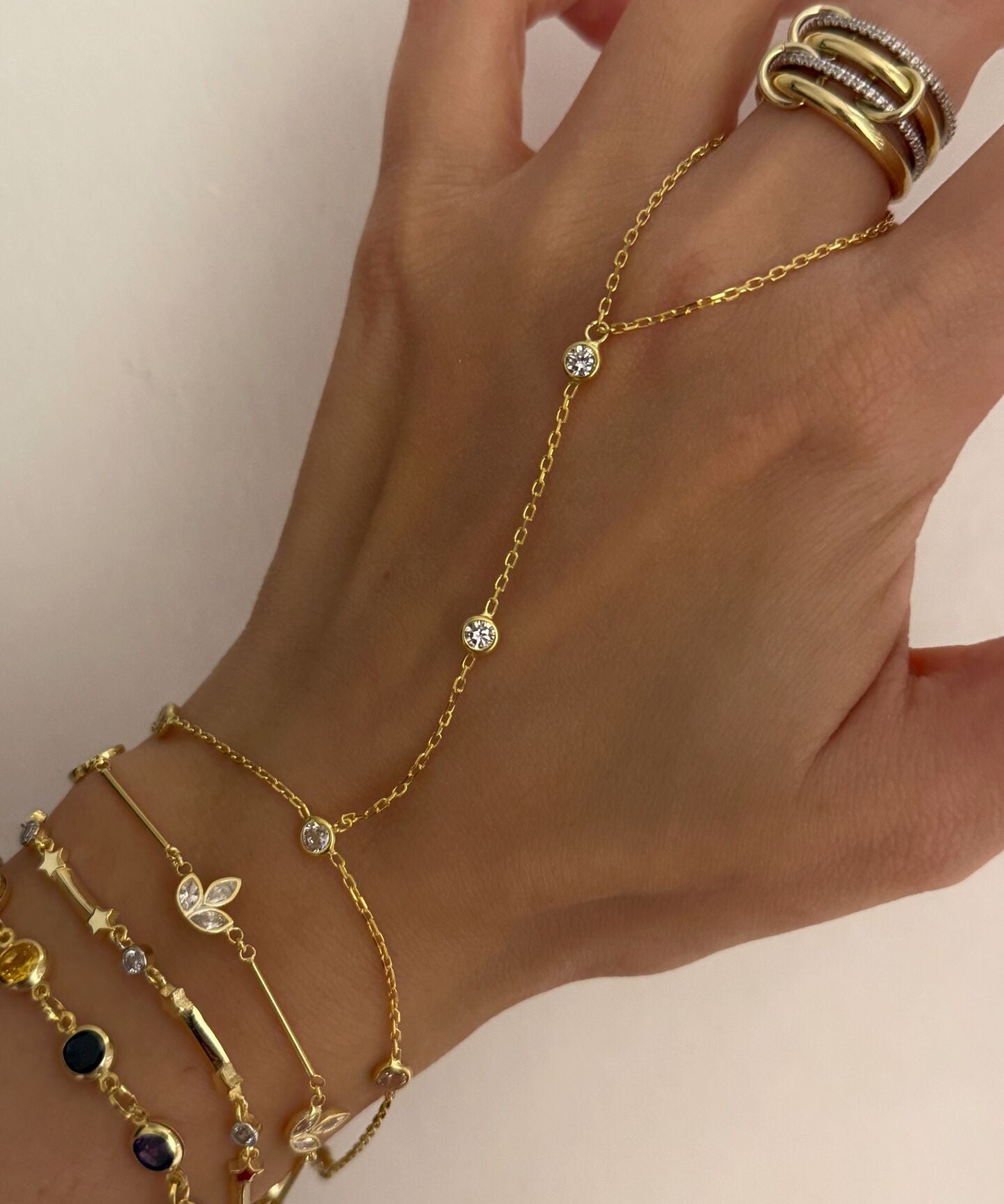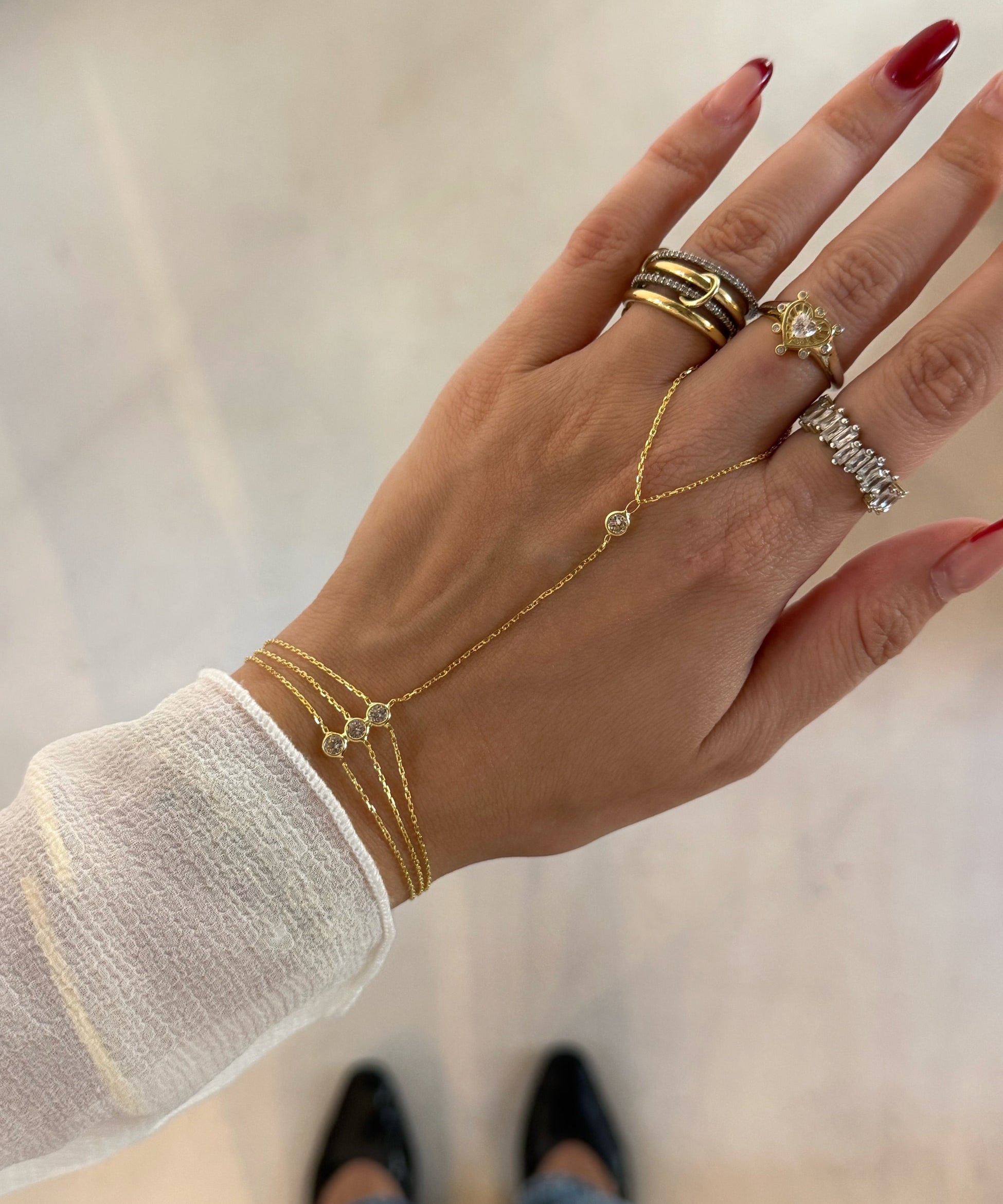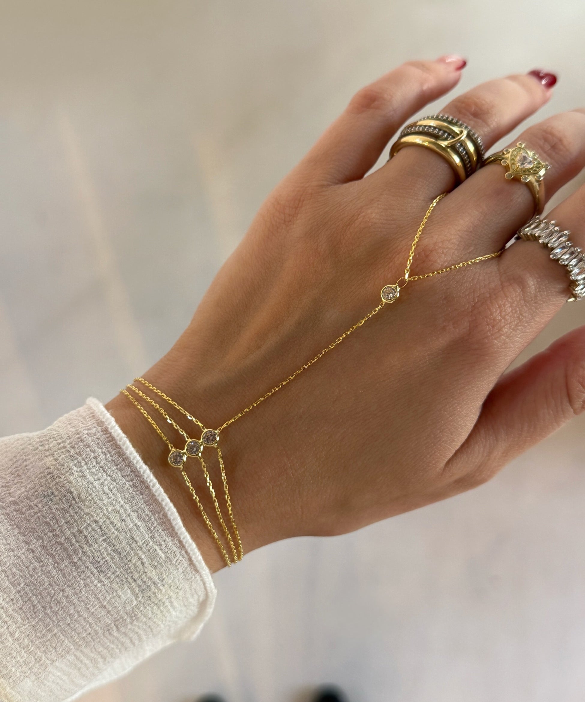 925 Silver | Triple Stone Minimal Hand Chain