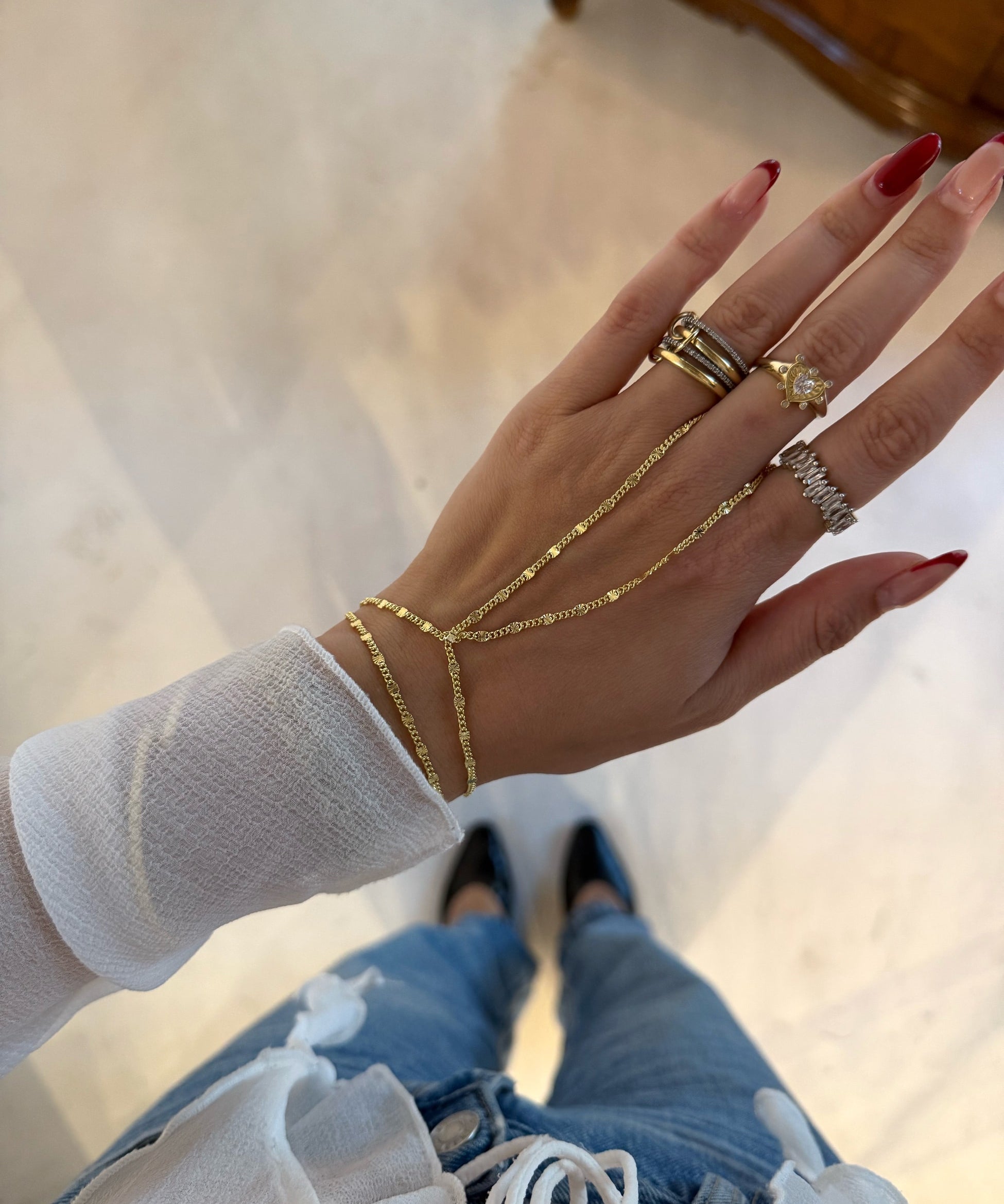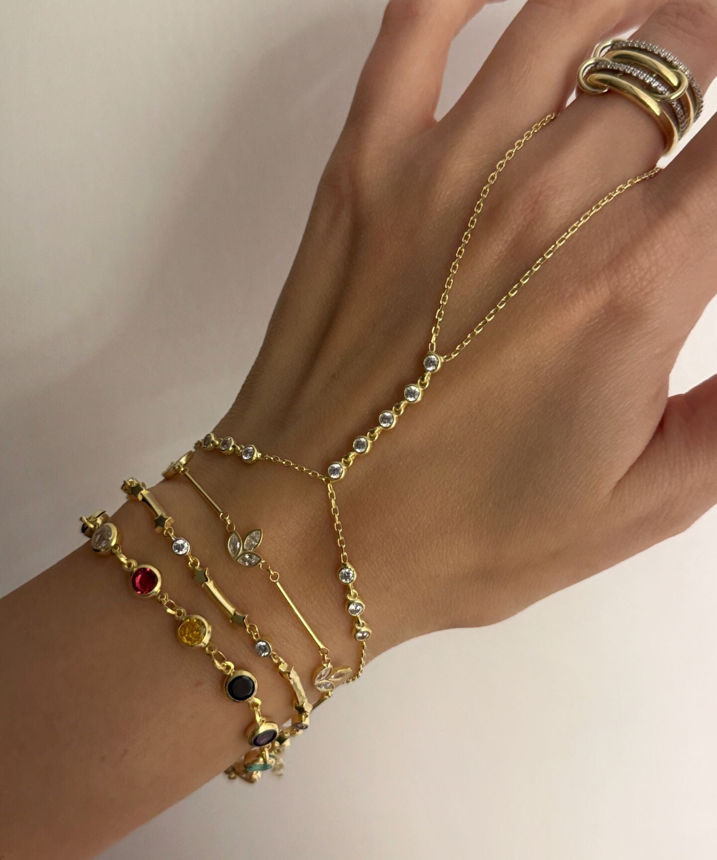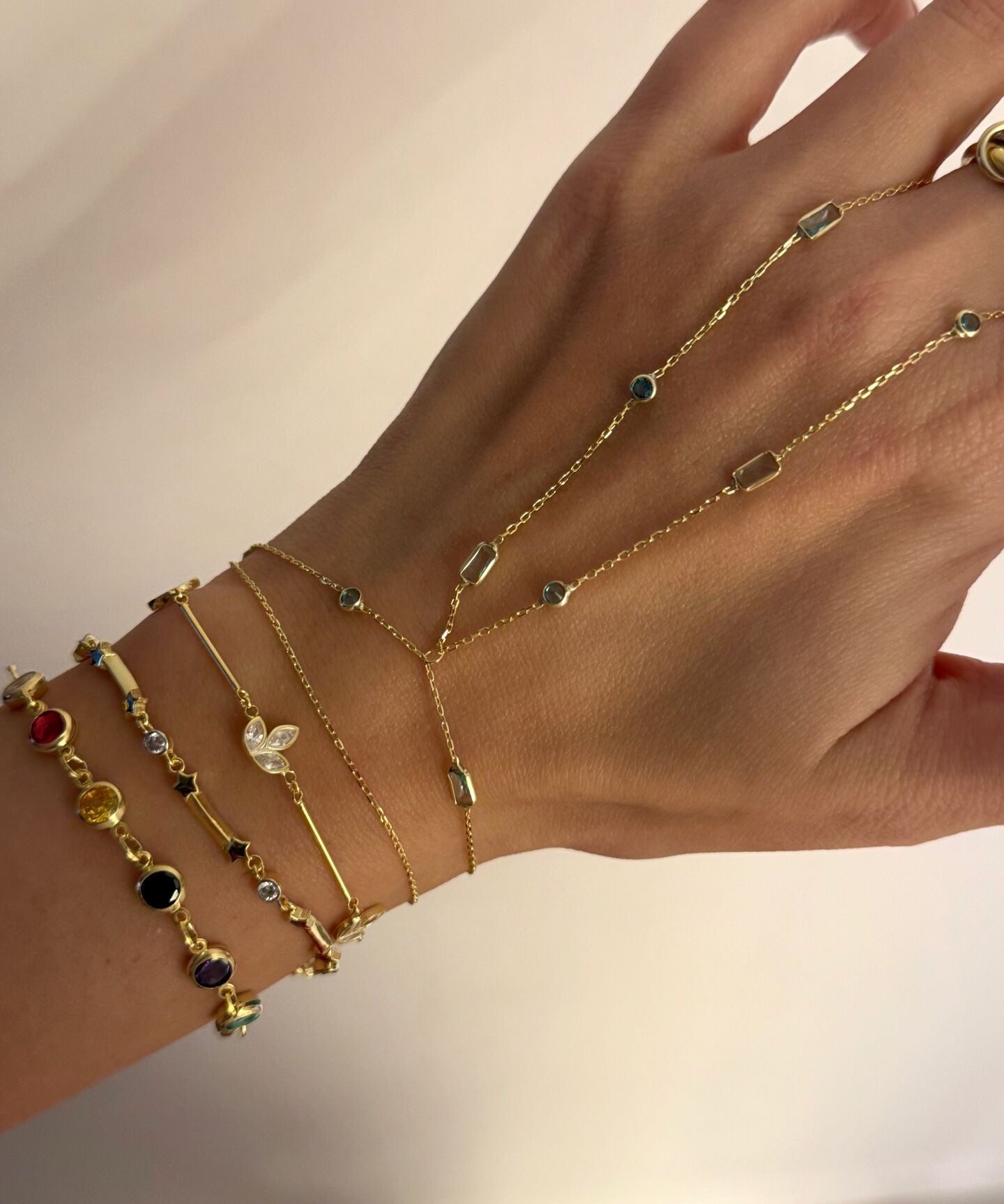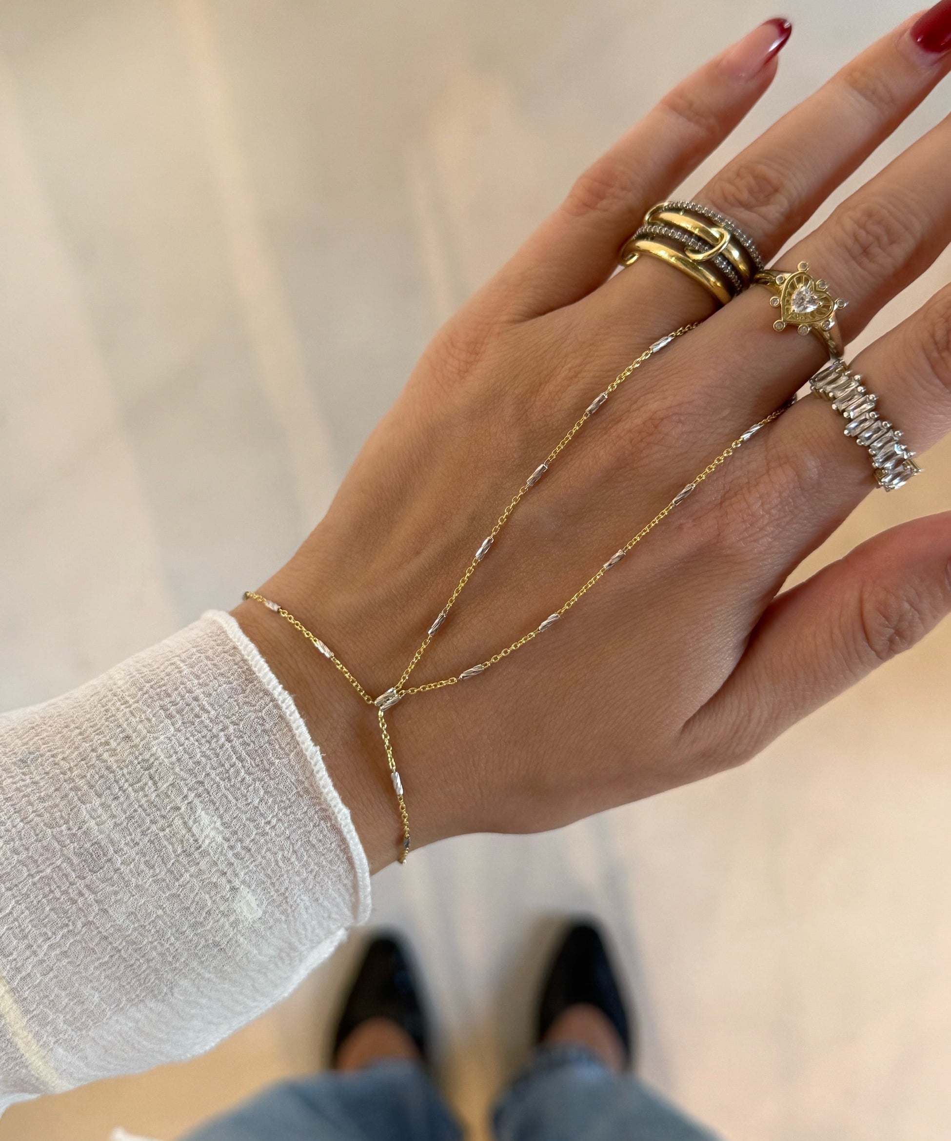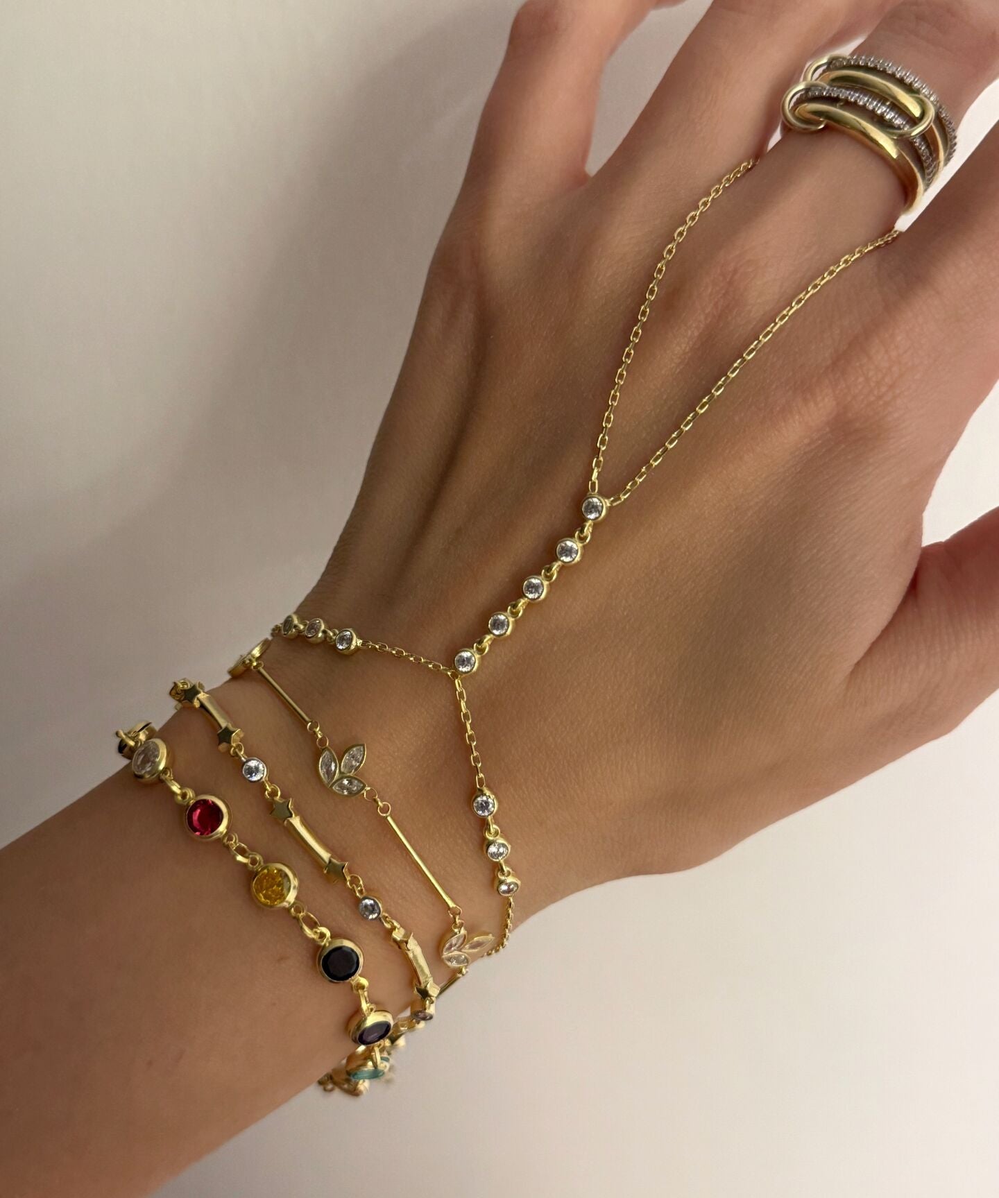 925 Silver | Triple Stone Minimal Hand Chain