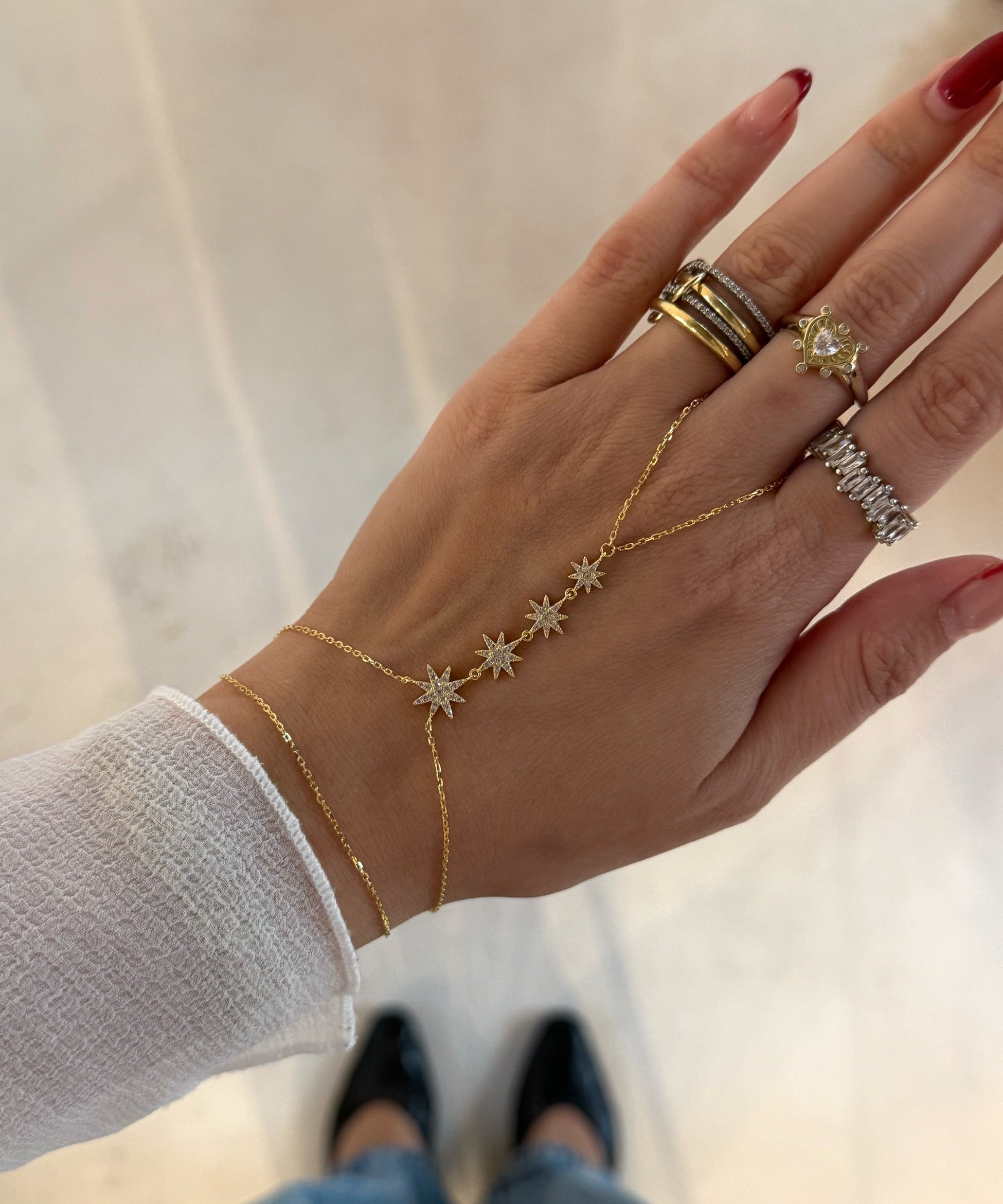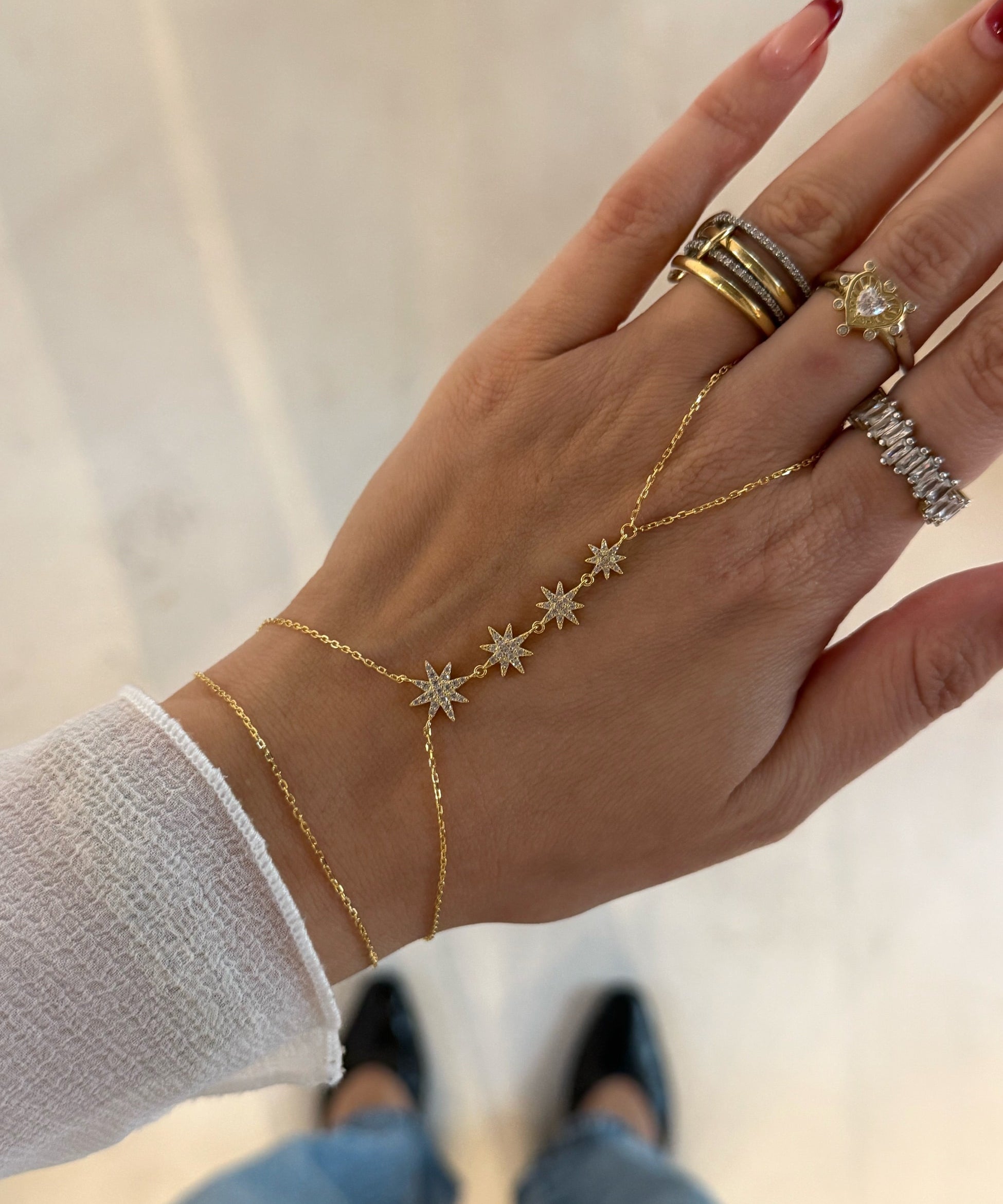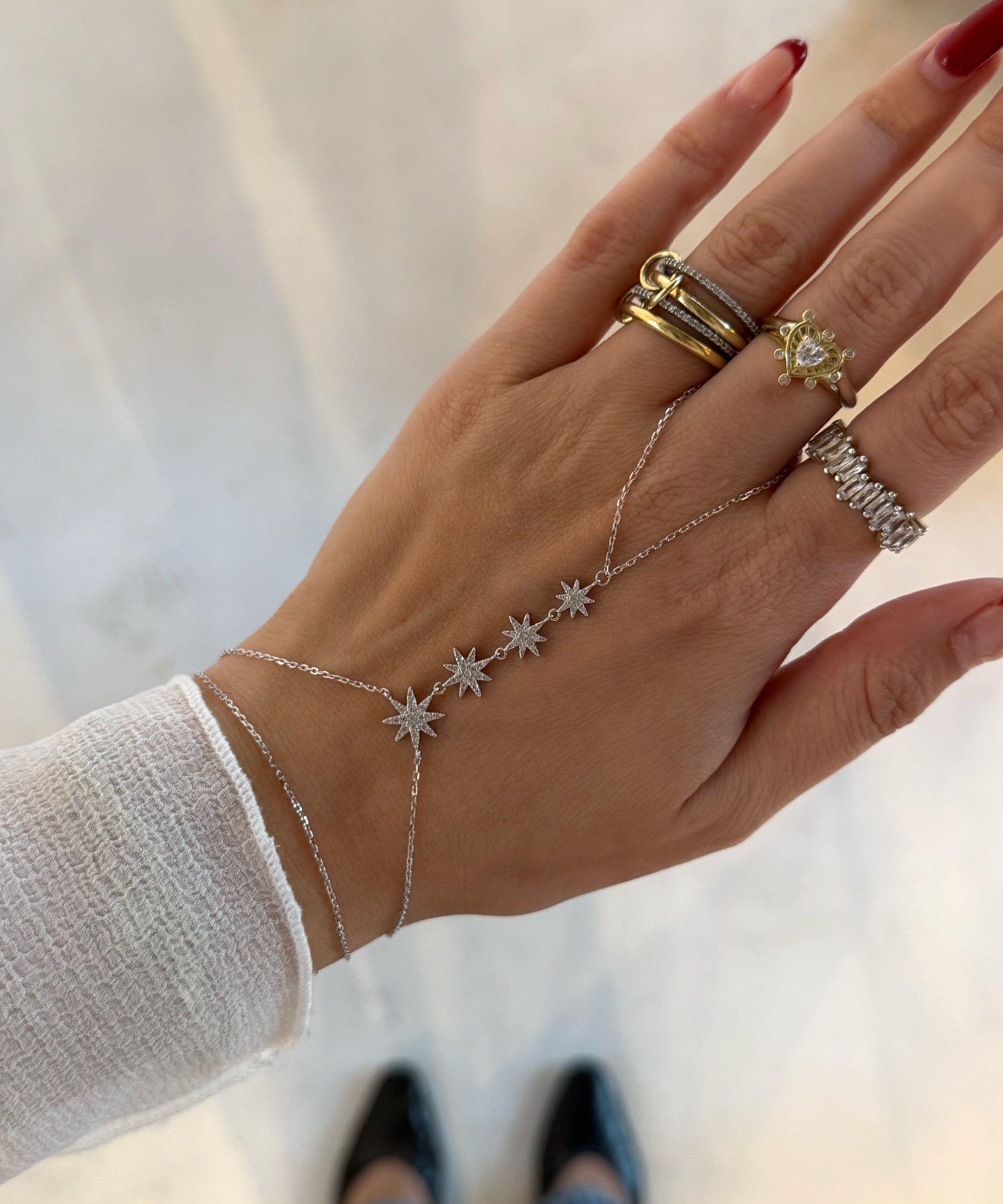 925 Silver | Quadruple Star Hand Chain