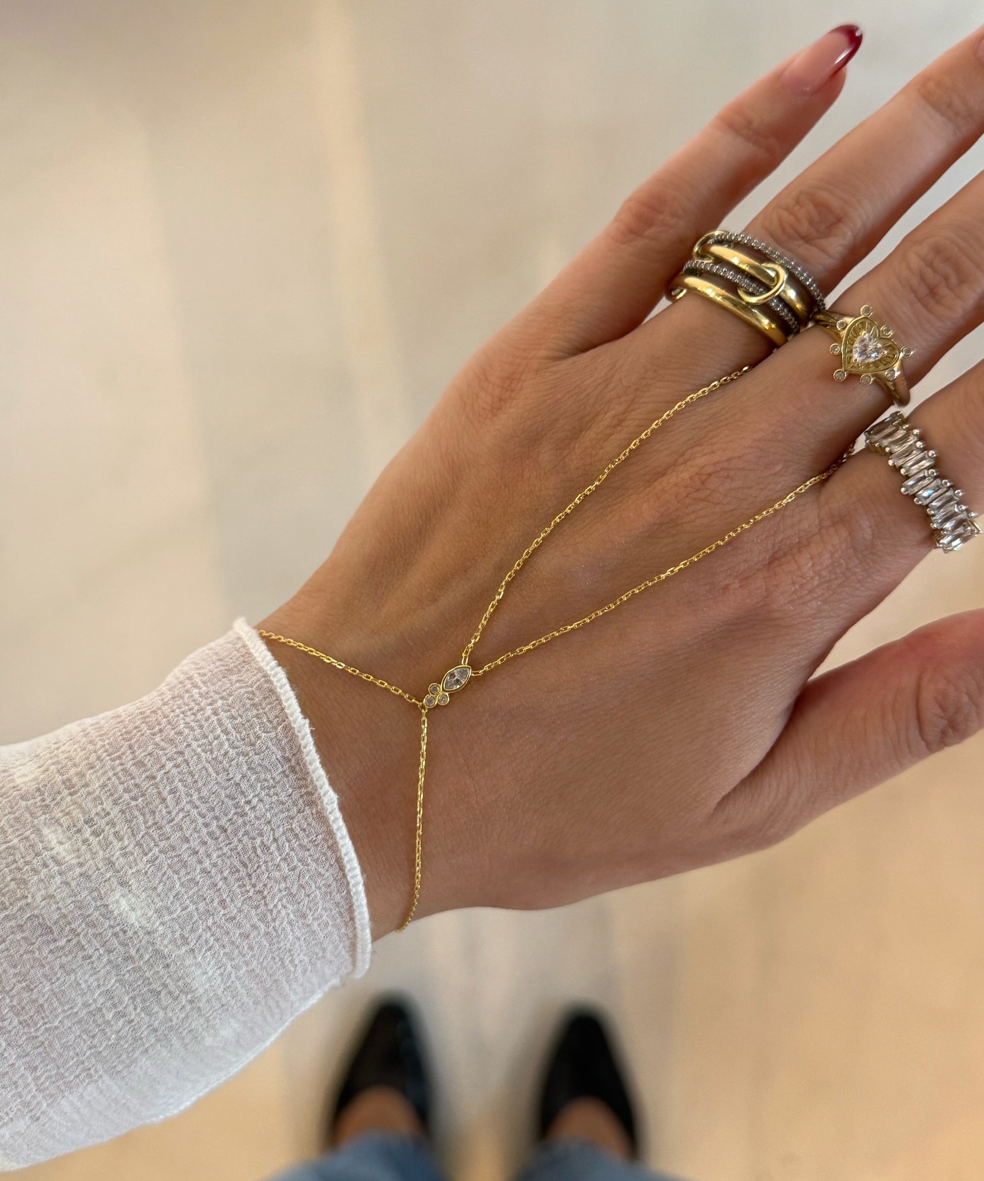 925 Silver | Minimal Triple Marquise Stone Hand Chain