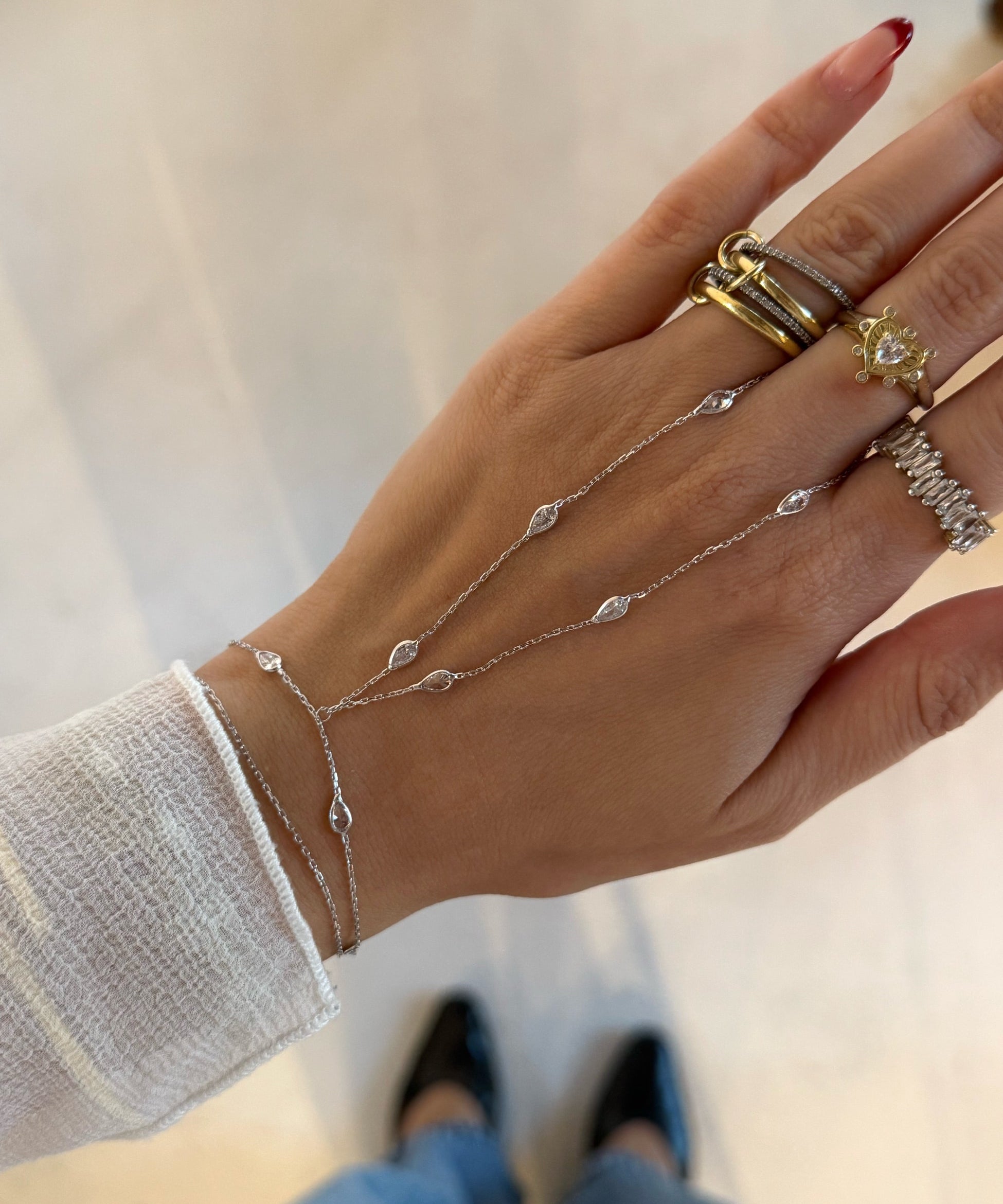 925 Silver | Teardrop Stone Hand Chain