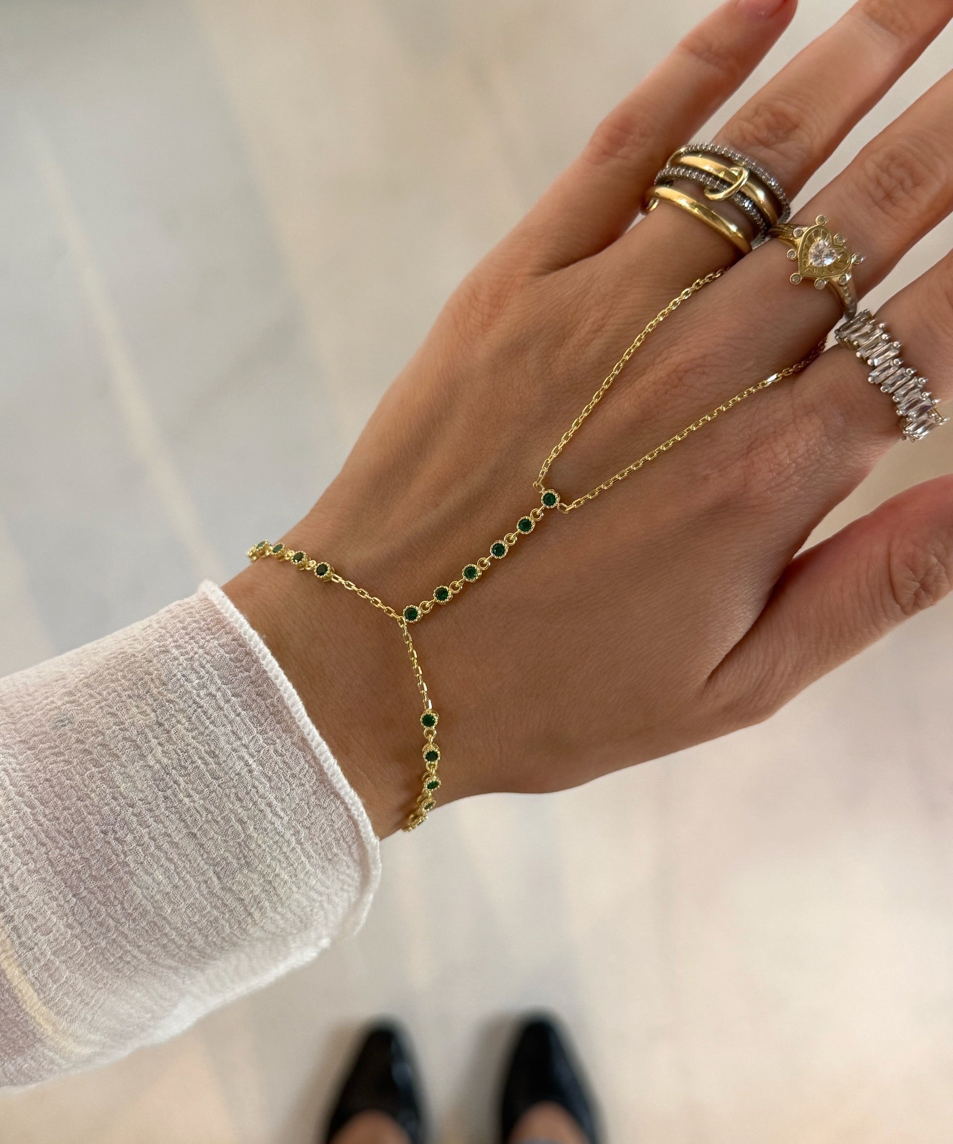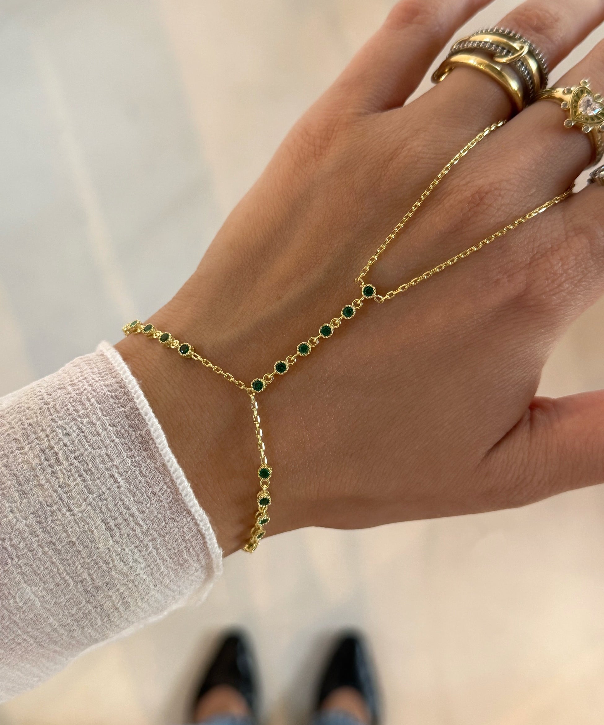 925 Silver | Round Green Stone Hand Chain