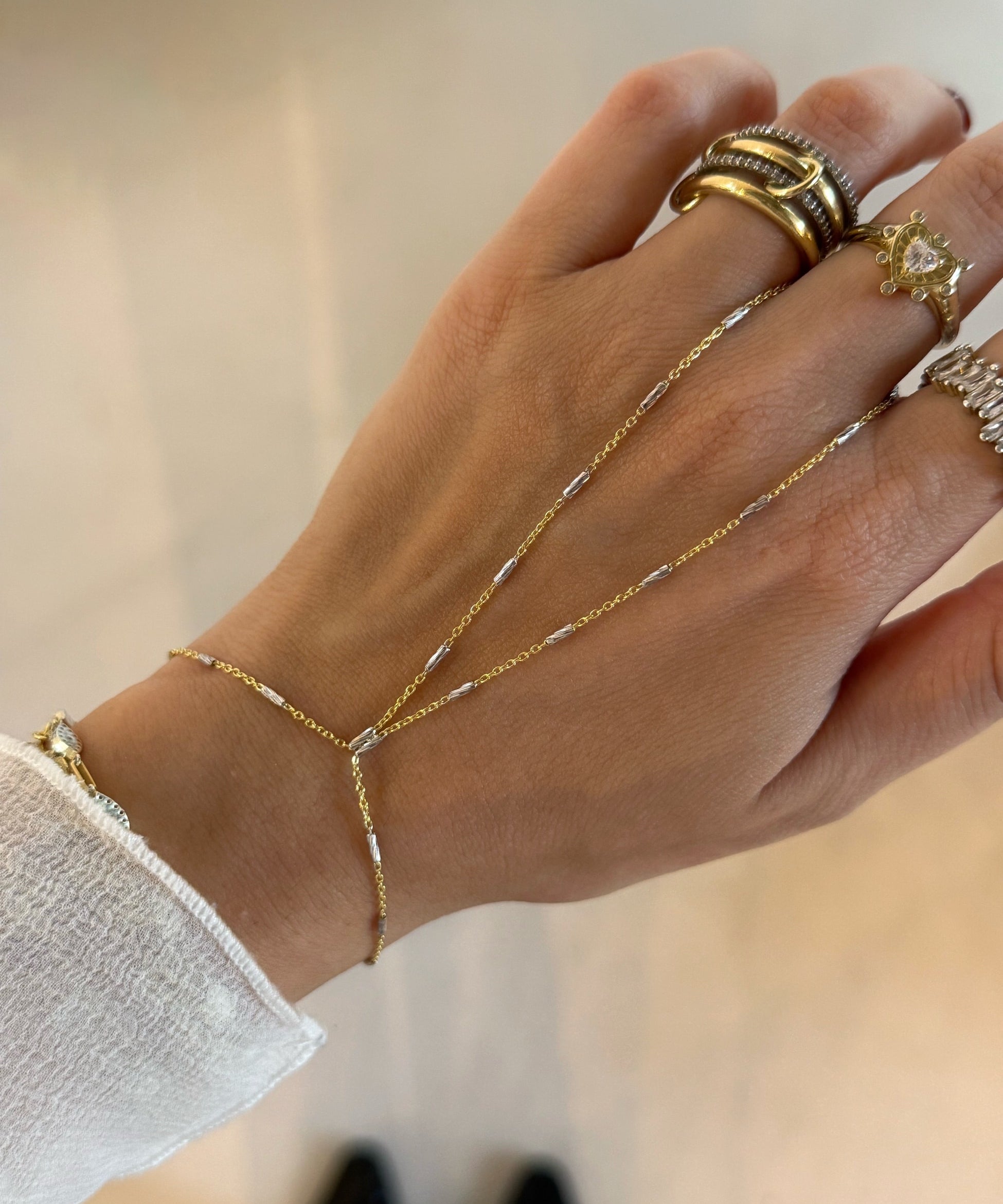 925 Silver | Minimal Two-Tone Tube Hand Chain