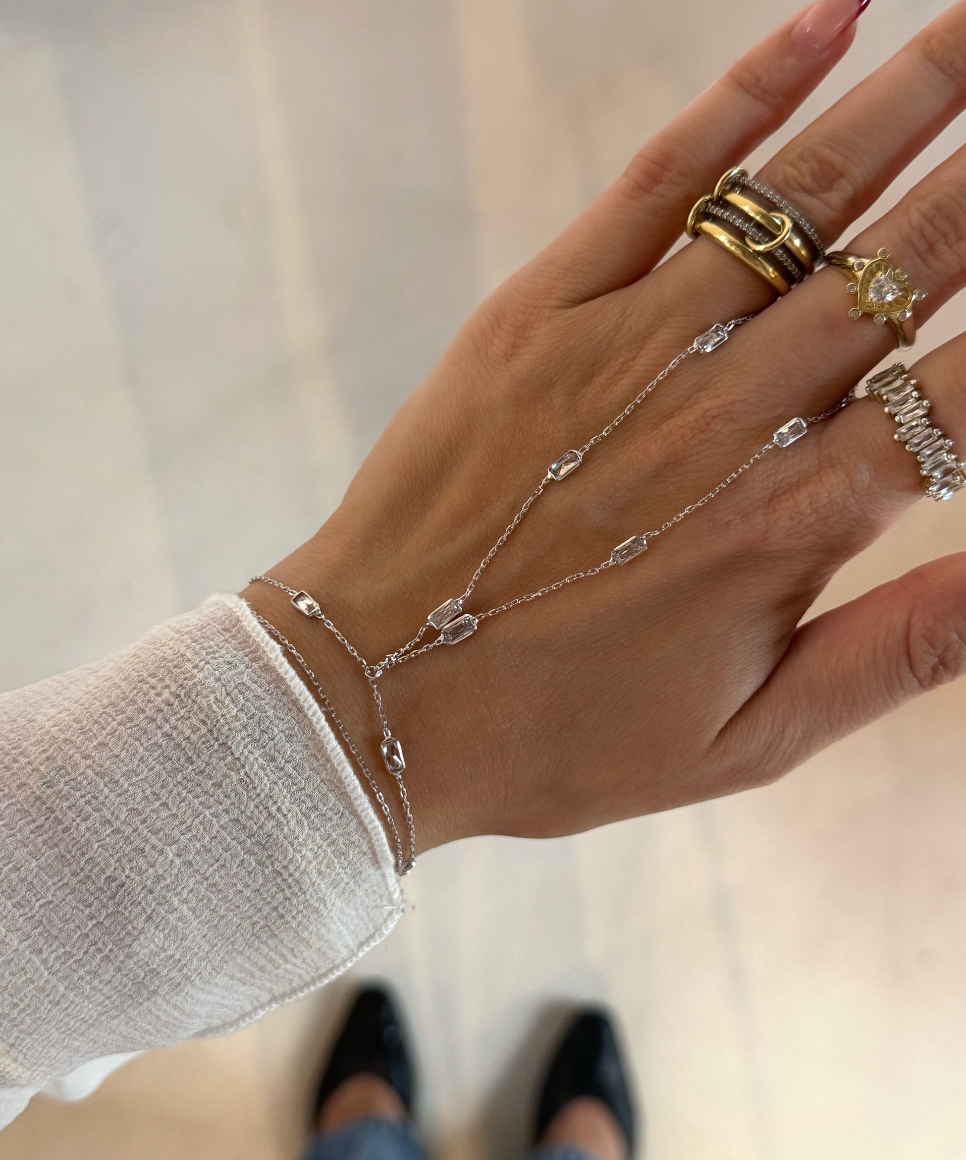 925 Silver | Baguette Stone Hand Chain