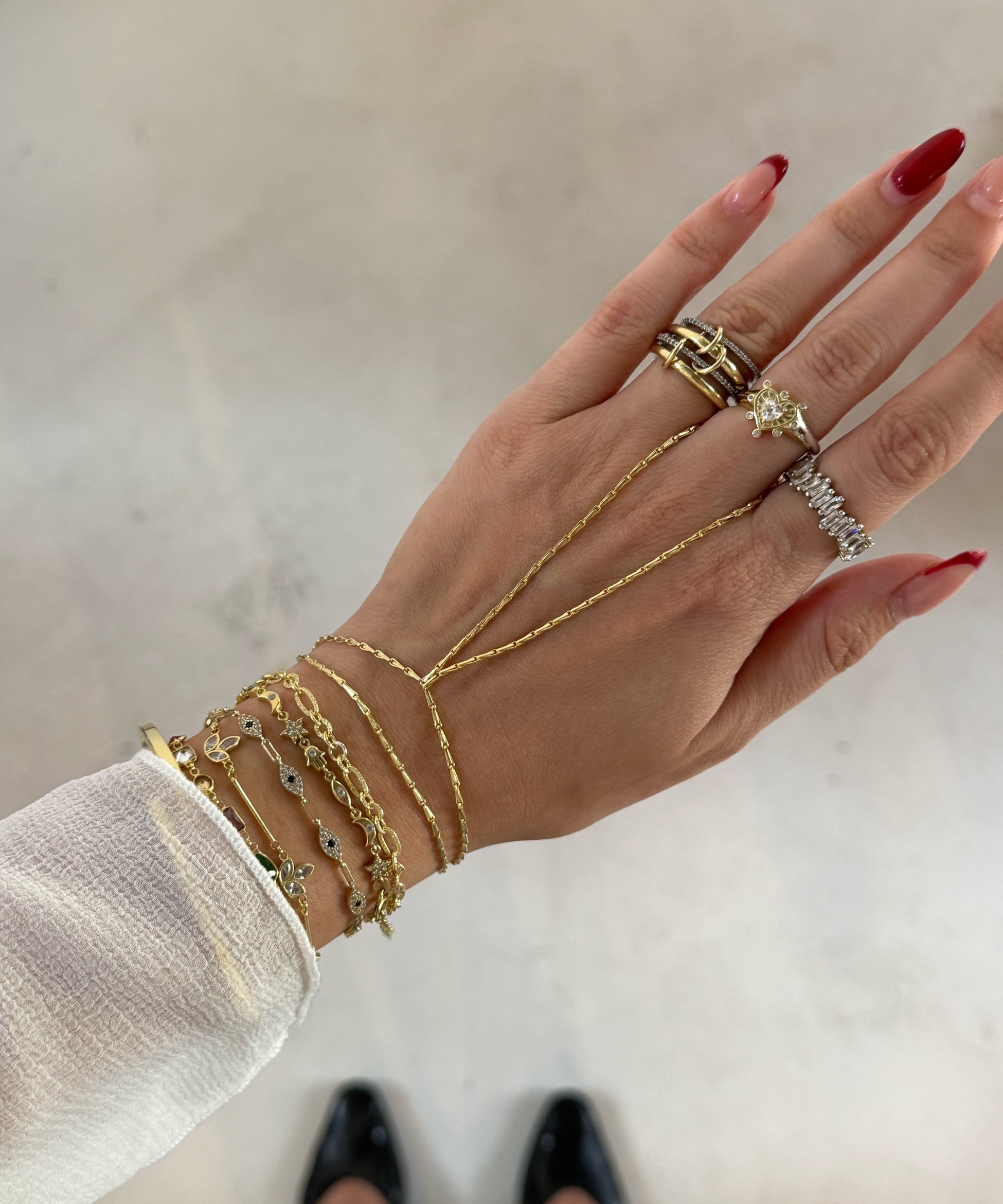 925 Silver | White Stone Heart Hand Chain