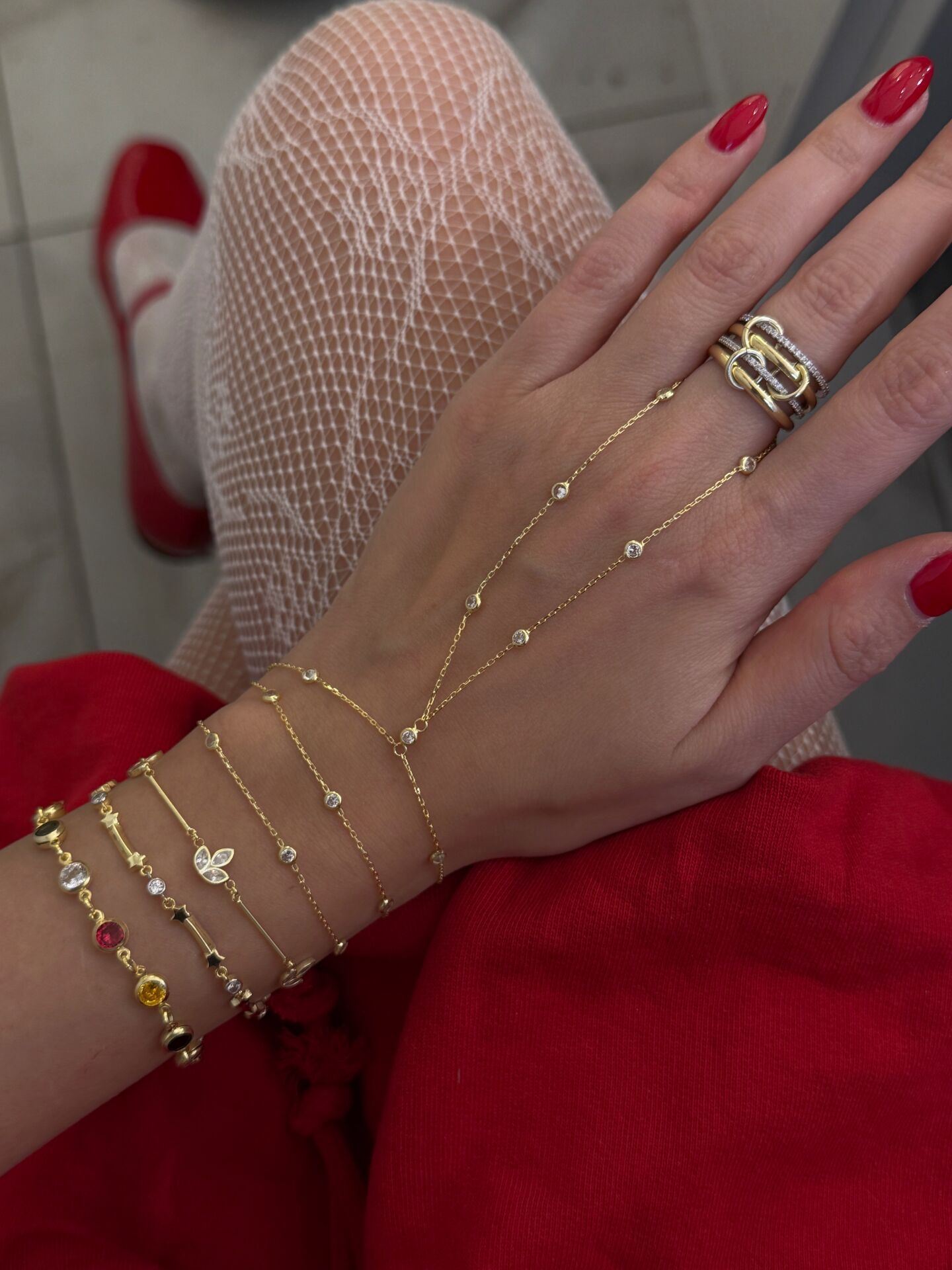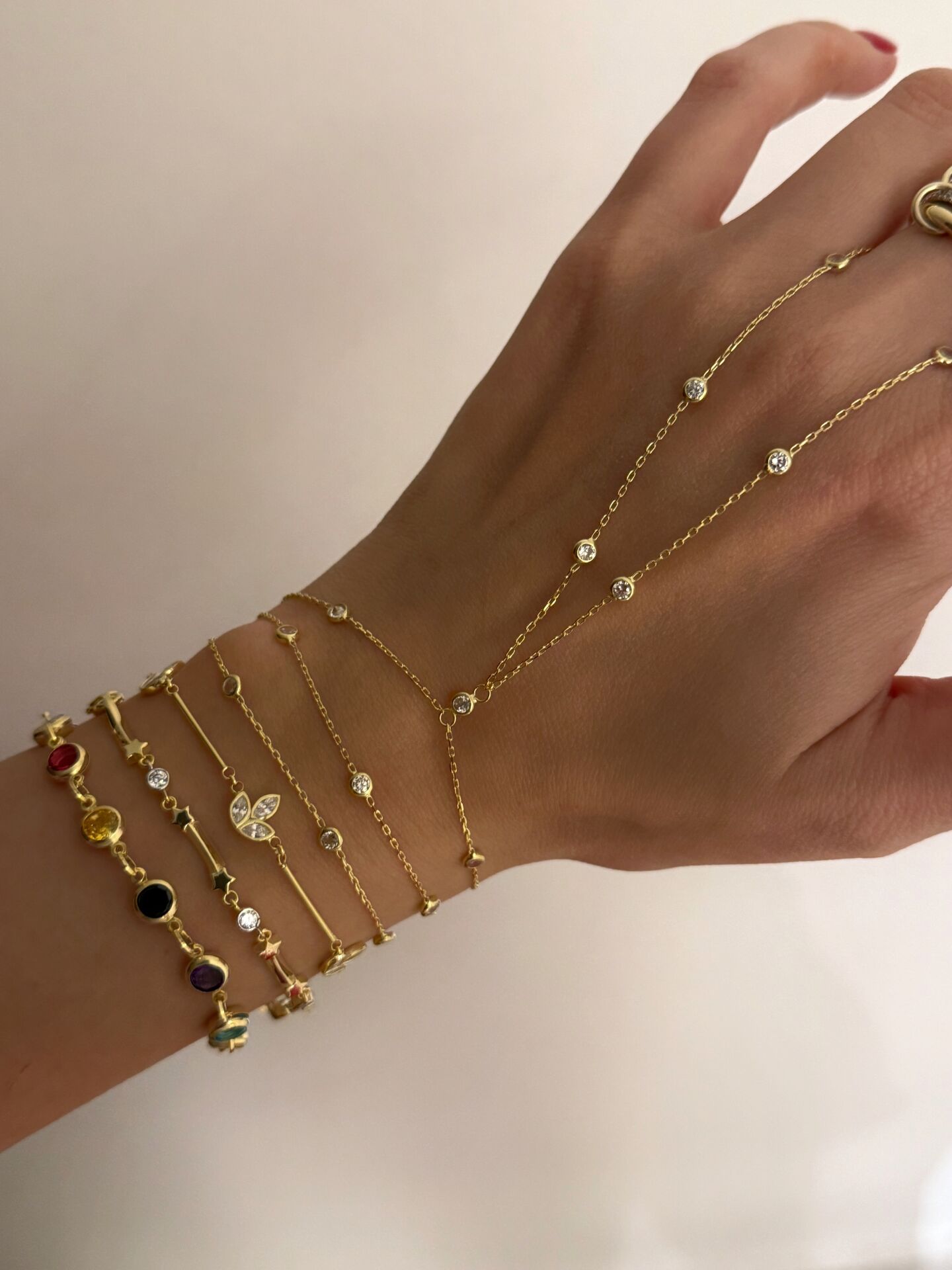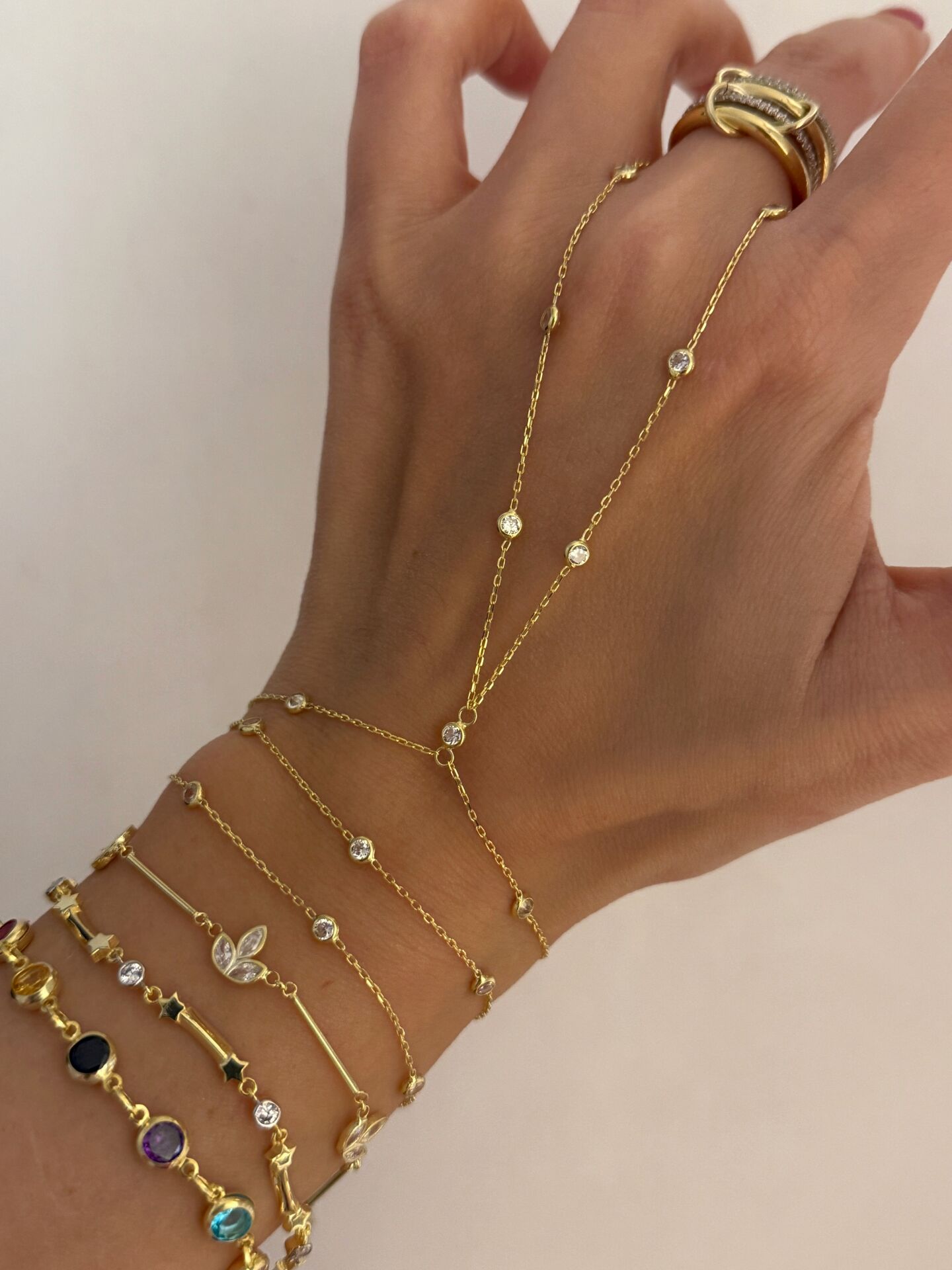 925 Silver | Triple Layer Minimal White Stone Hand Chain