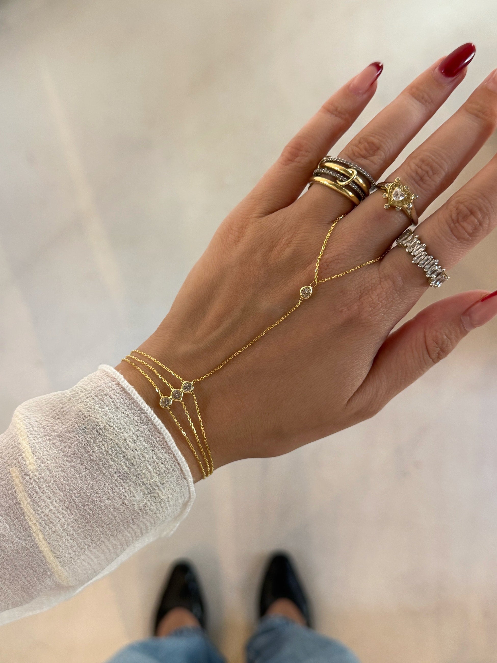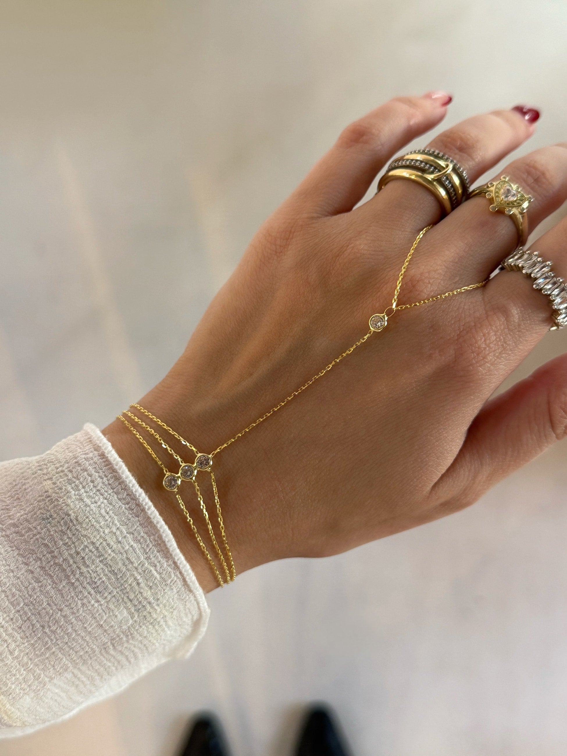 925 Silver | Triple Stone Minimal Hand Chain