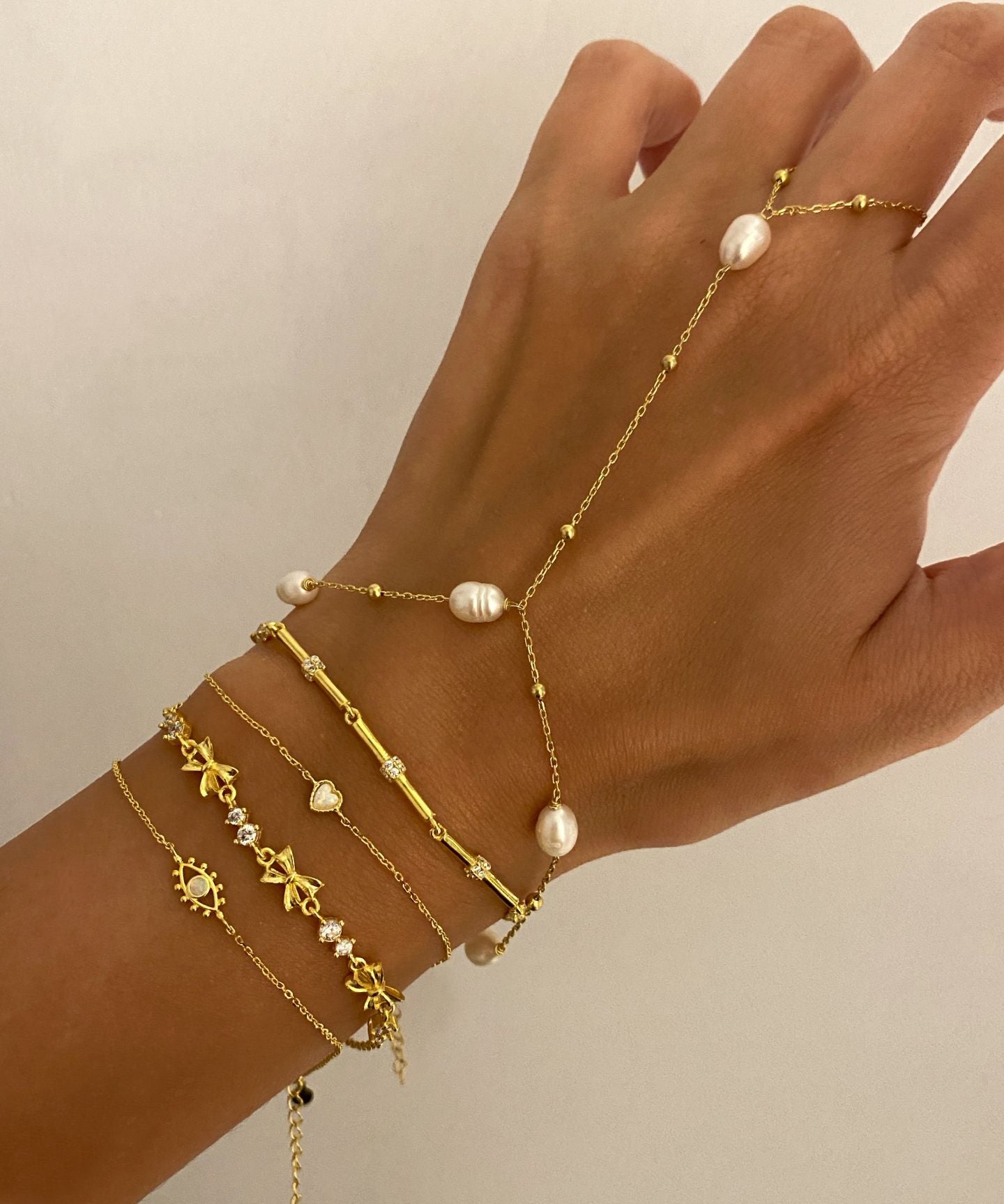925 Silver | Minimal Hand Chain with Pearl Detailing