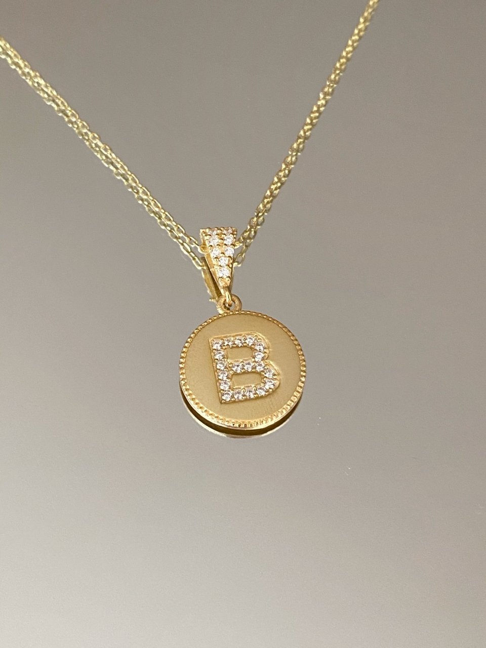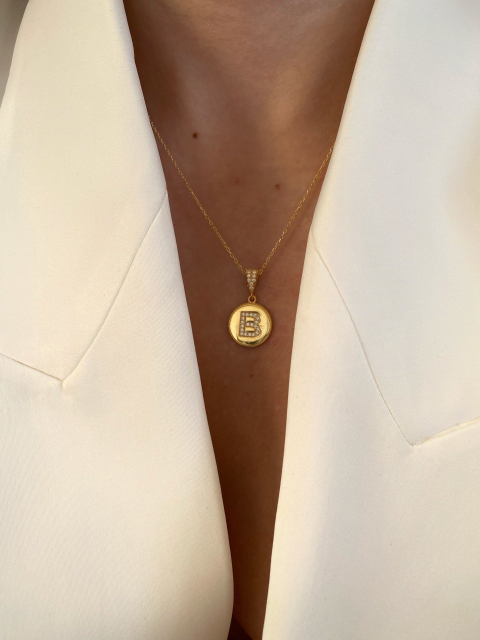 925 Silver | Circular Pendant Letter Necklace with Stones