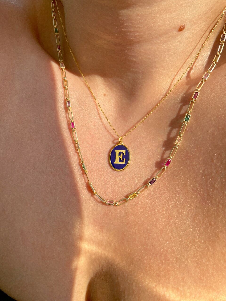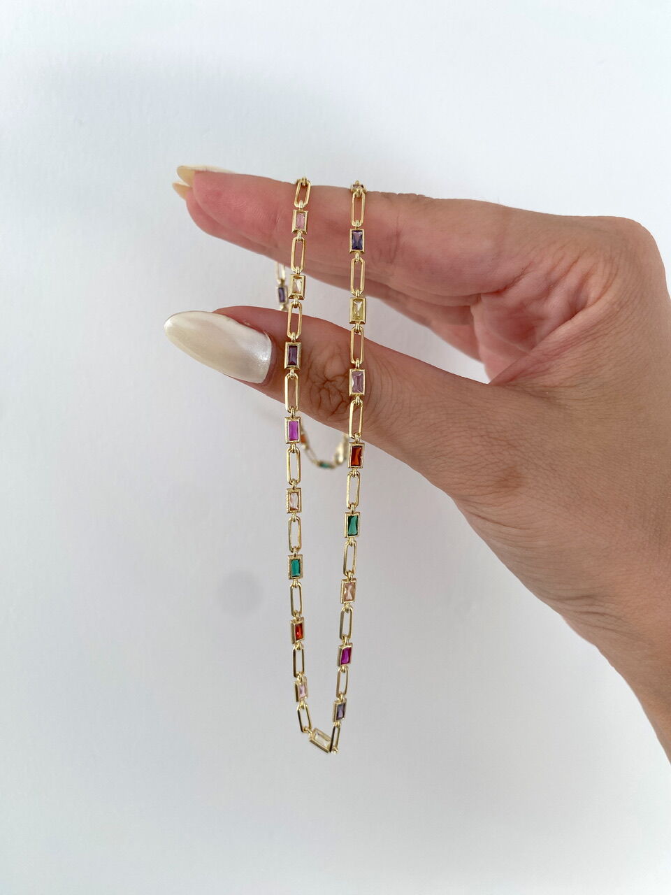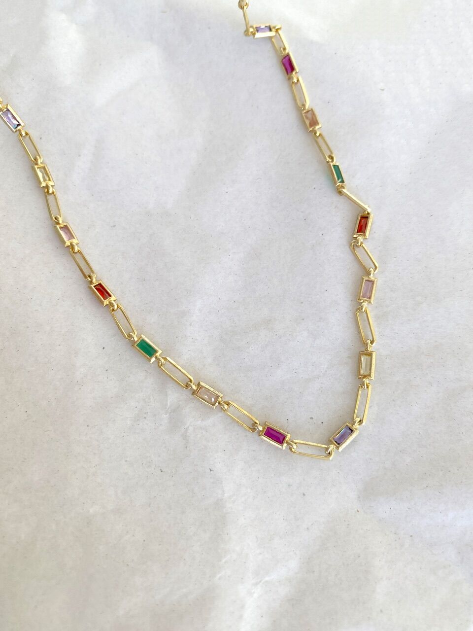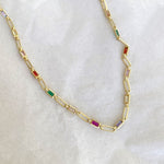 925 Silver | Colorful Baguette Stone Chain Necklace