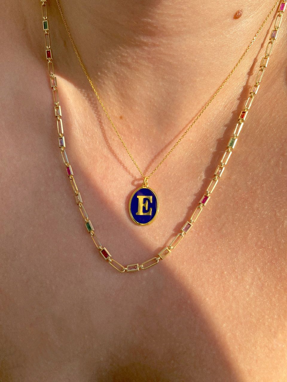 Chain length: 18 inches (45 cm) Made using vibrant baguette stones.