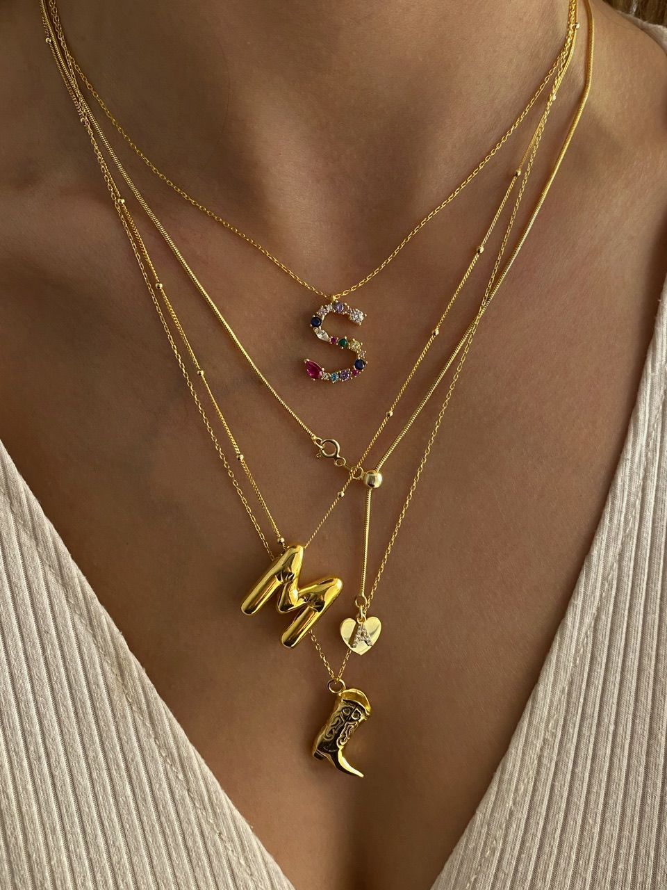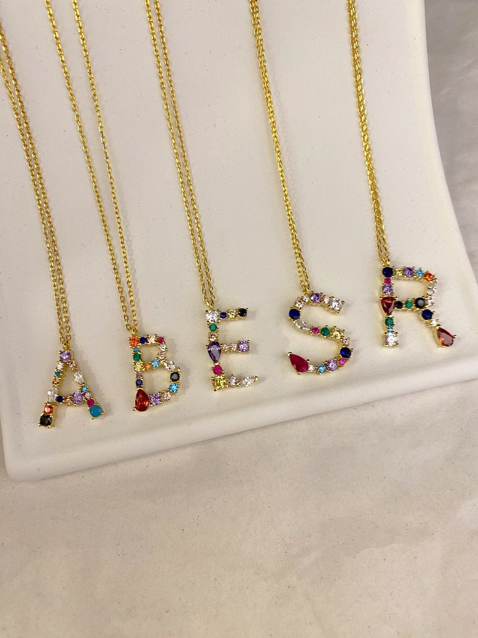 925 Silver | Custom Colorful Stone Letter Necklace