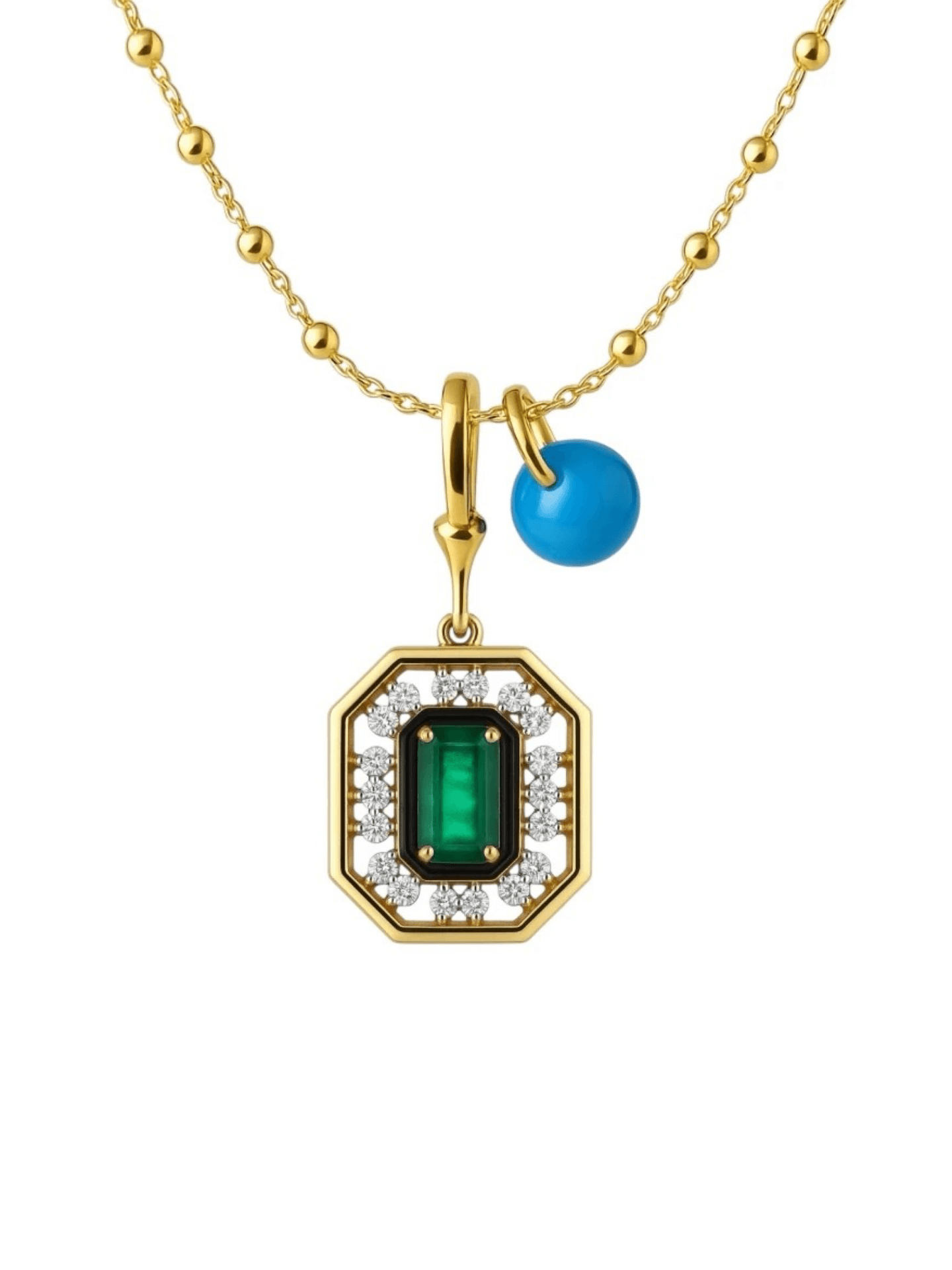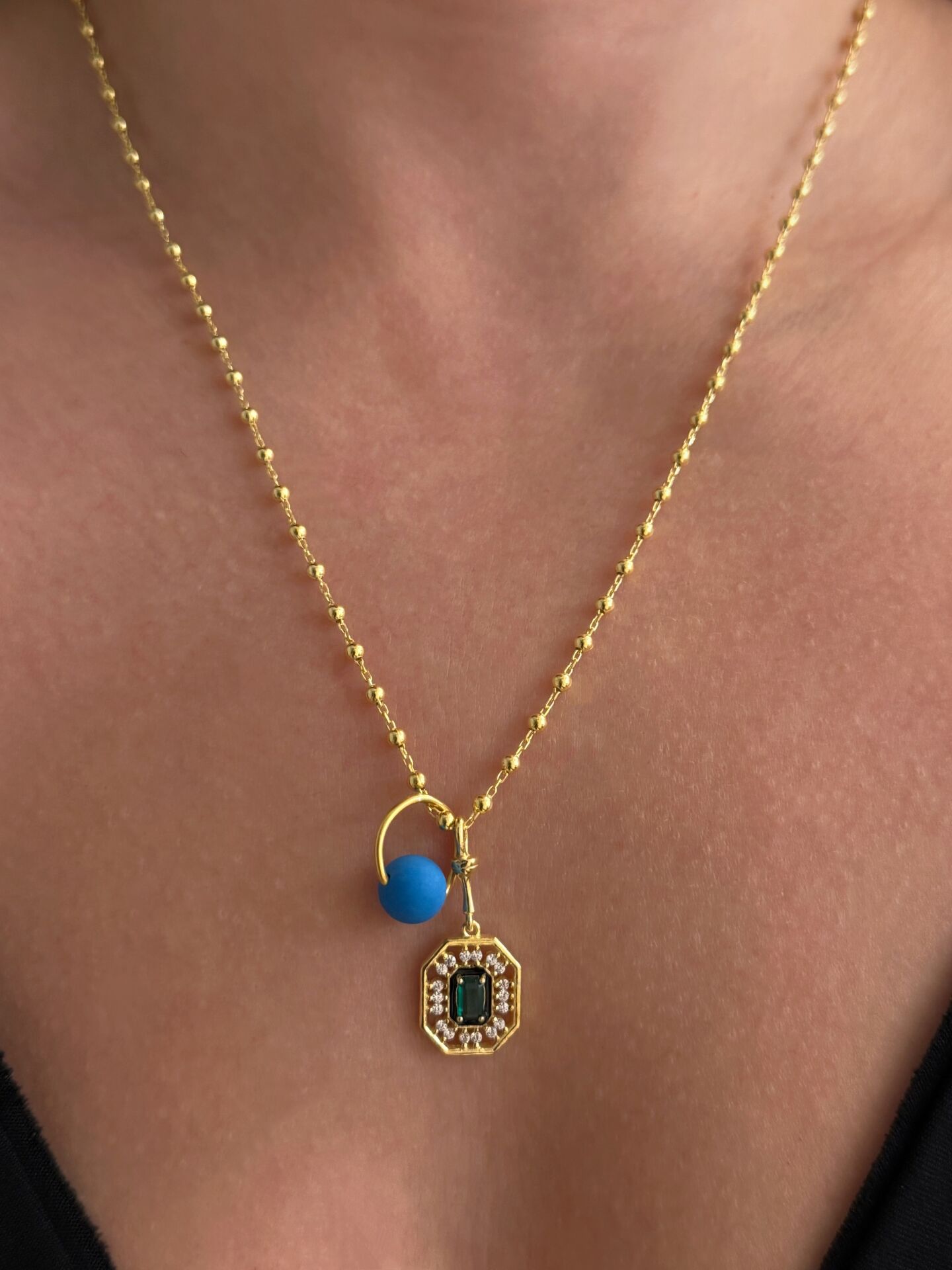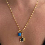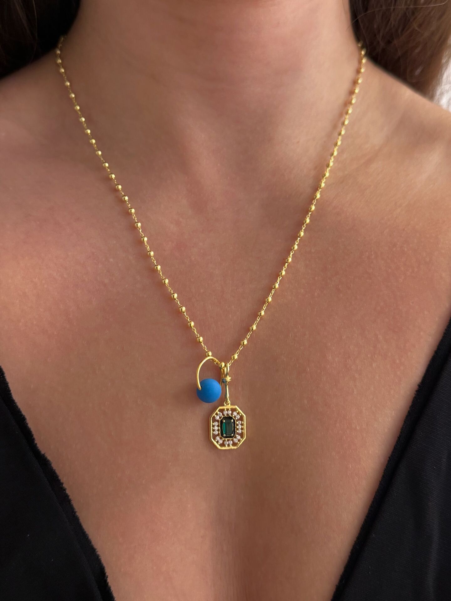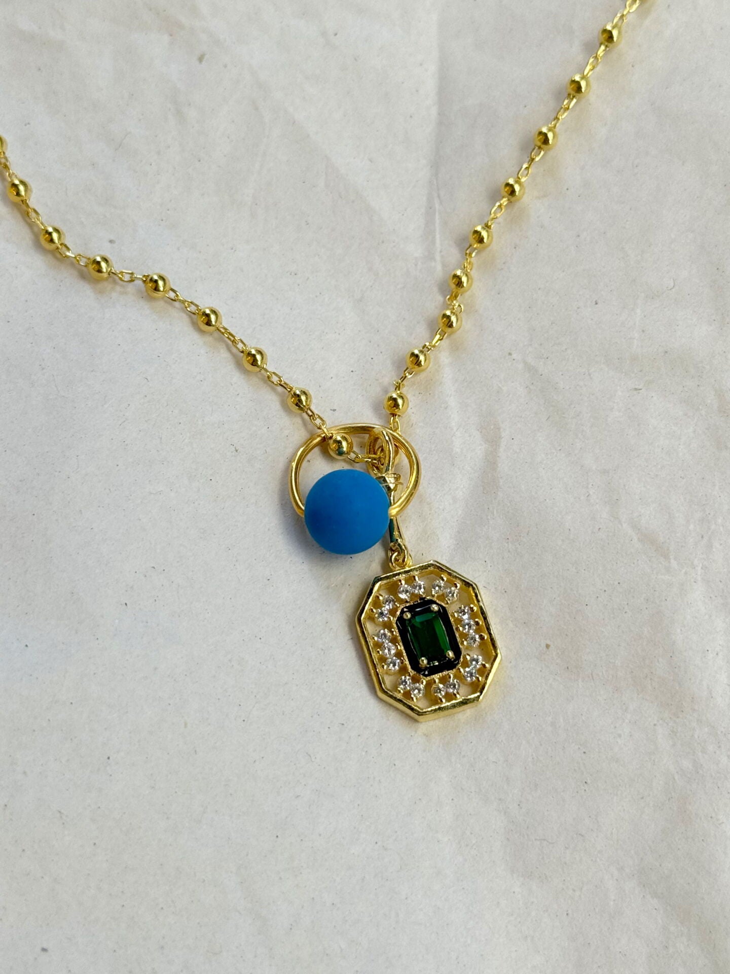 925 Silver | Green Stone Necklace with Blue Bead Charm
