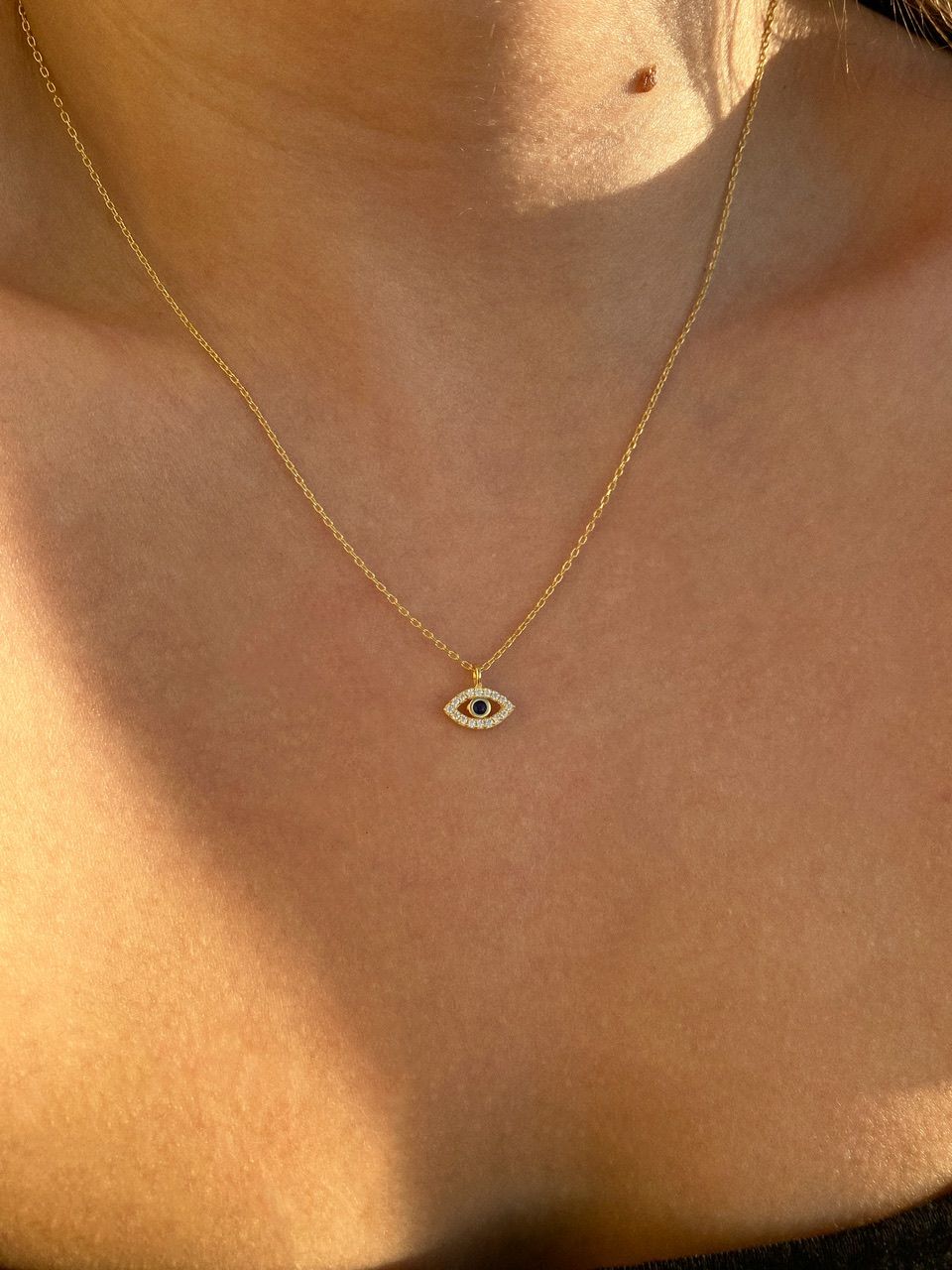 925 Silver | Minimal Dark Blue Stone Eye Necklace