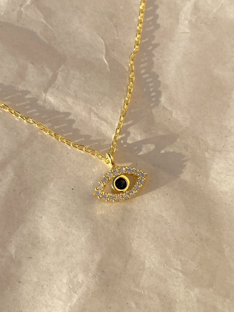 The eye is set with a navy blue stone; the rest is decorated with zircon stones.