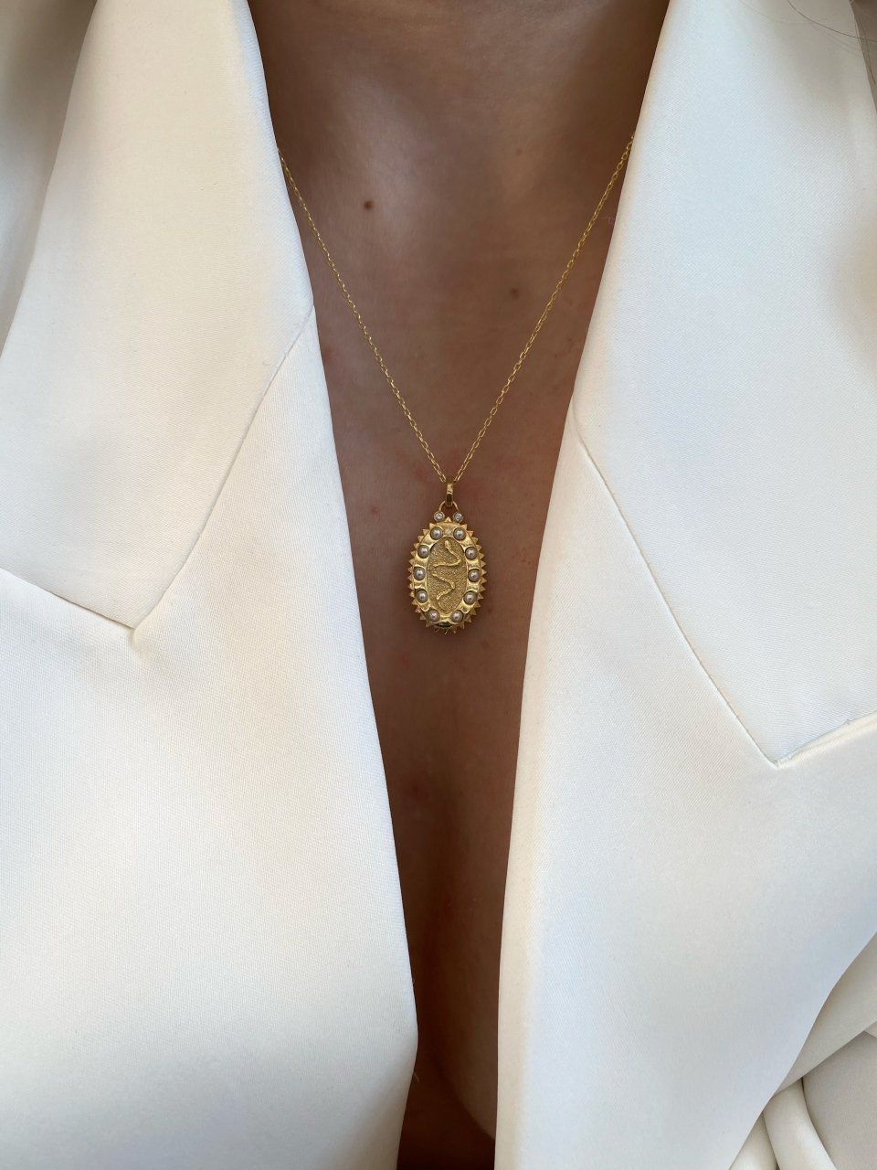 925 Silver | Pearl Snake Medallion Necklace