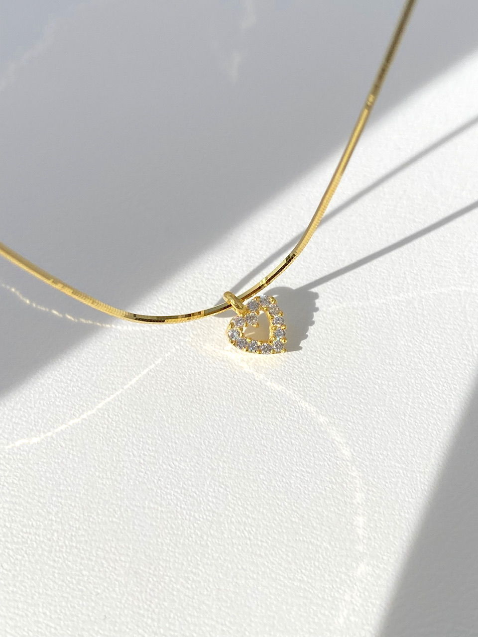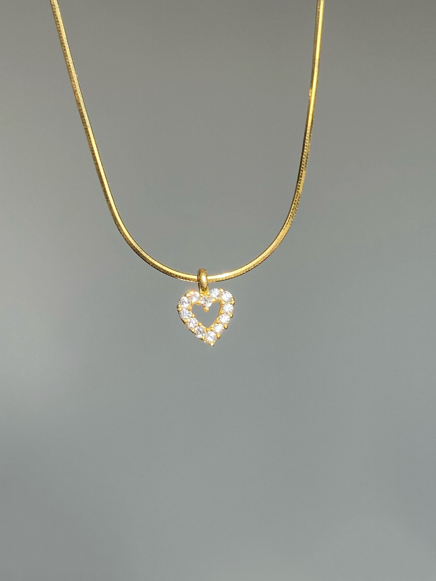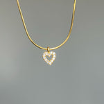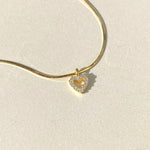 925 Silver | Snake Chain Mini Heart Necklace with Stones