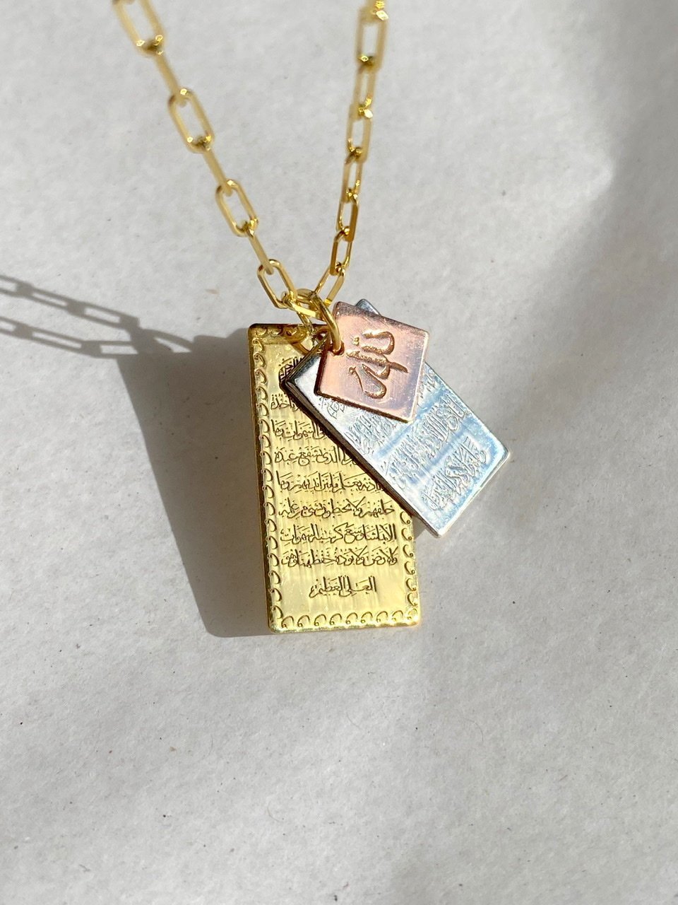 It features Ayat al-Kursi, the Nazar (evil eye) prayer, and the word "Allah".