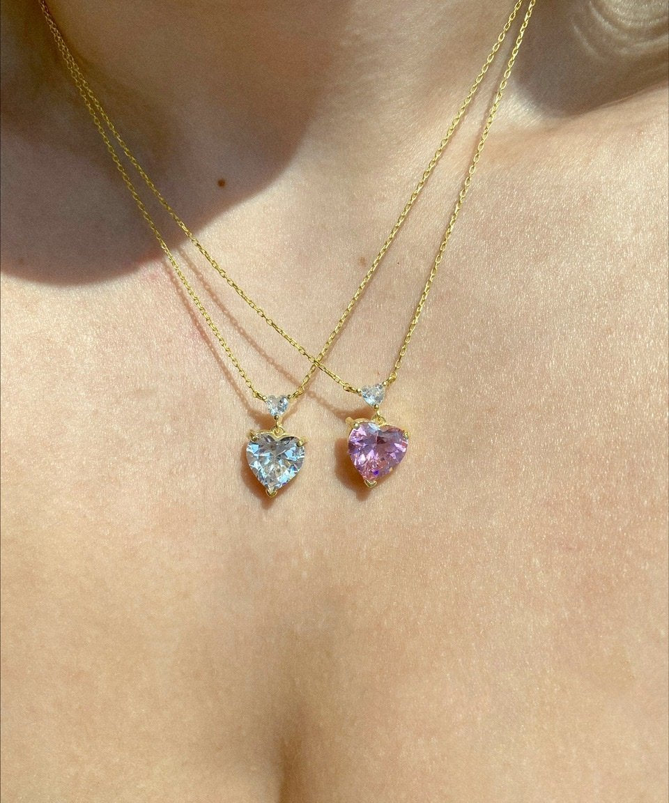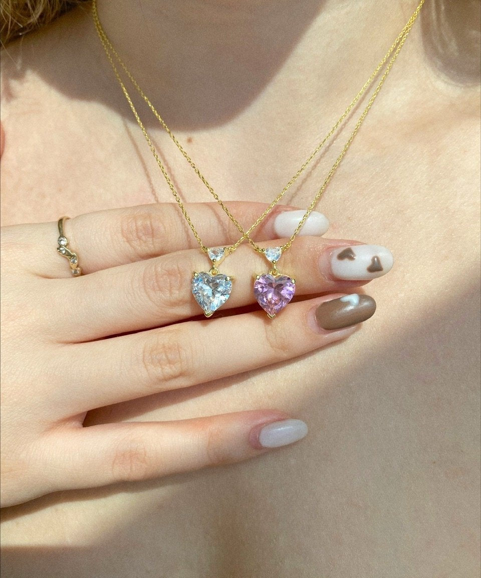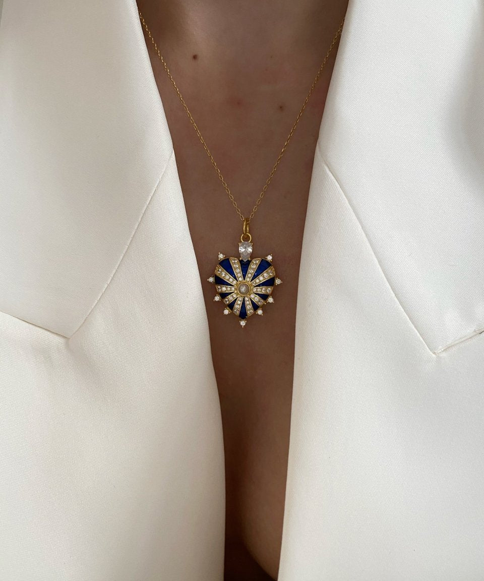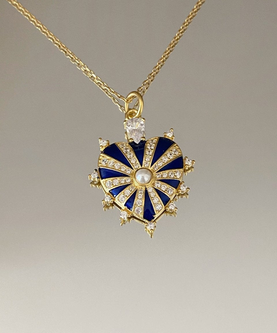 925 Silver | Dark Blue Enamel Heart Necklace with Stones