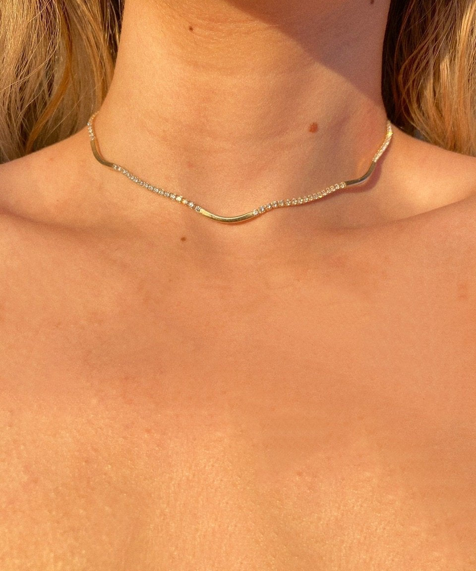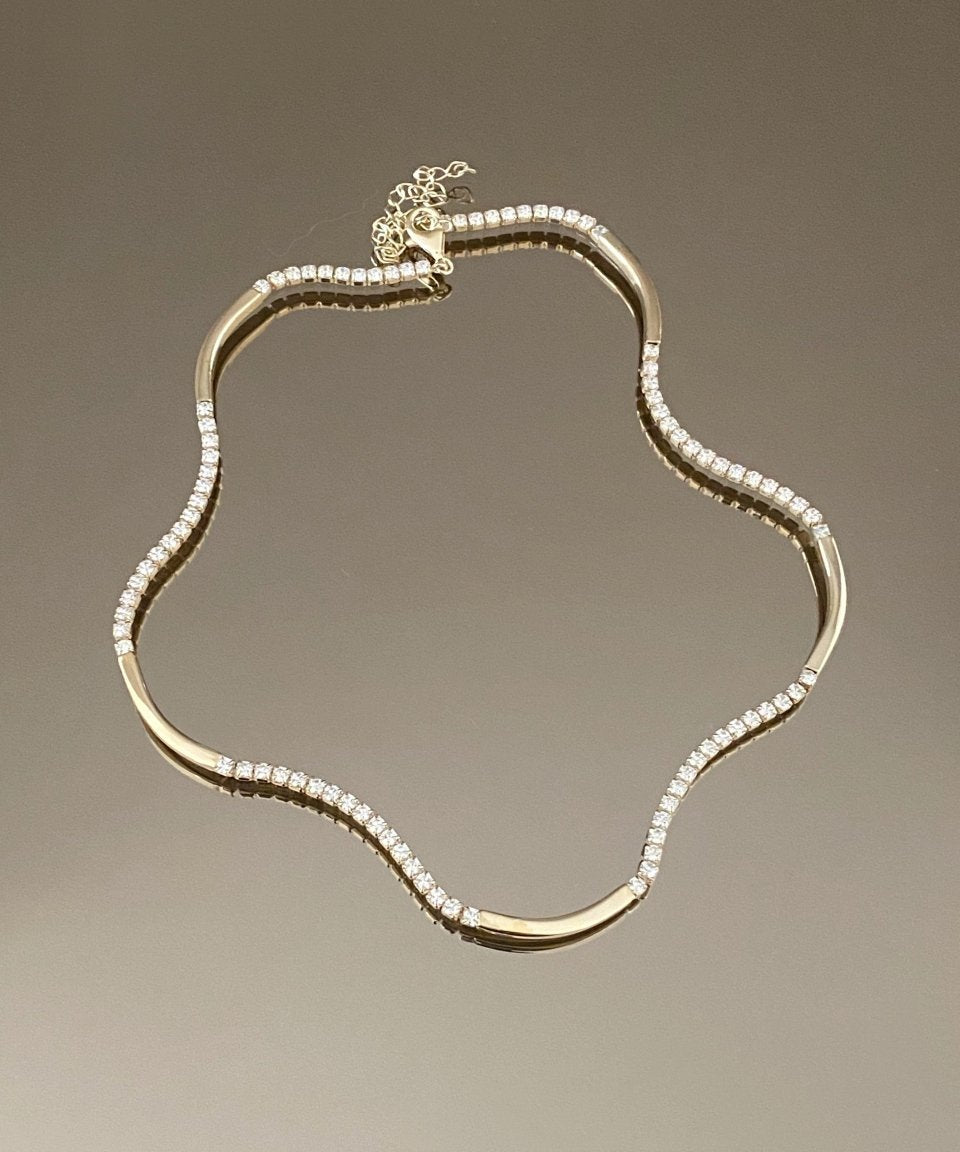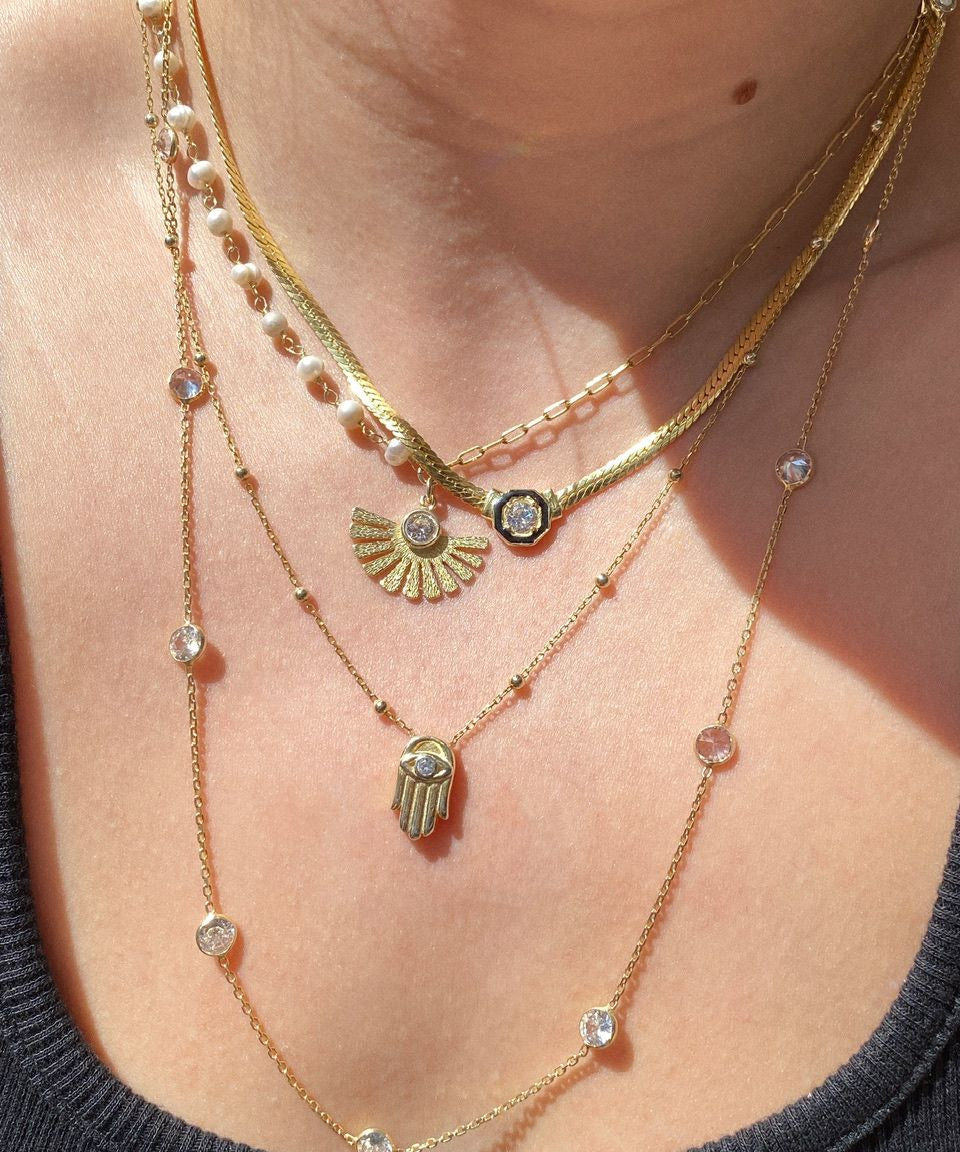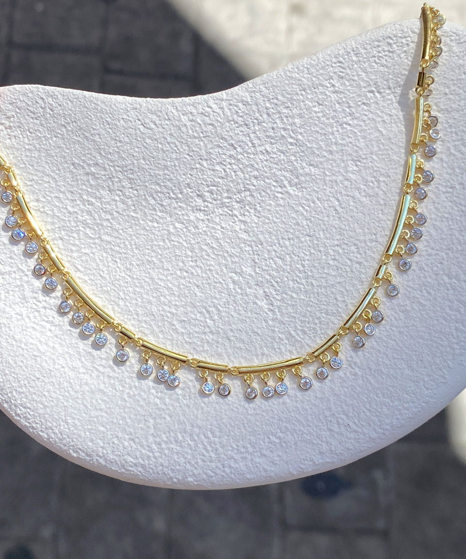 925 Silver | Flat Chain Necklace with Stones (Serenay Necklace)