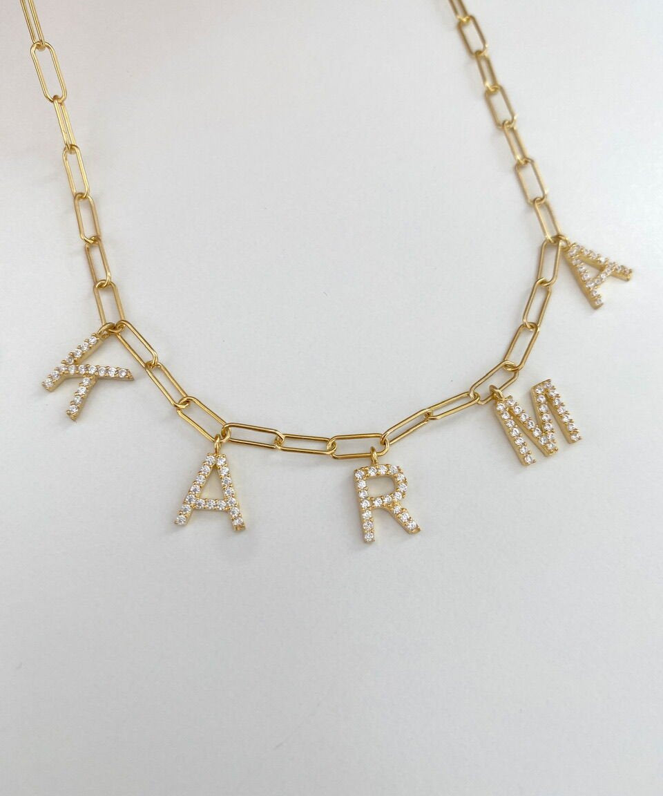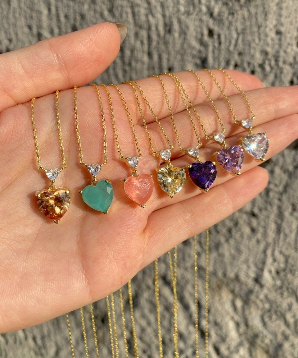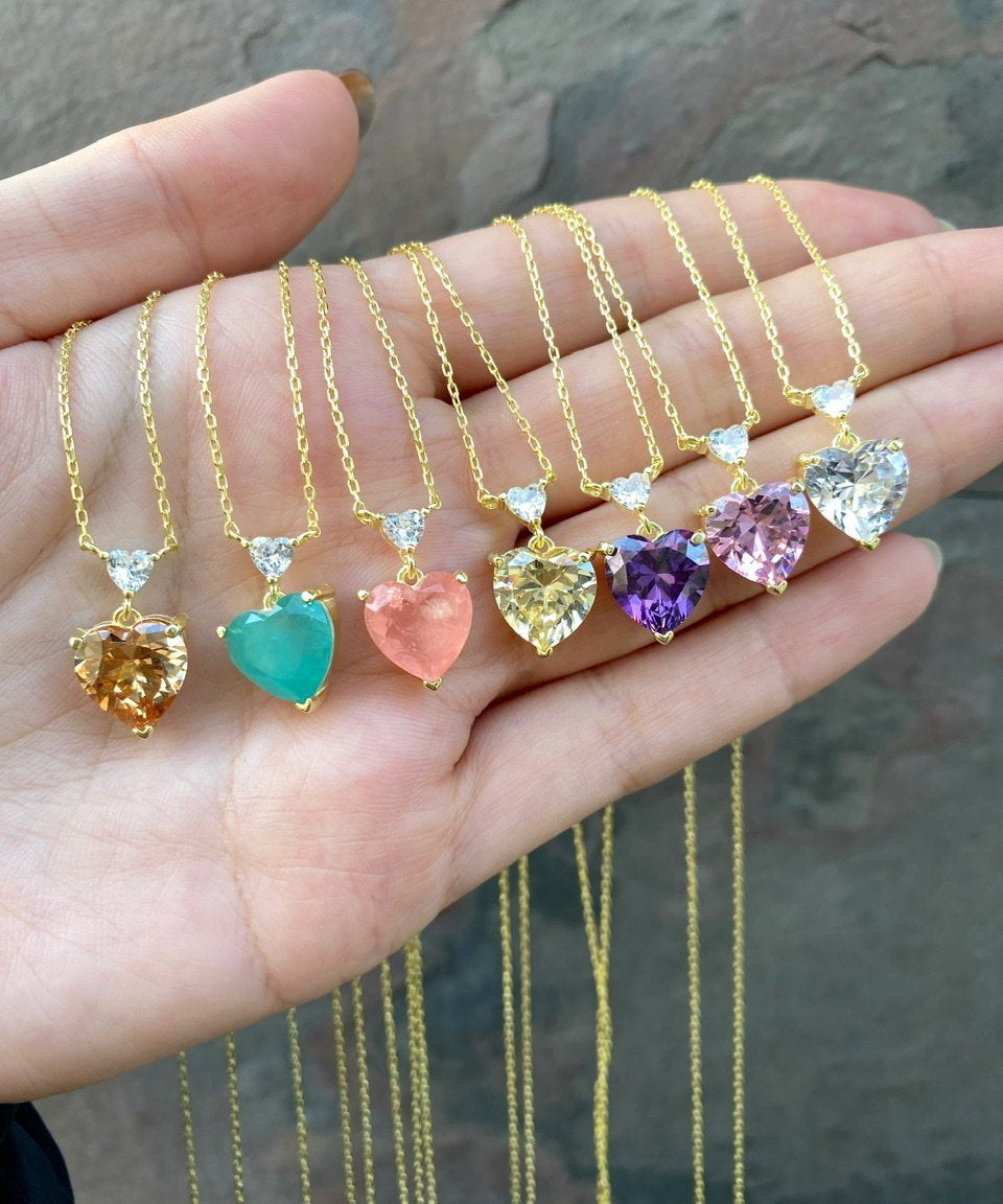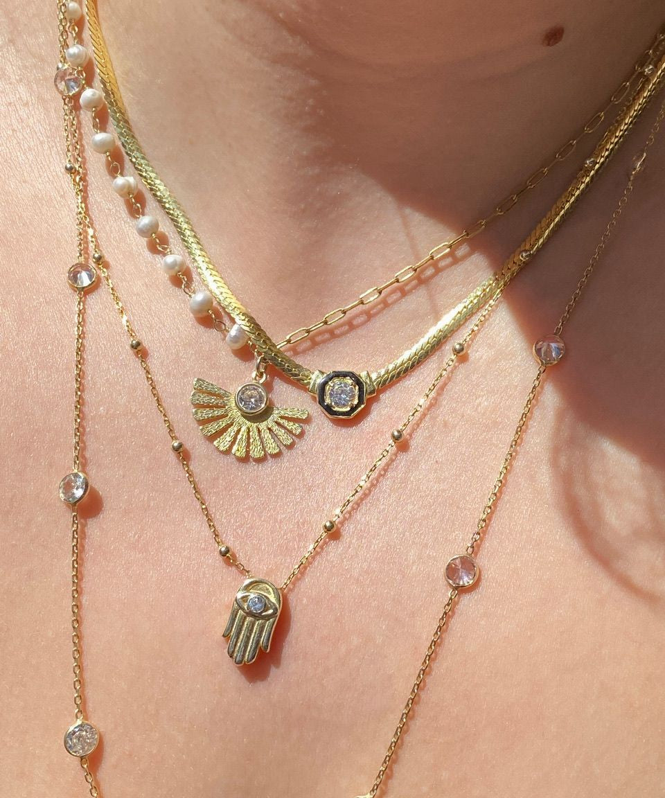 925 Silver | Flat Chain Necklace with Stones (Serenay Necklace)