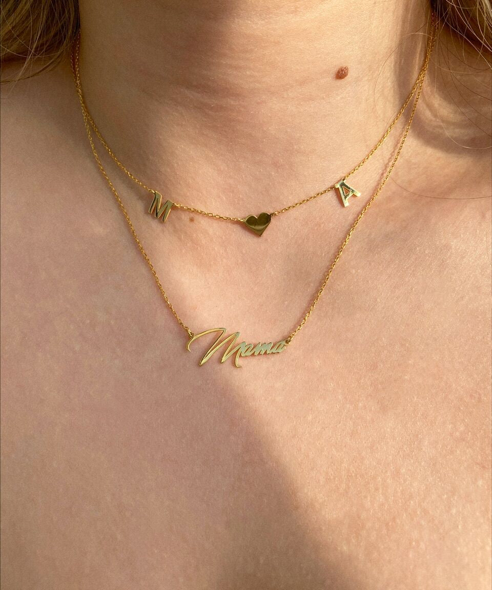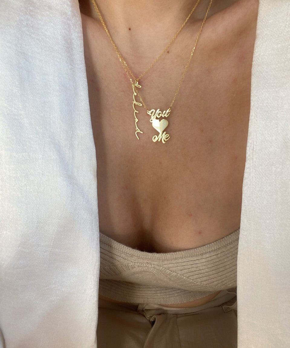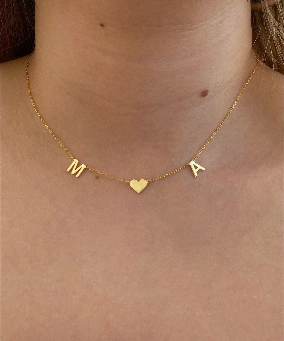 925 Silver | Custom Heart Detail Split Letter Necklace