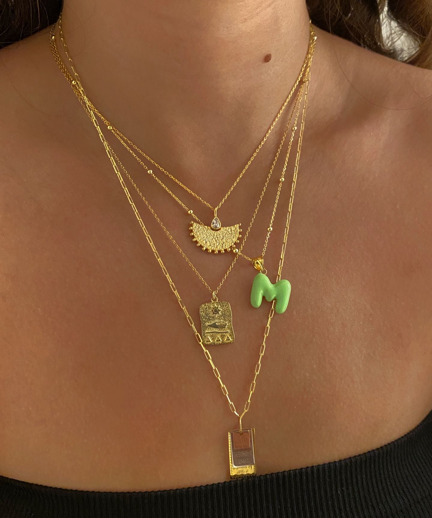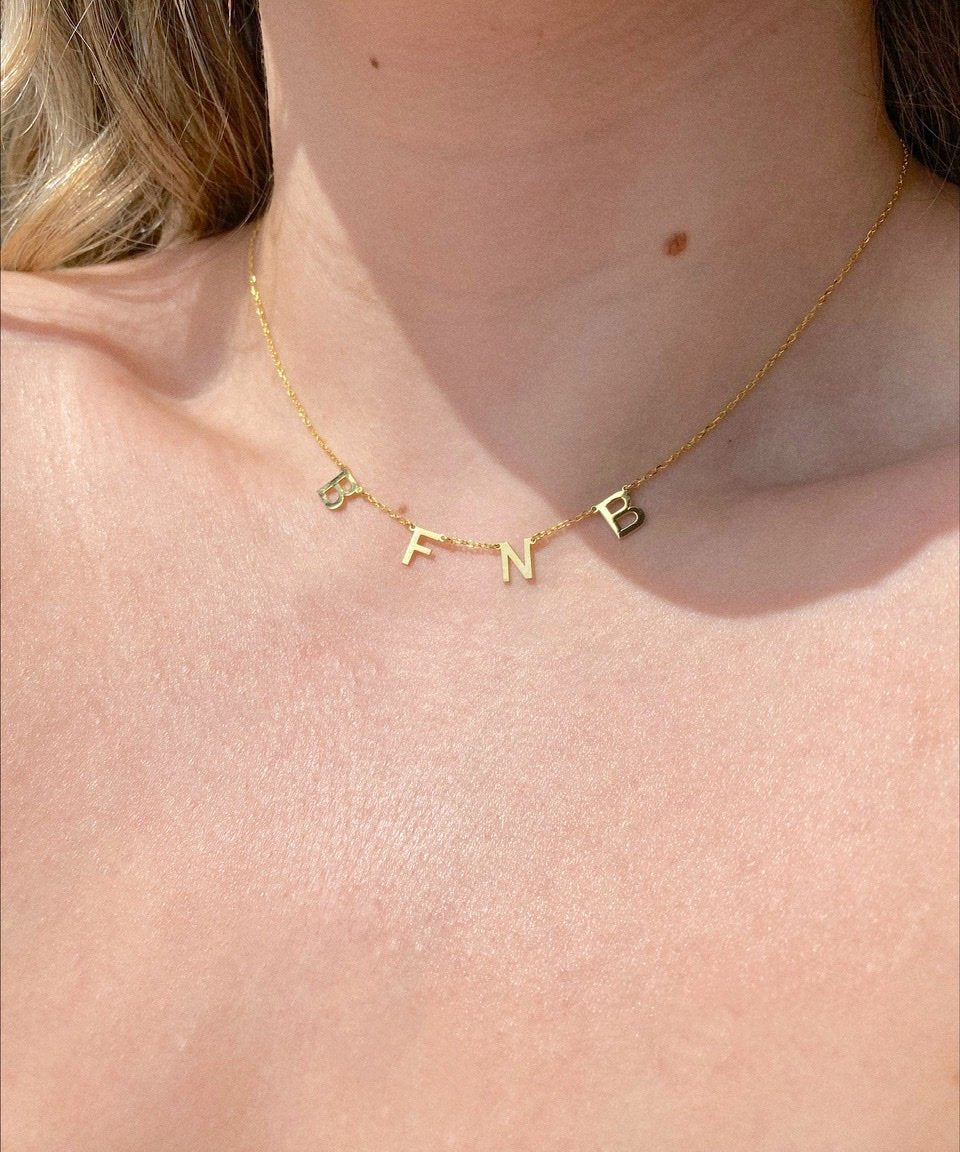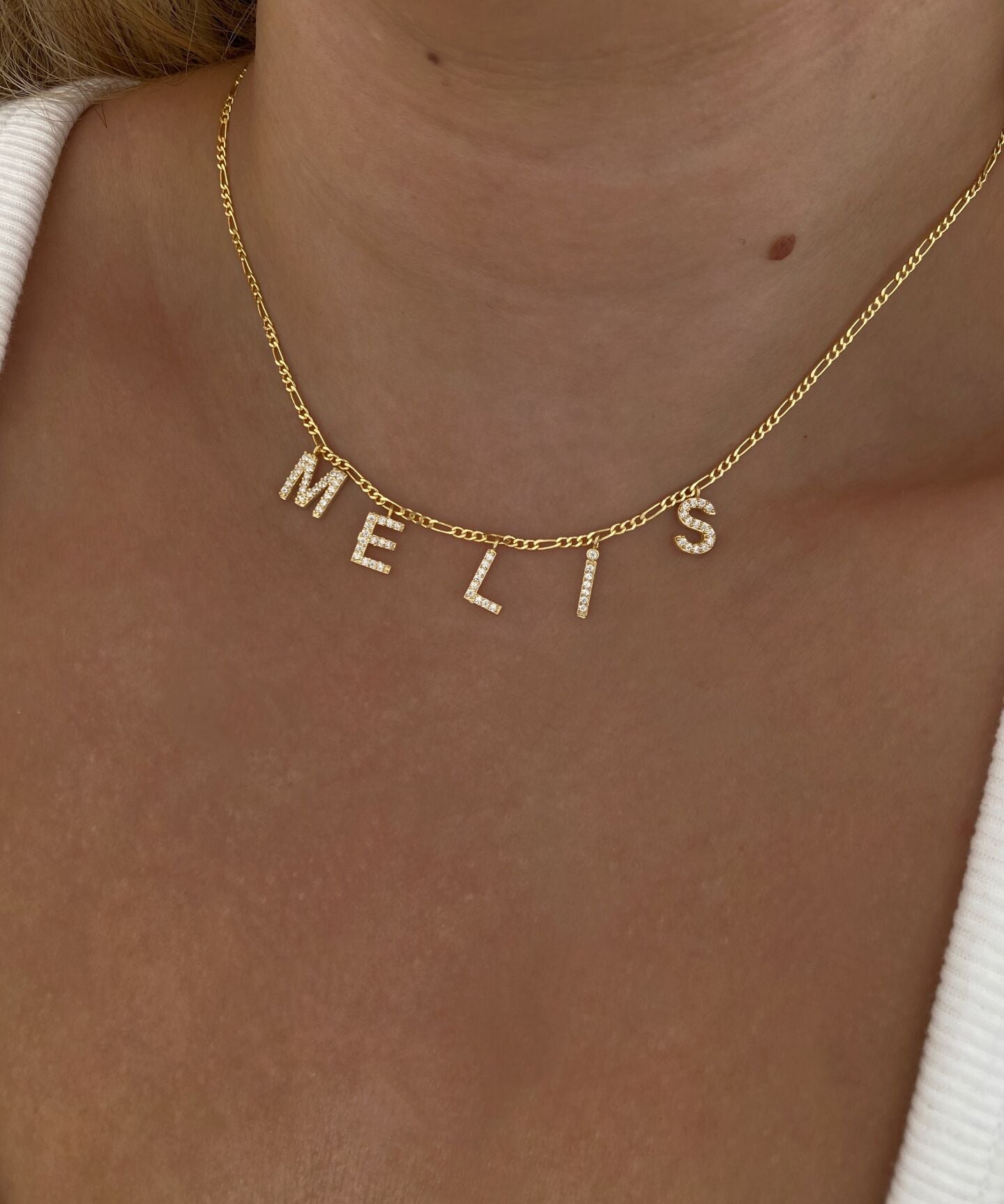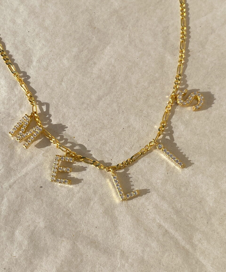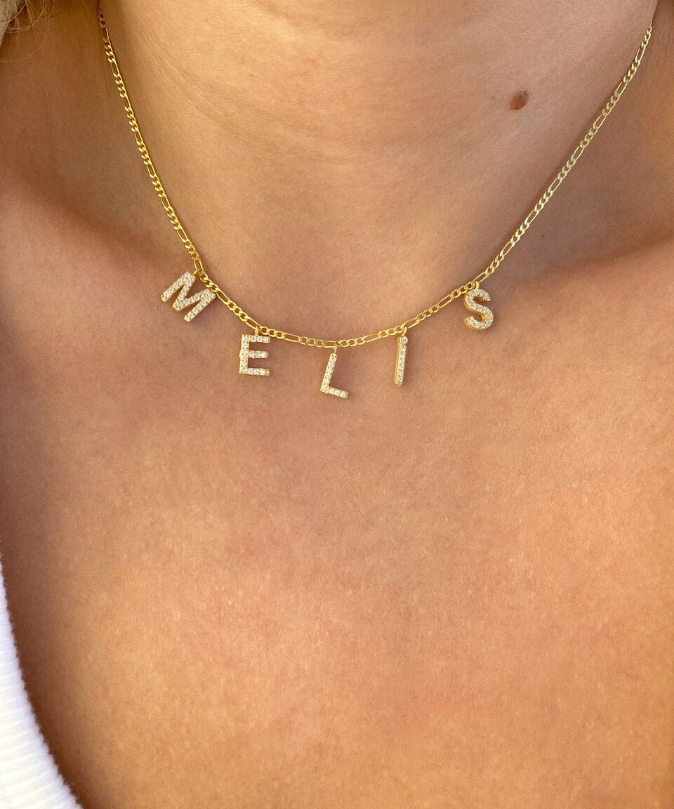 925 Silver | Custom Hollow Letter Necklace with Stone Detailing