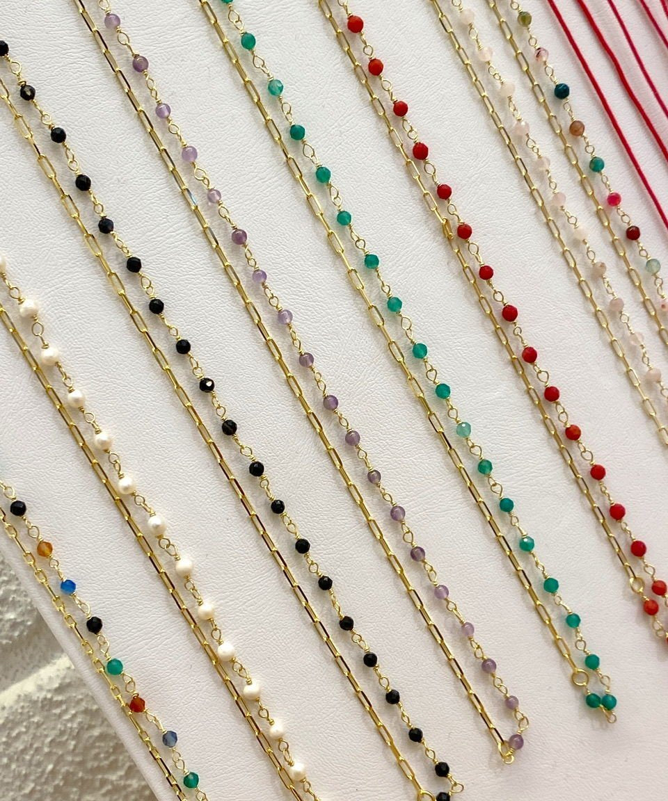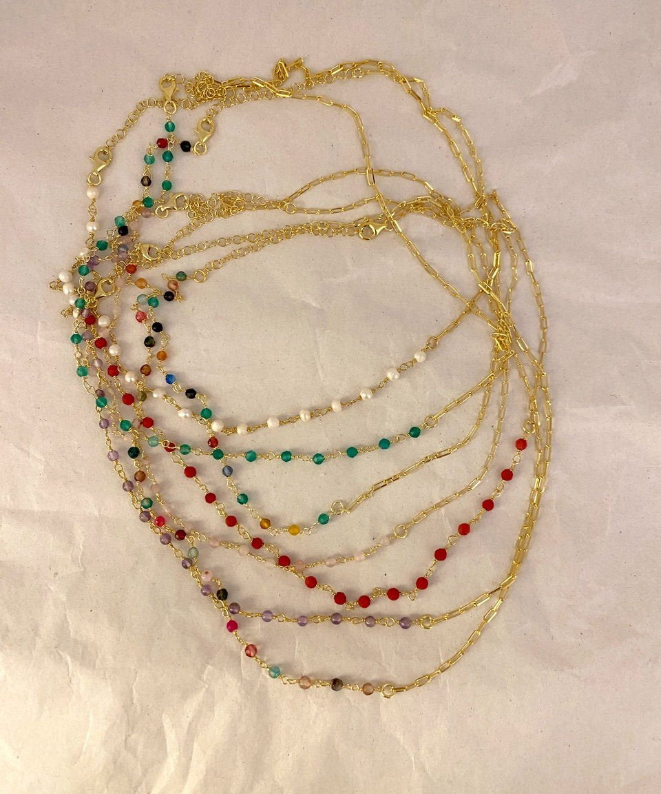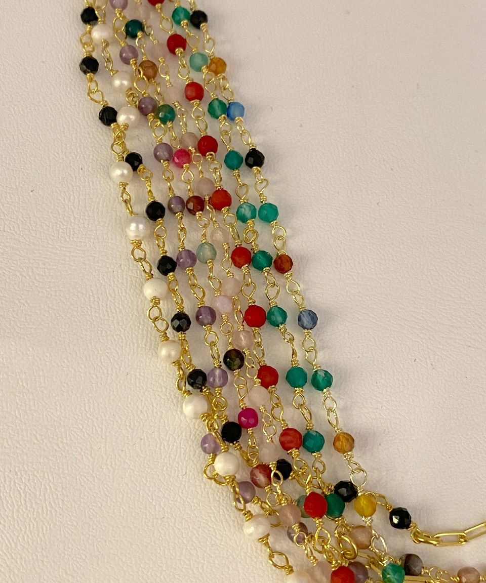 925 Silver | Half-Chain Necklace with Colorful Natural Stones