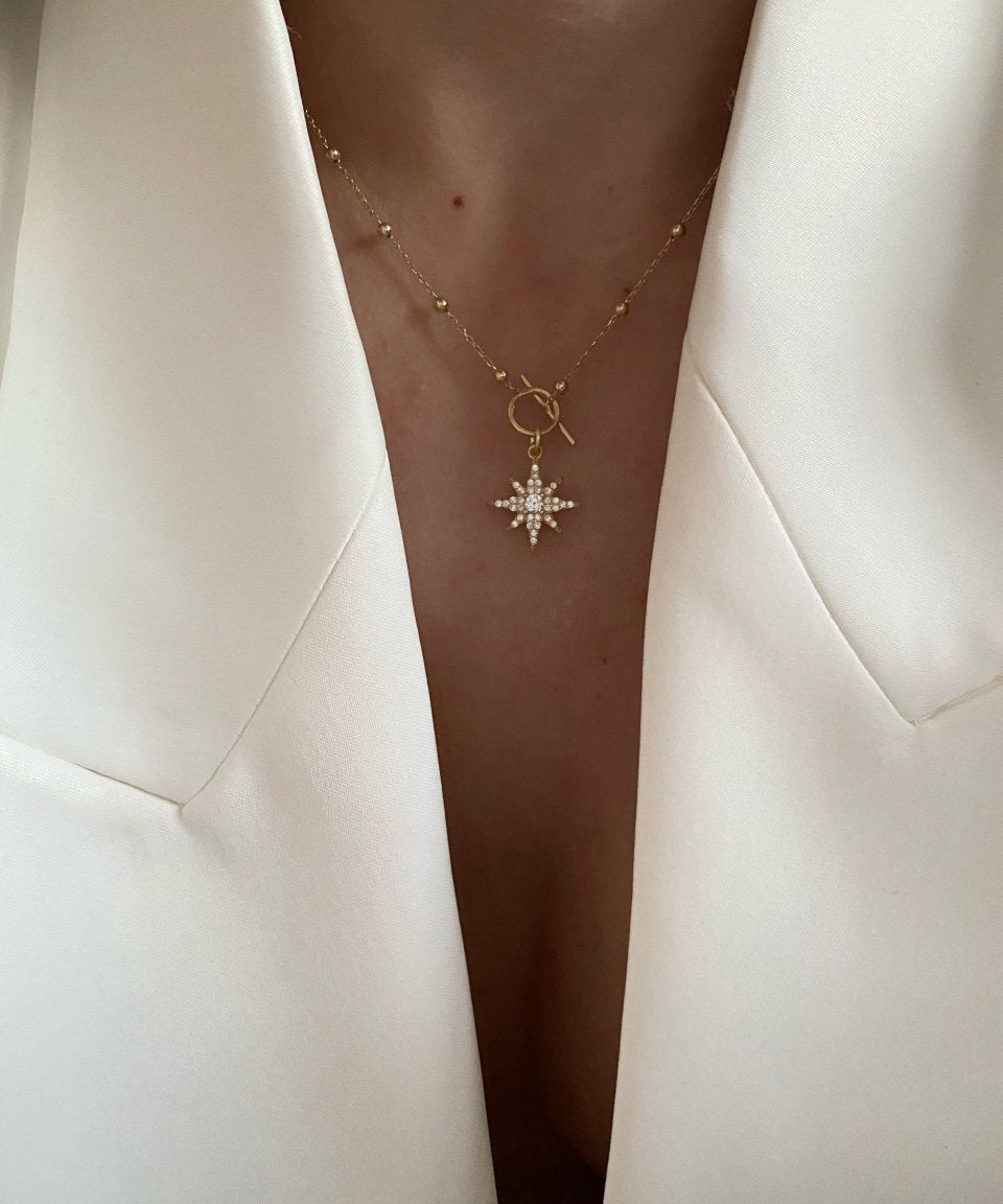 925 Silver | Beaded Chain North Star Necklace