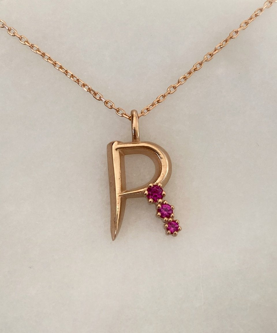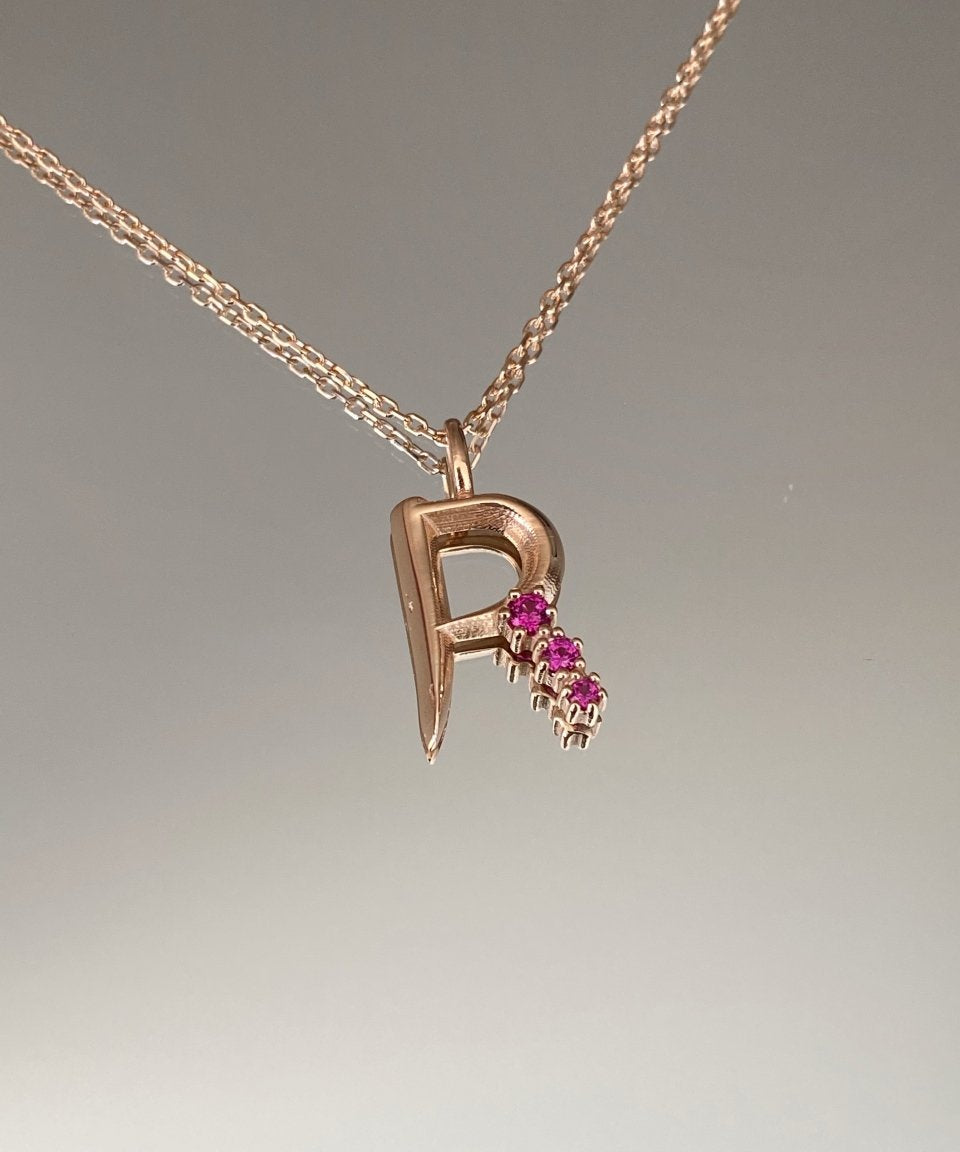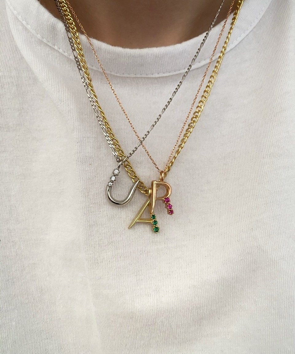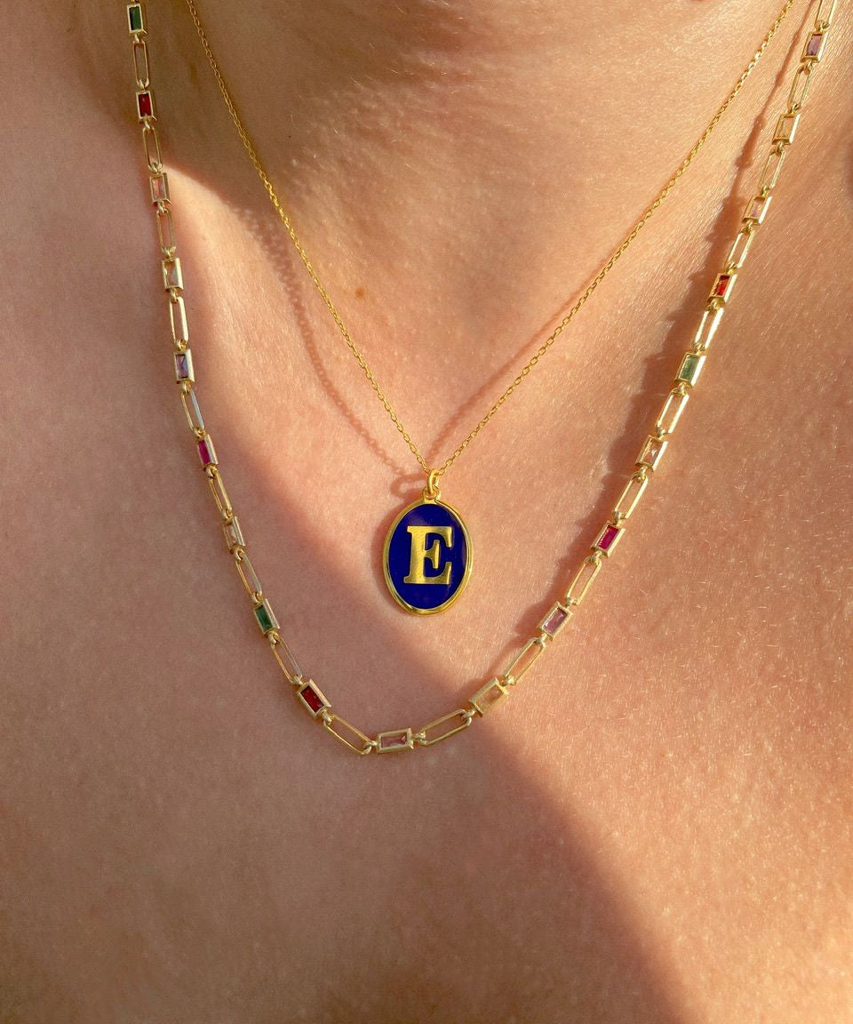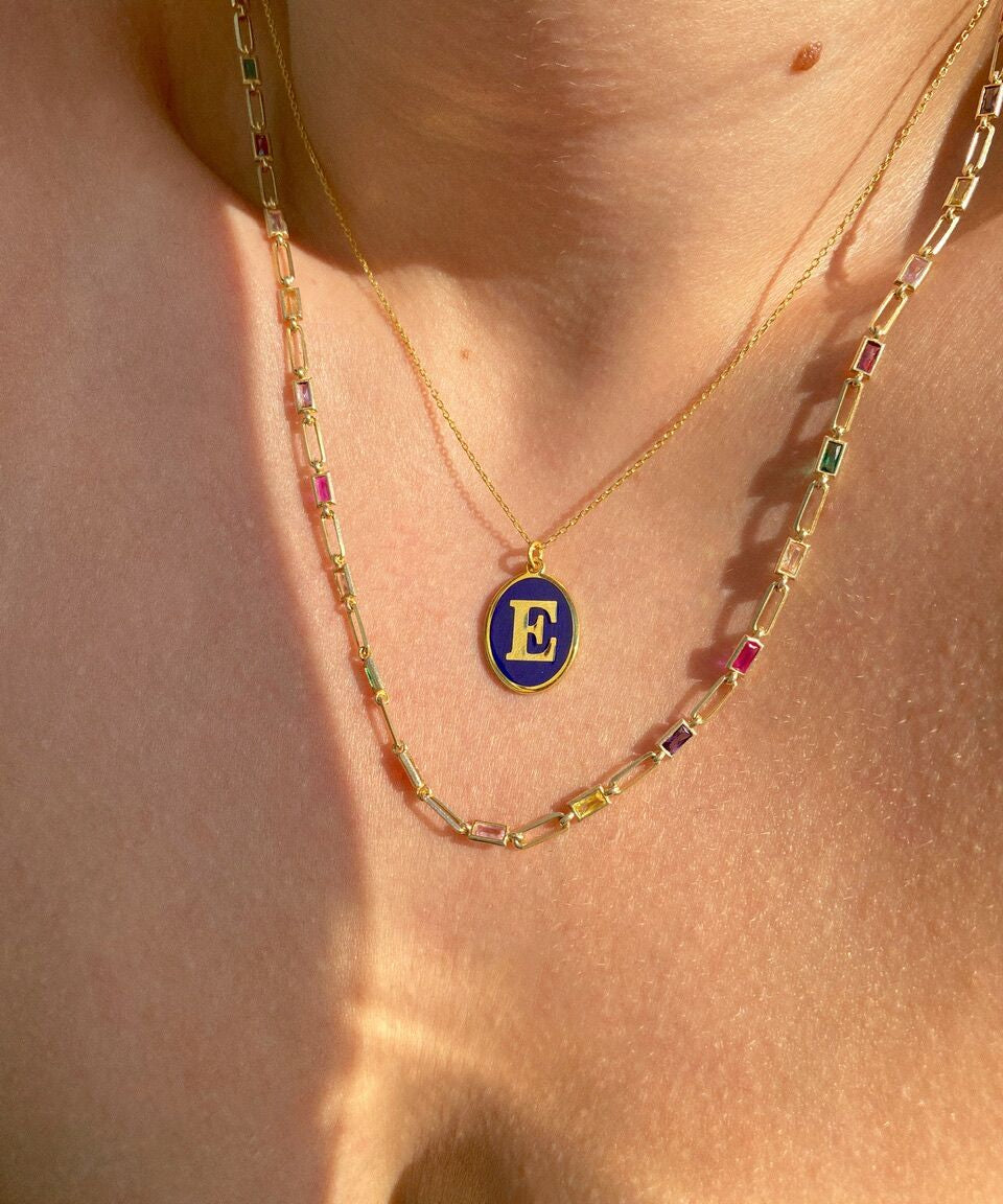 925 Silver | Colorful Stone Letter Necklace with Cable Chain