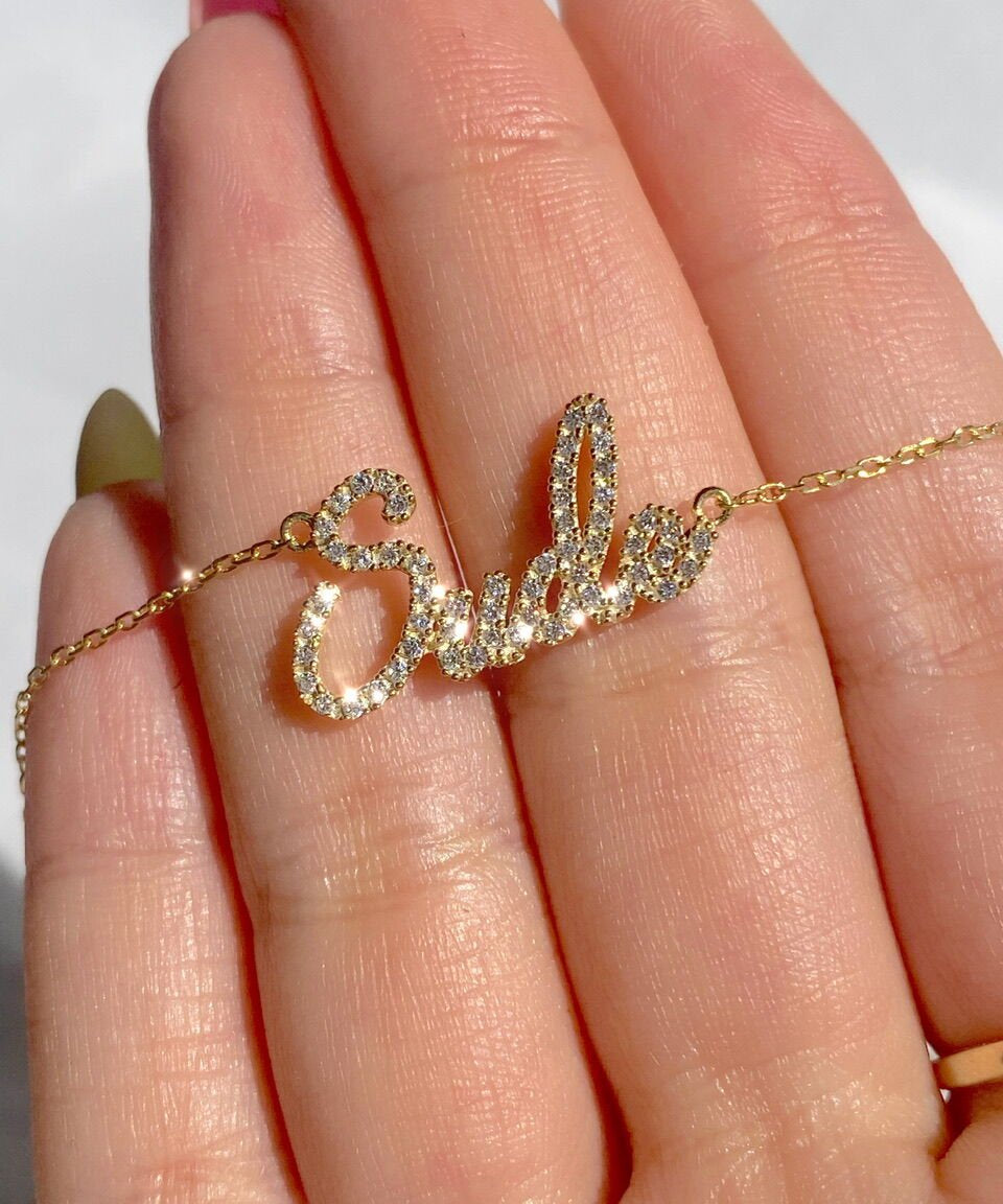 925 Silver | Custom Handwriting Necklace with Stones