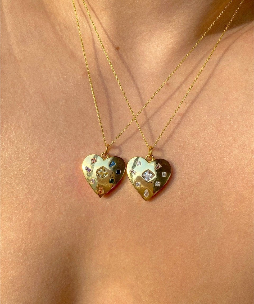 925 Silver | Colorful Stone Heart Necklace