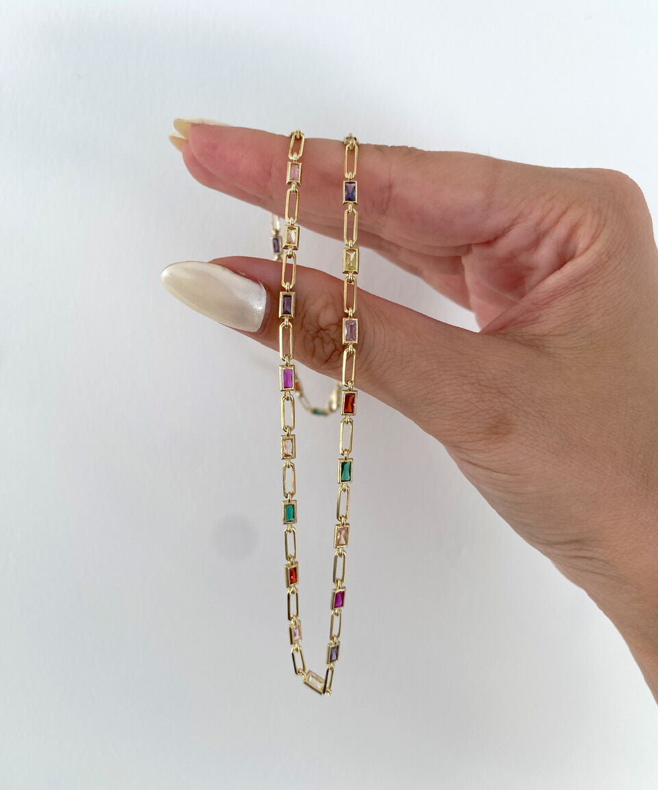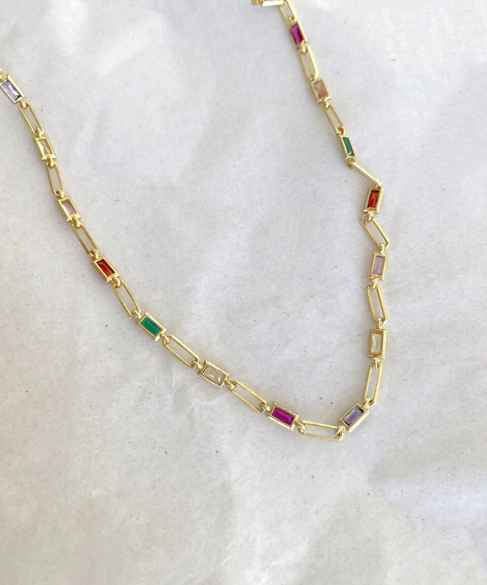 925 Silver | Colorful Baguette Stone Chain Necklace