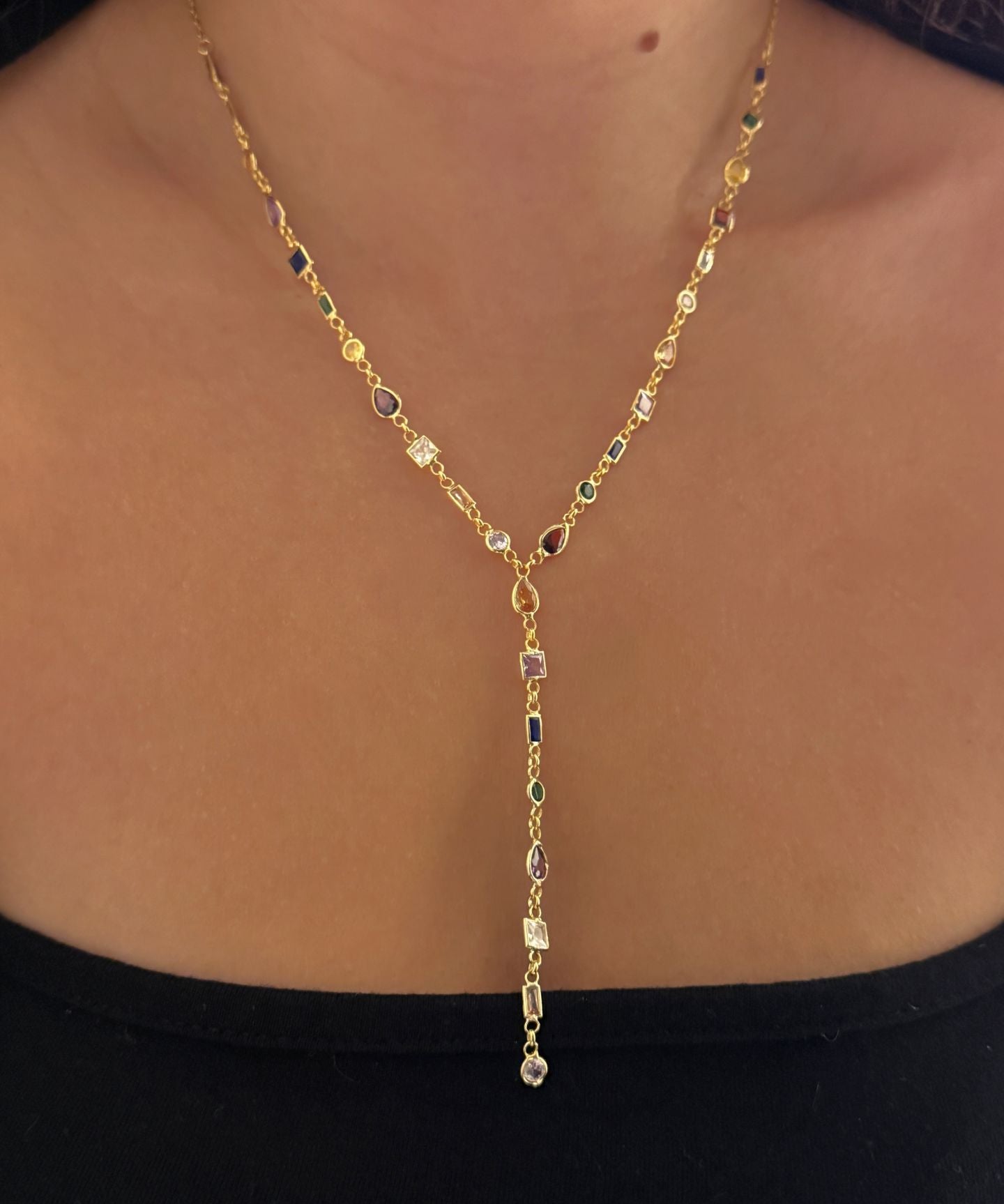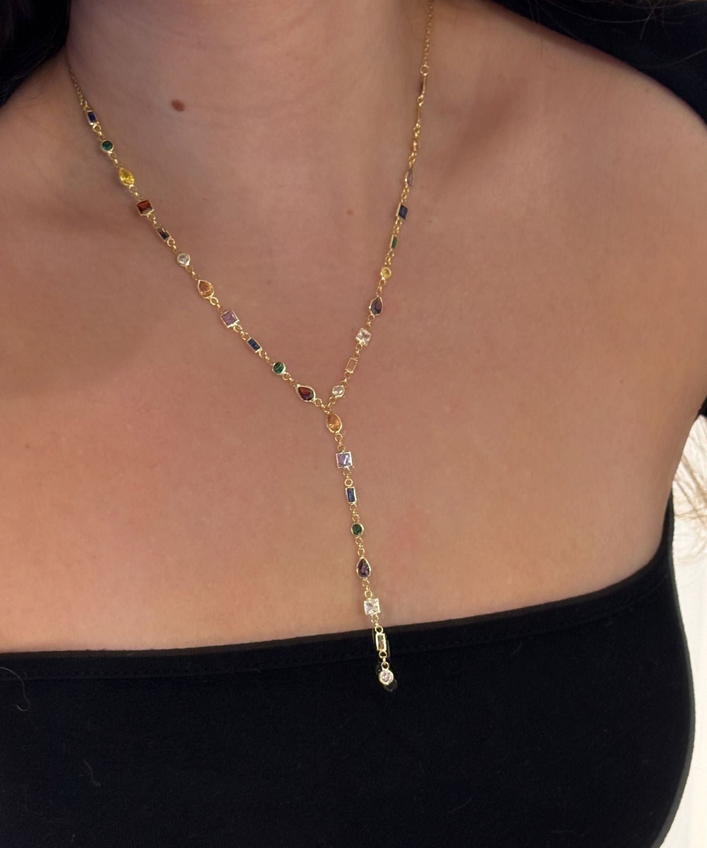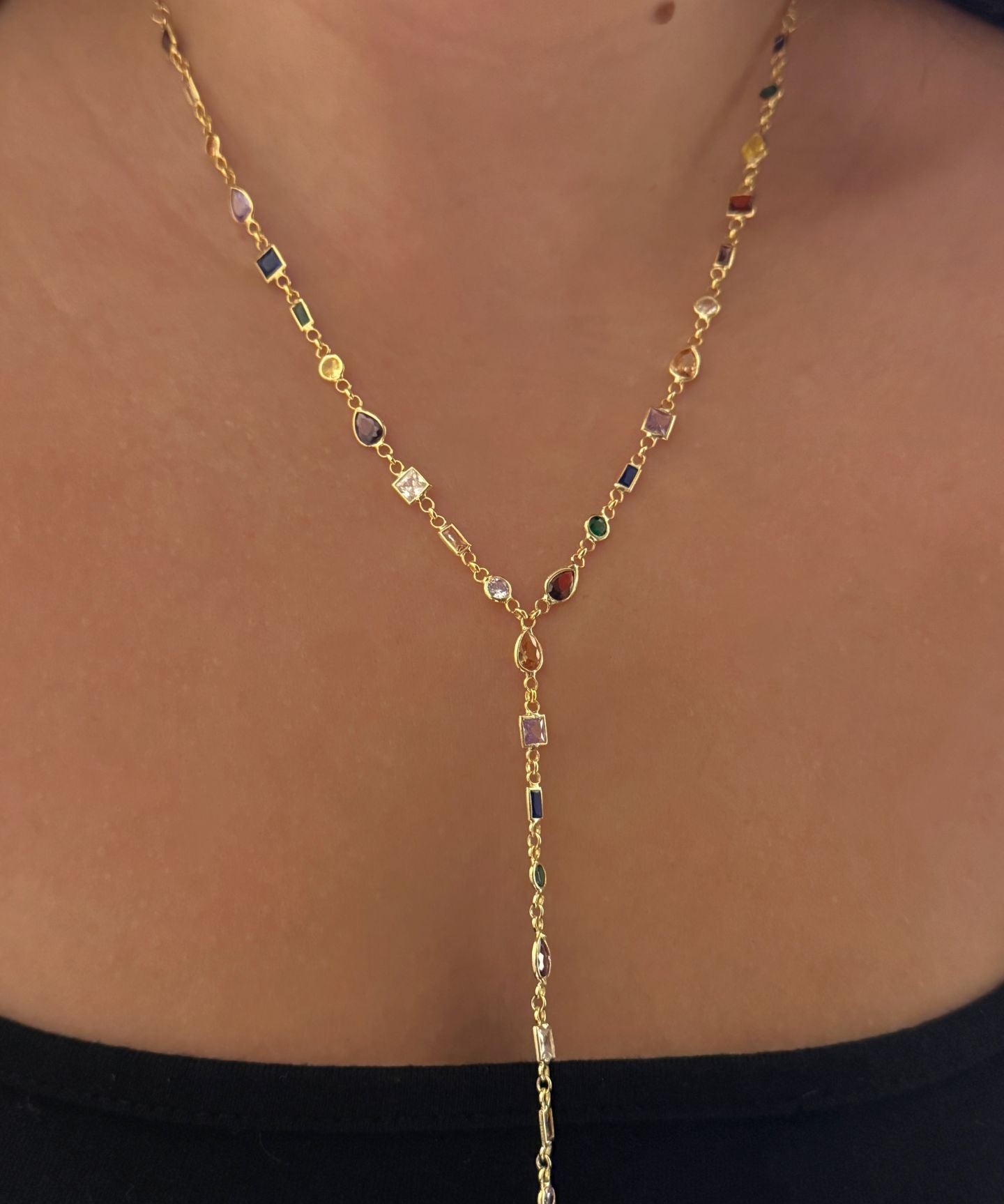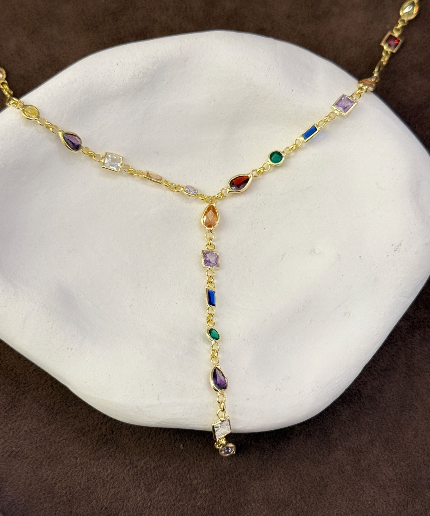 925 Silver | Colorful Asymmetric Stone Y Chain Necklace